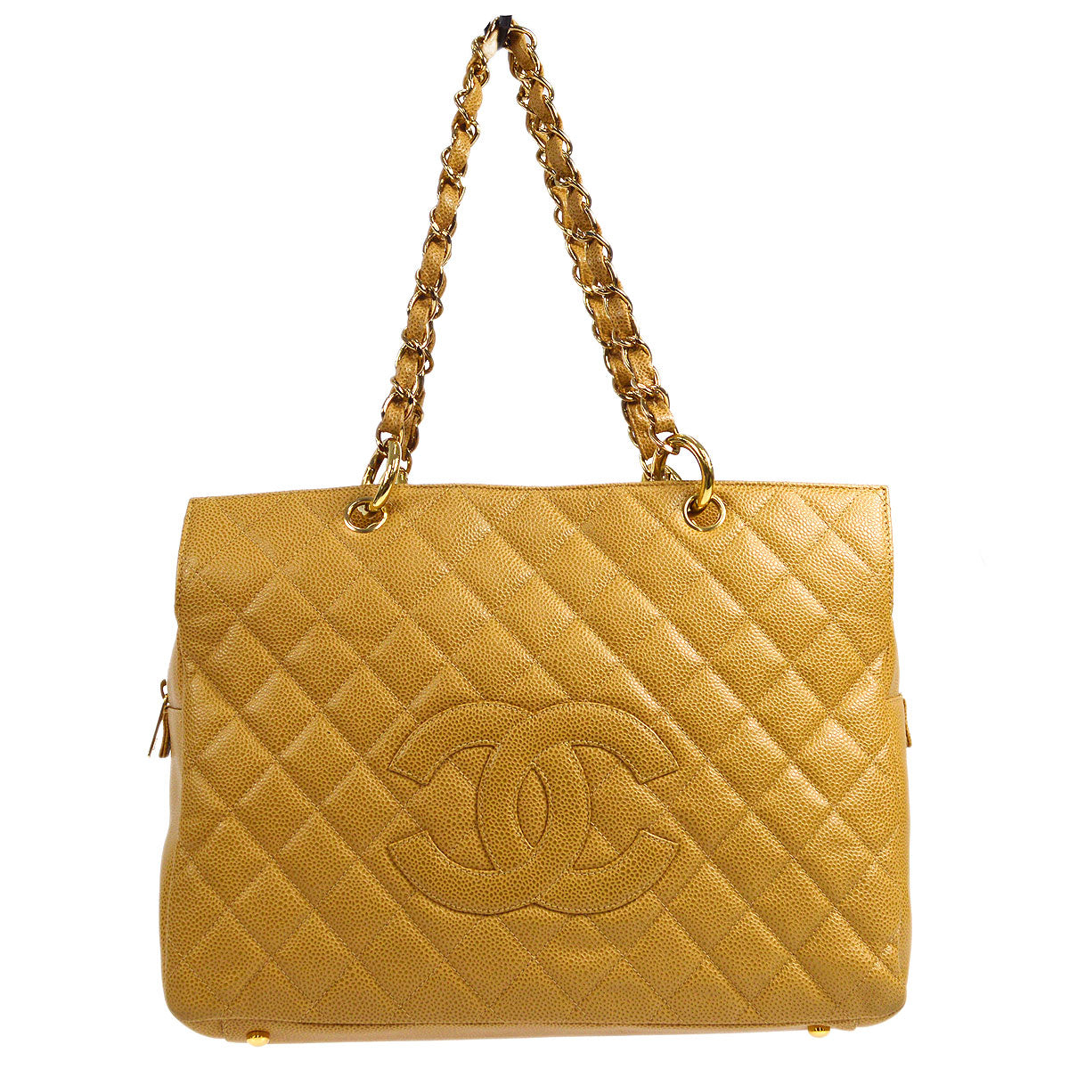 CHANEL Grand Shopping Tote GST Chain Hand Tote Bag Beige Caviar