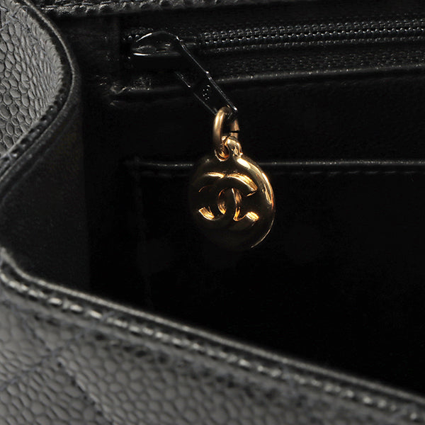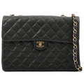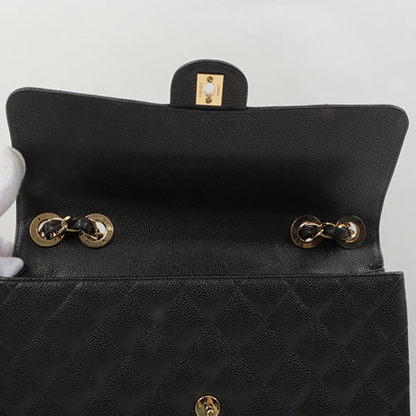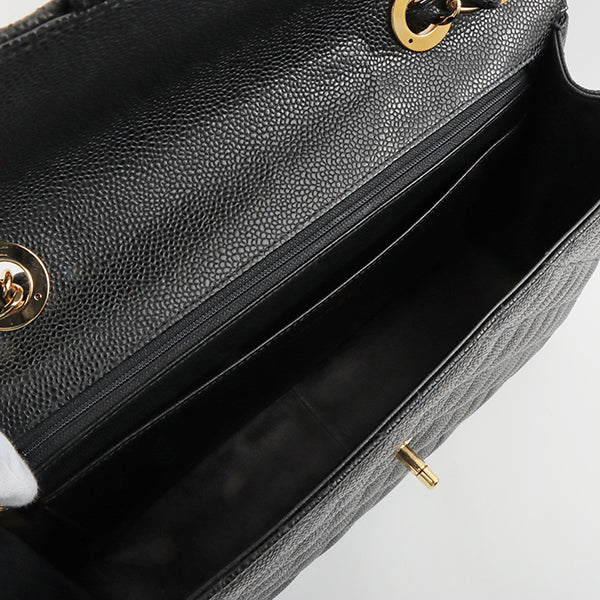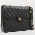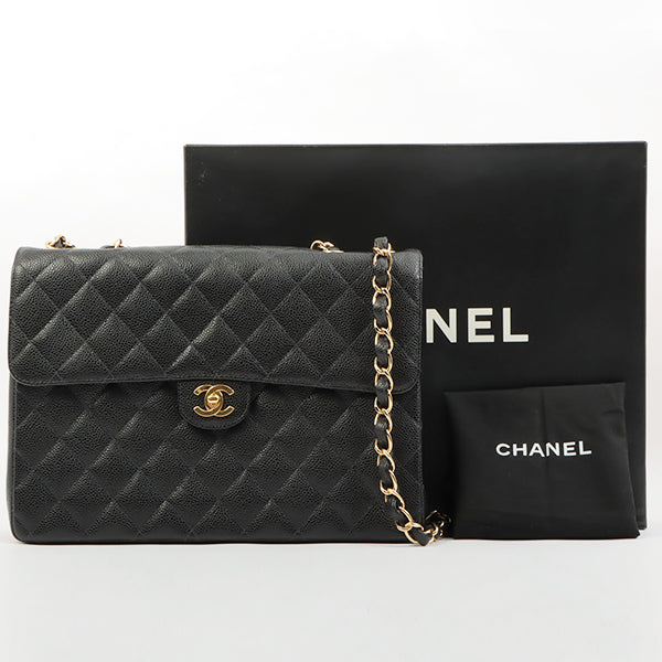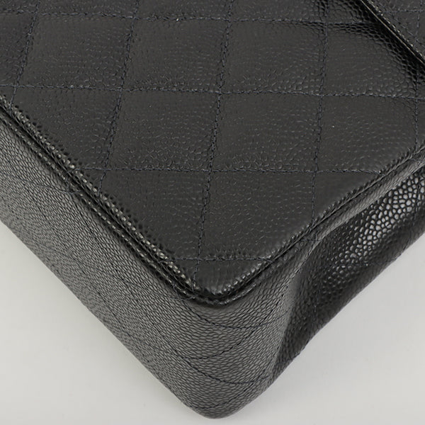 Chanel 2003 Made Caviar Skin Classic Flap Chain Bag Jumbo Black