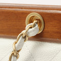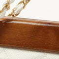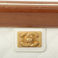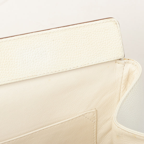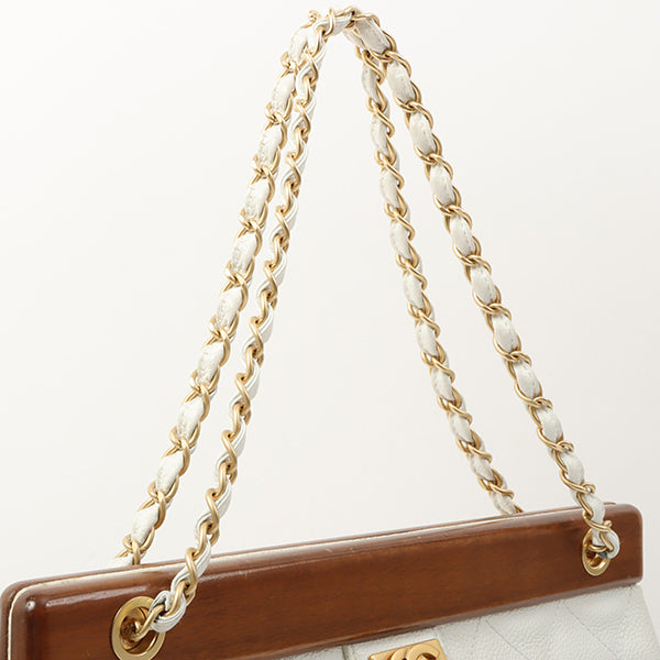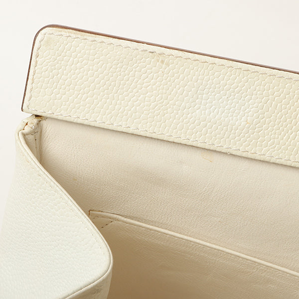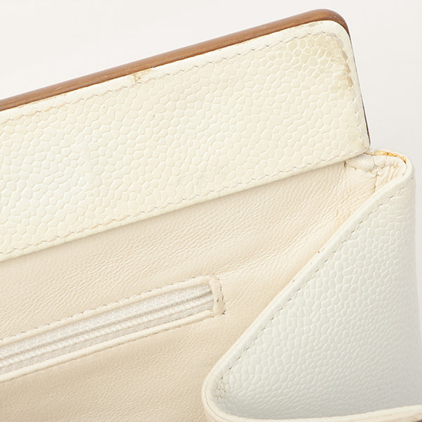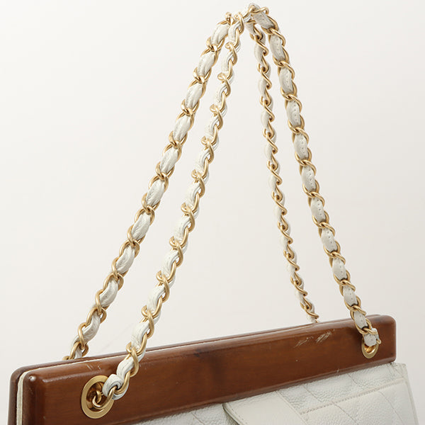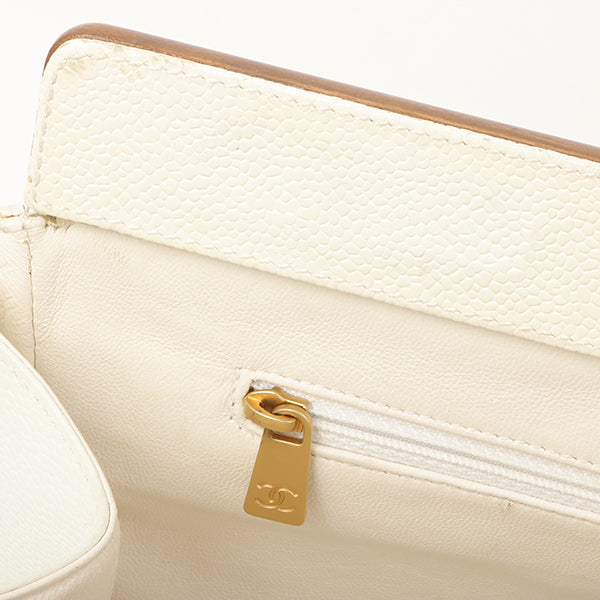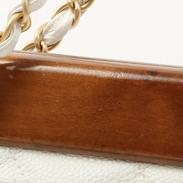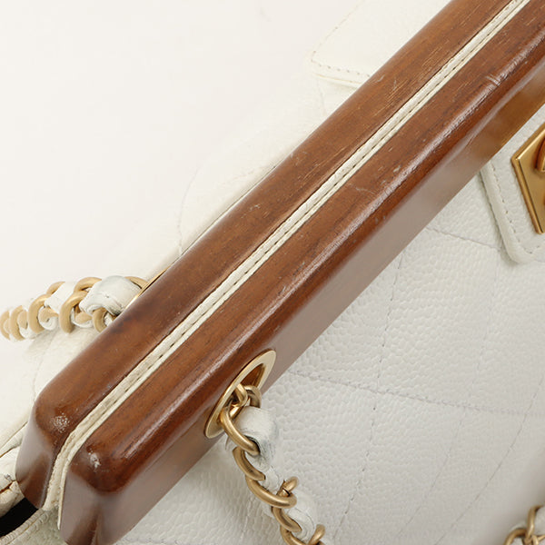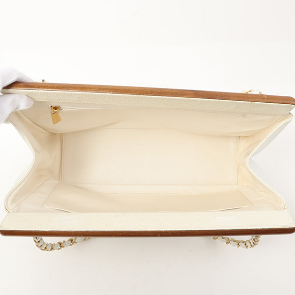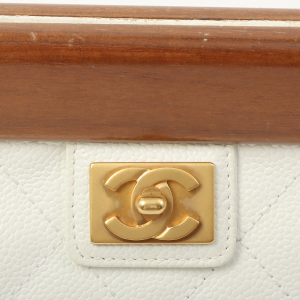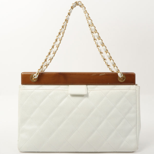 Chanel 2003 Made Caviar Skin Wood Metal Clasp Cc Mark Plate Shoulder Bag White/Brown