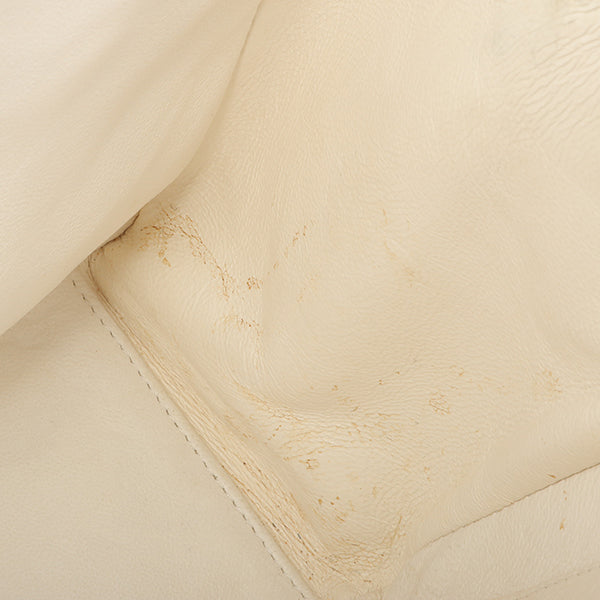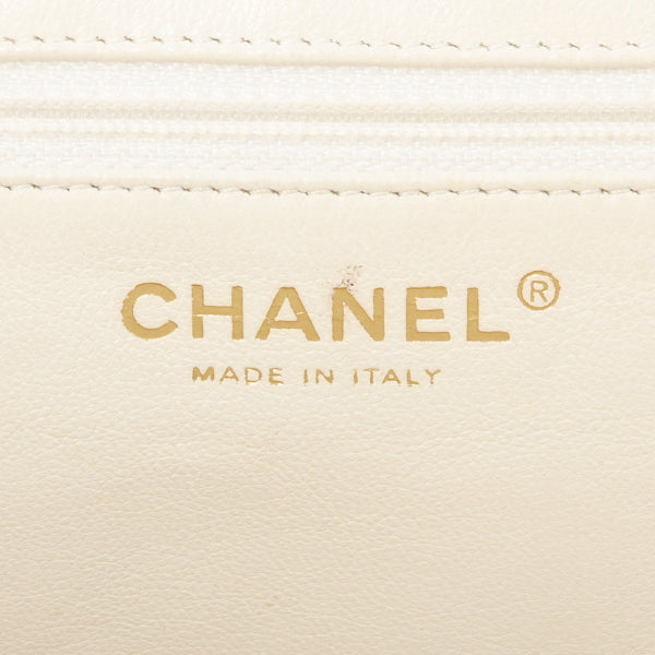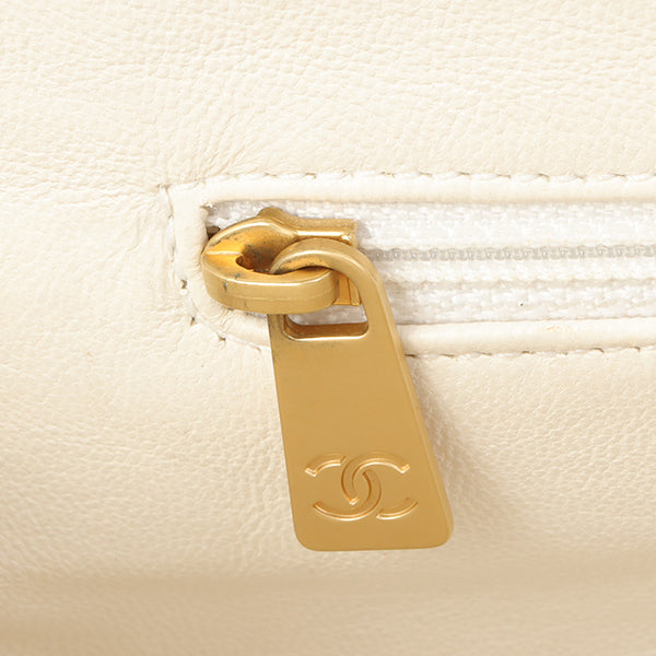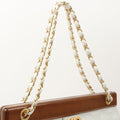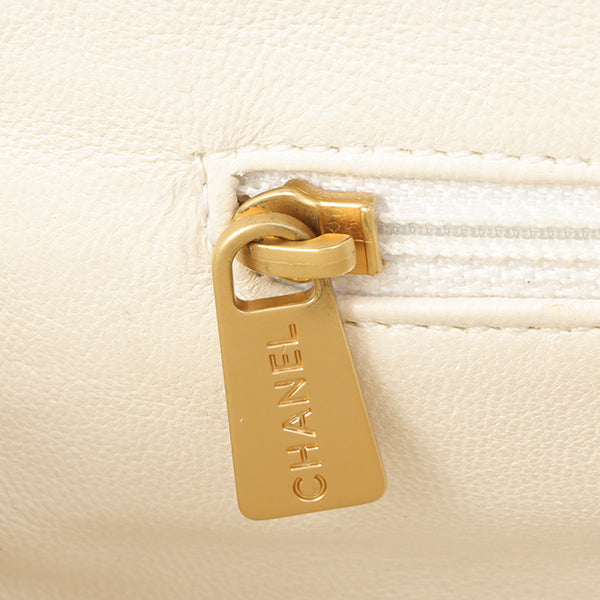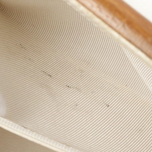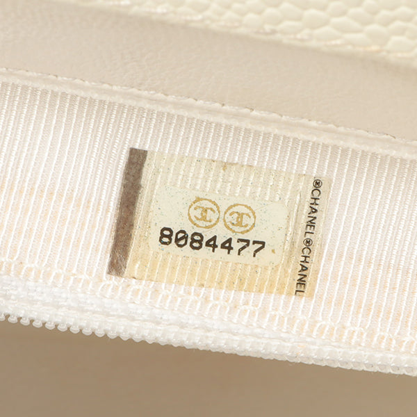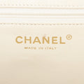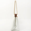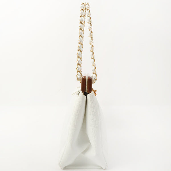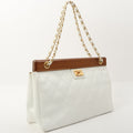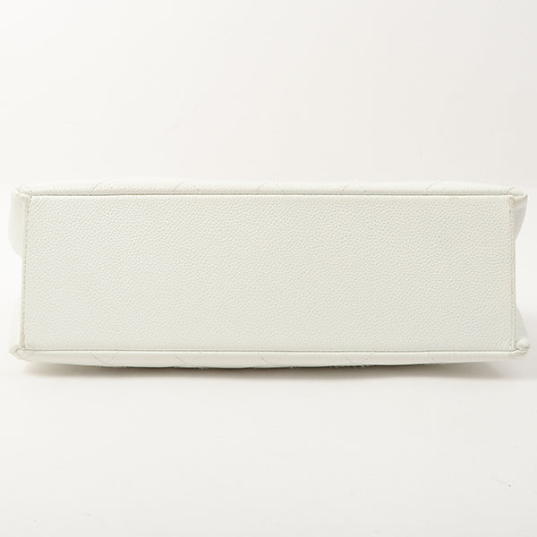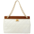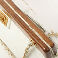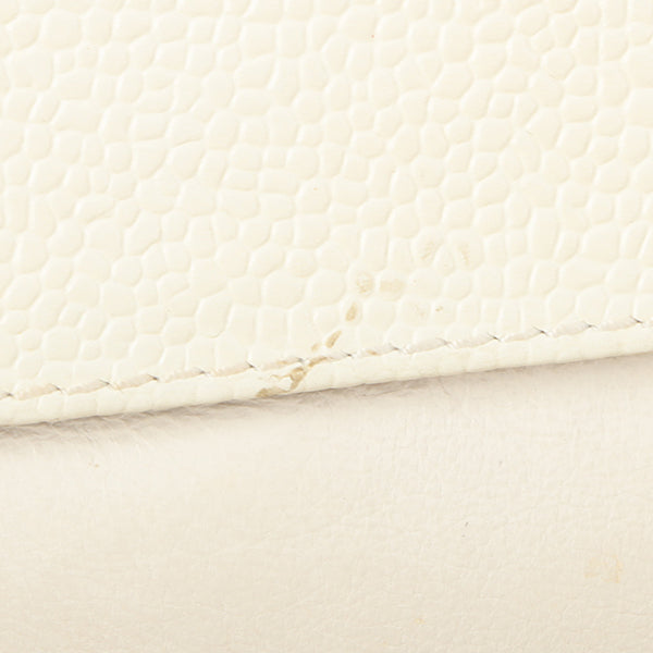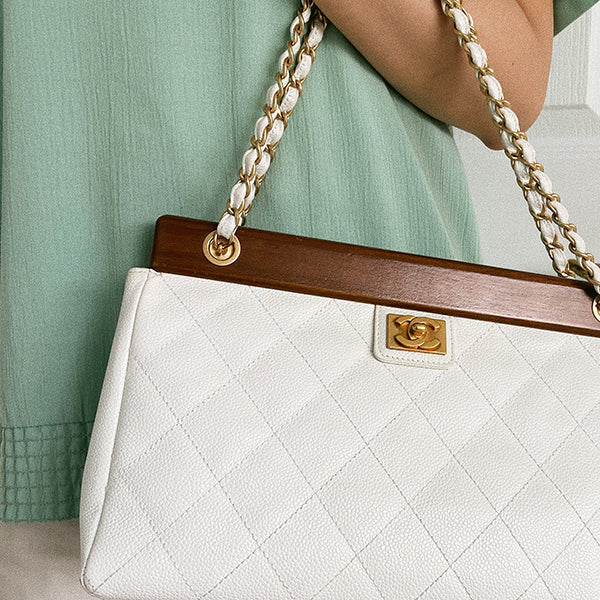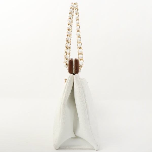 Chanel 2003 Made Caviar Skin Wood Metal Clasp Cc Mark Plate Shoulder Bag White/Brown