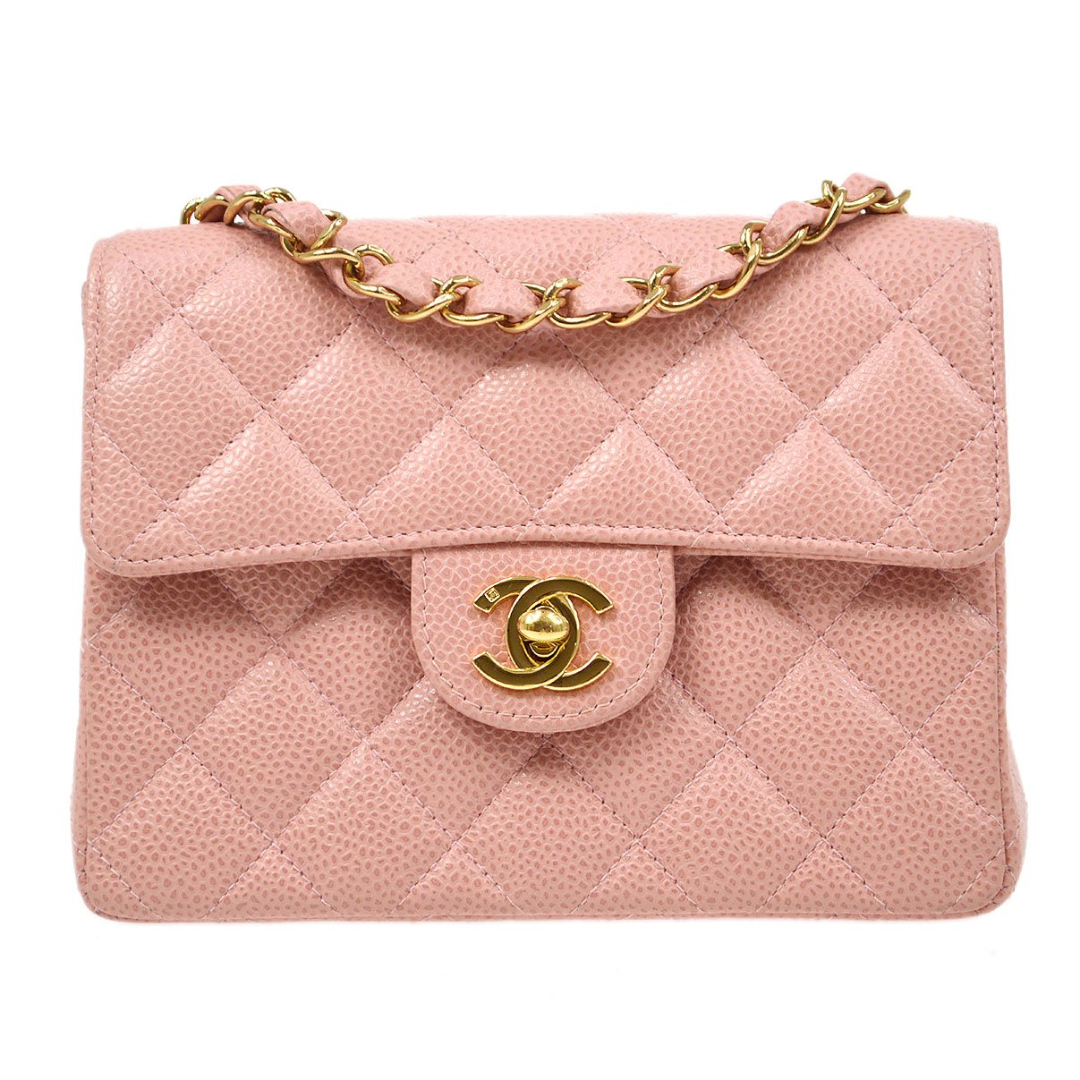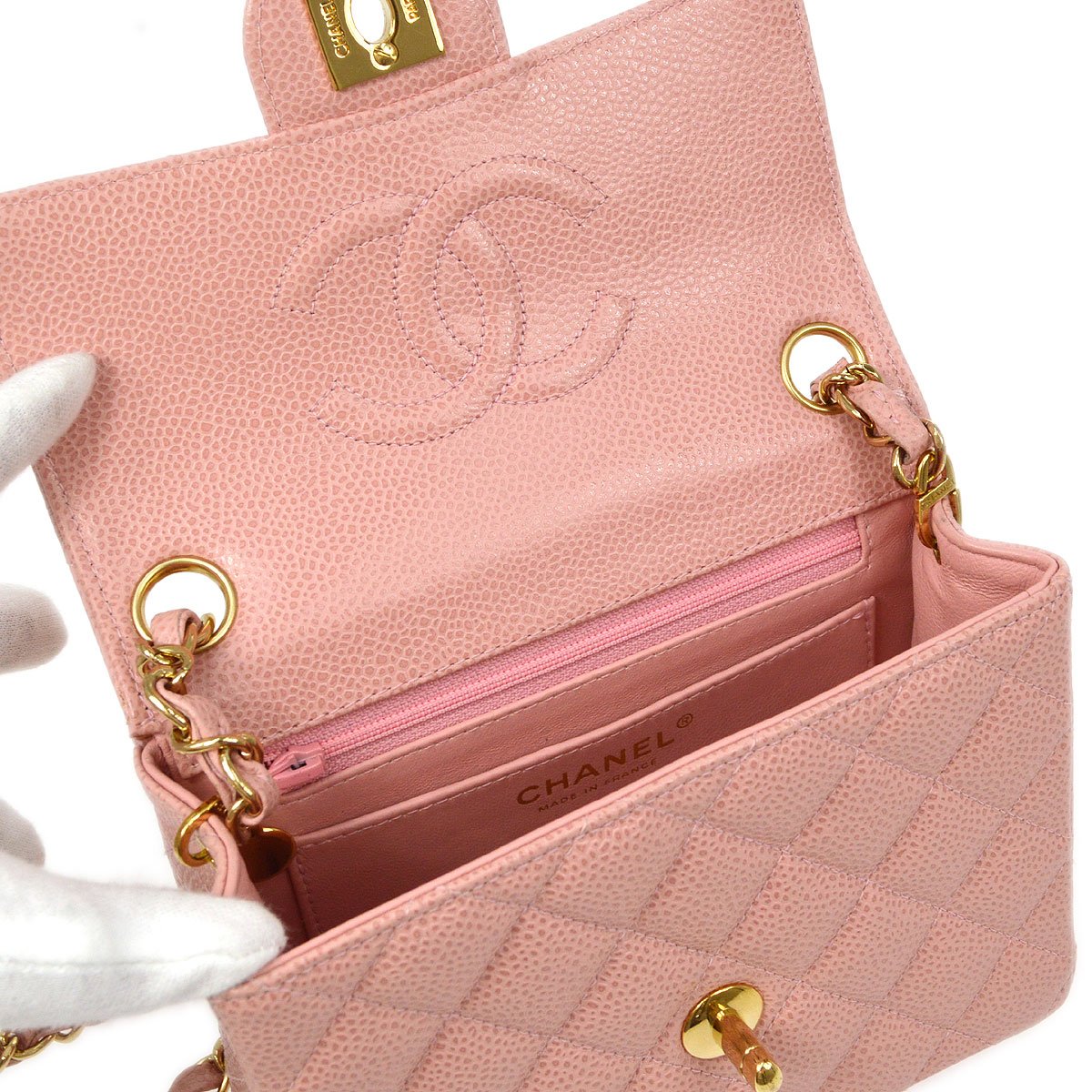Chanel Classic Flap Mini Square Chain Shoulder Bag Light Pink Caviar Skin