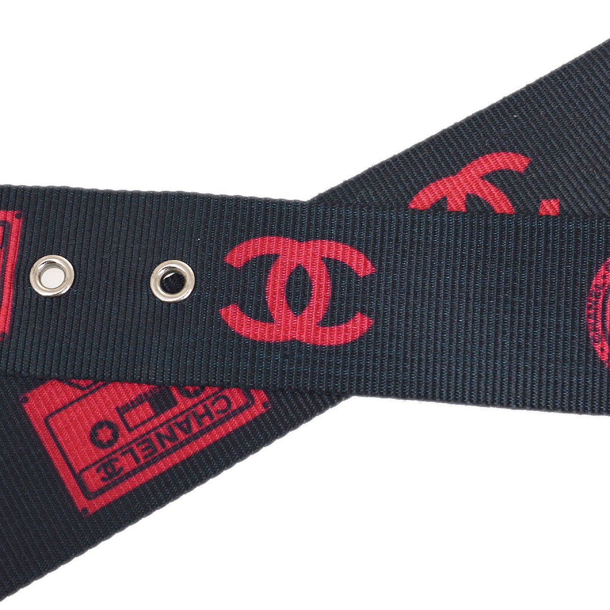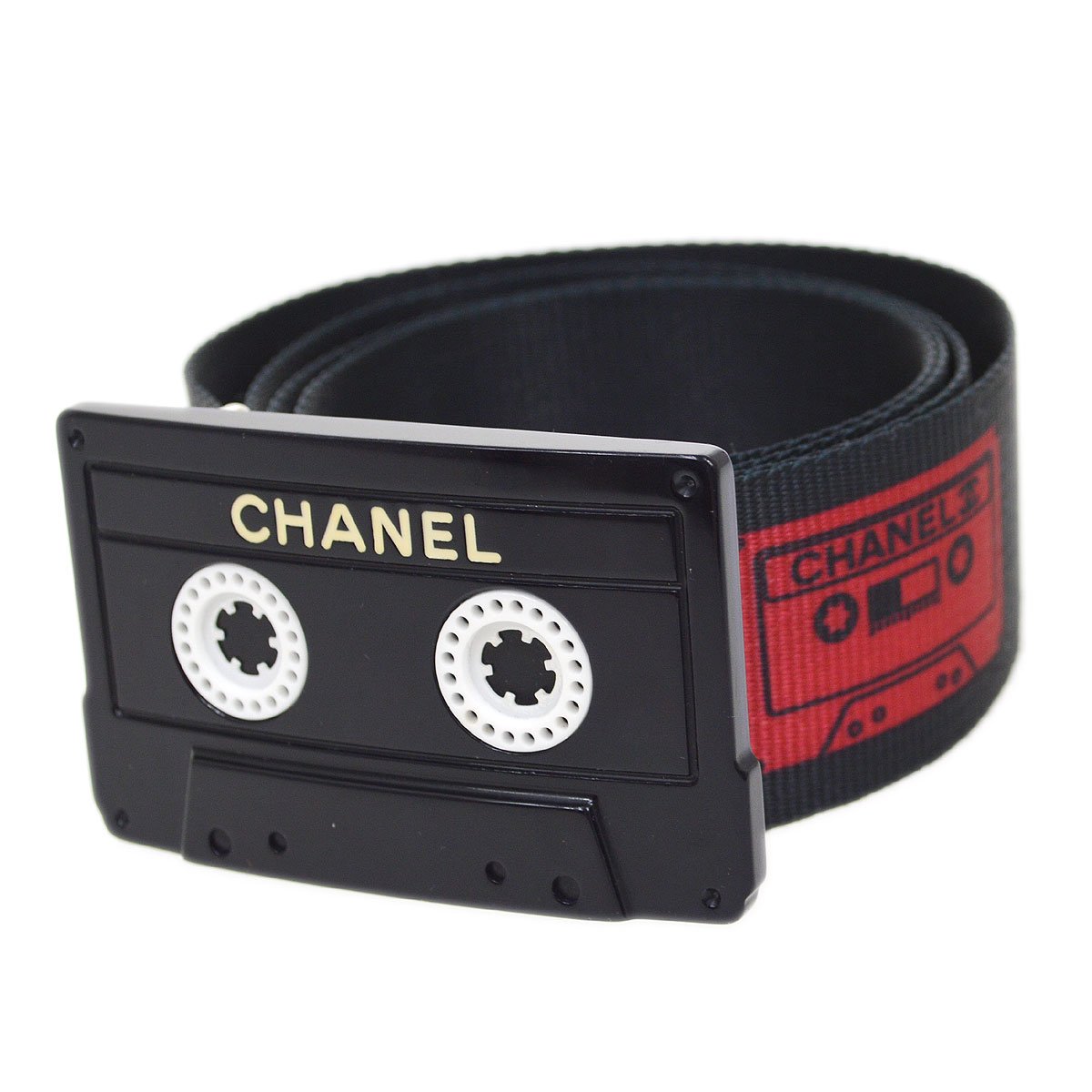 CHANEL Cassette Tape Belt Black Red Nylon 04P