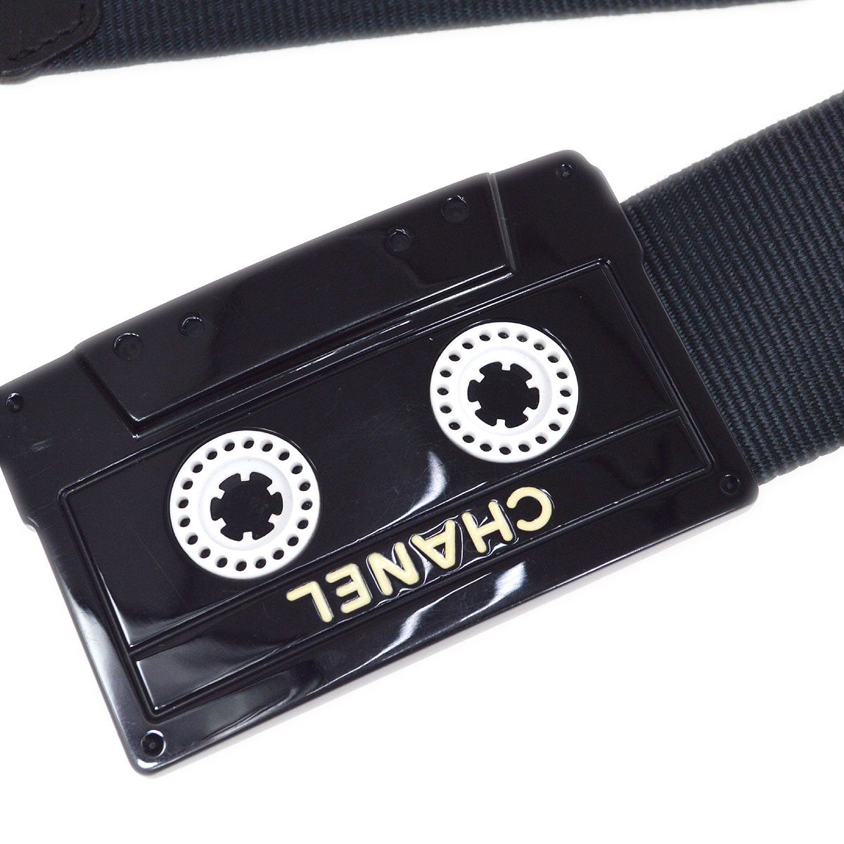 CHANEL 2004 Cassette Tape Belt Black Red Nylon #85 GS02299d