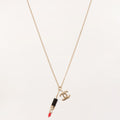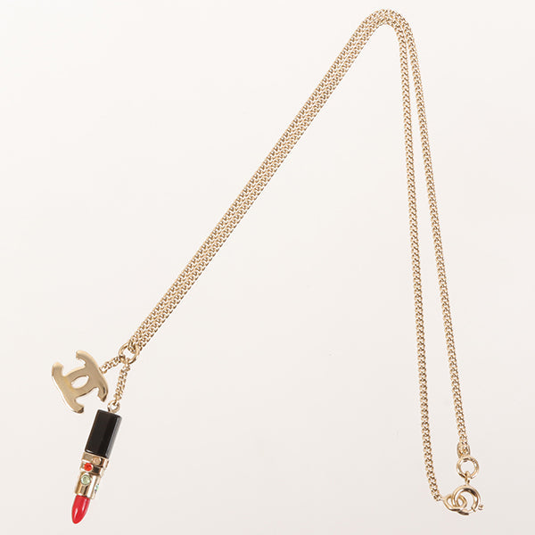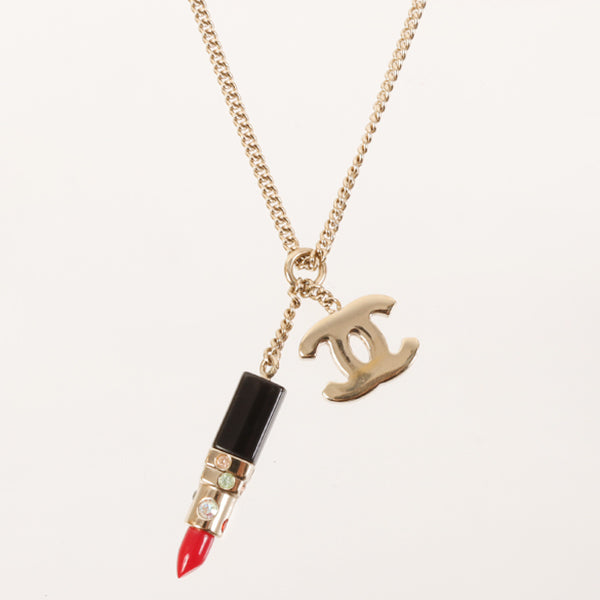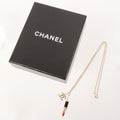 CHANEL 2004 Made Rhinestone Rouge Motif Cc Mark Necklace Red/Multi