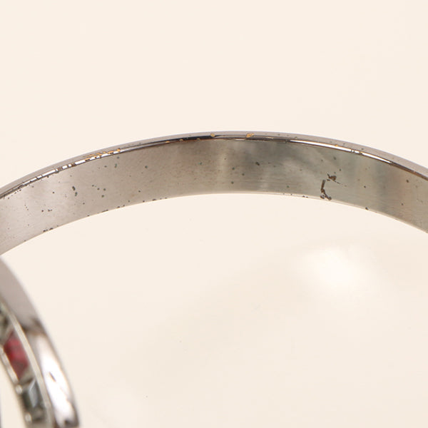 CHANEL 2005 Made Bijoux Cc Mark Bangle Silver/Clear/Red