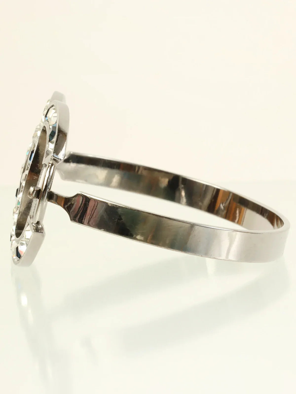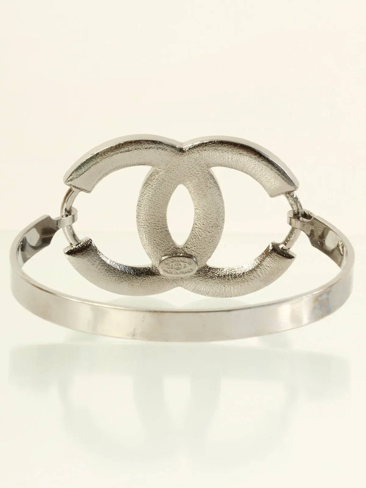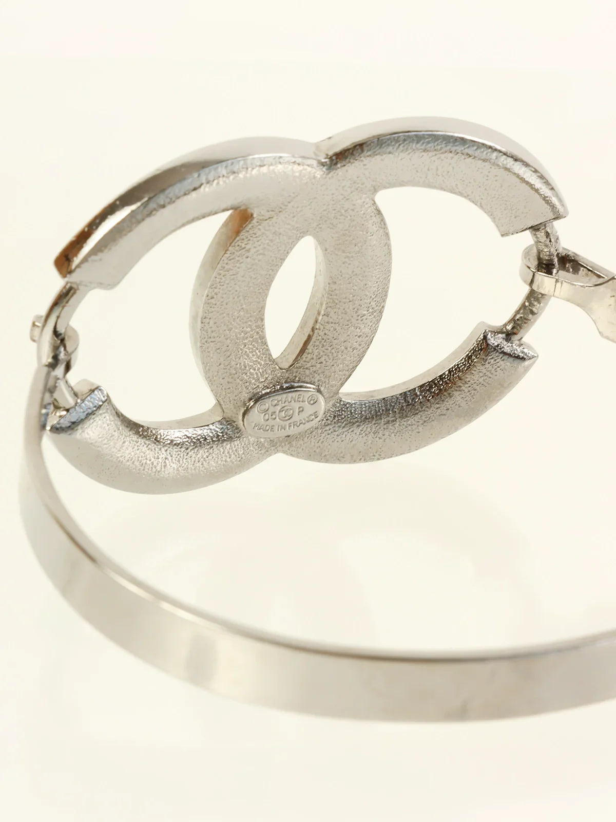 CHANEL 2005 Made Rhinestone Cc Mark Bangle Black/Silver