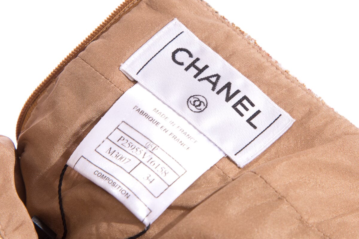 Chanel 2005 Pre-Fall Gold Tweed Skirt SZ 34