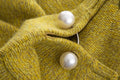 Chanel 2007 Chartreuse Short Sleeve Sweater with Pearl Shoulder Detail. This item is in good condition; some pilling.