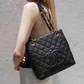 *Not all items online are in stores in Tokyo. If you wish to see a physical item, please contact us in advance. CHANEL Petite Shopping Tote PST Chain Tote Handbag Black Caviar