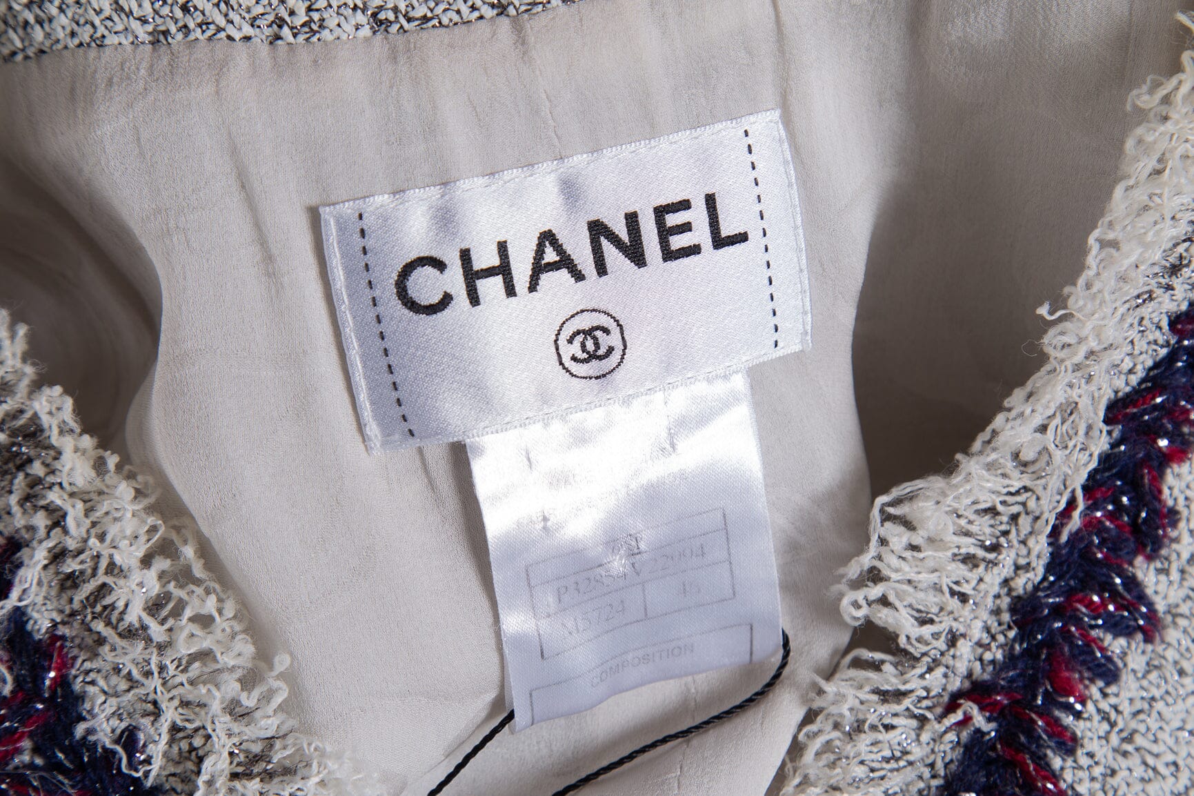 Chanel 2008 White/Navy/Red Tweed Sleeveless Dress. This item is in very good condition.