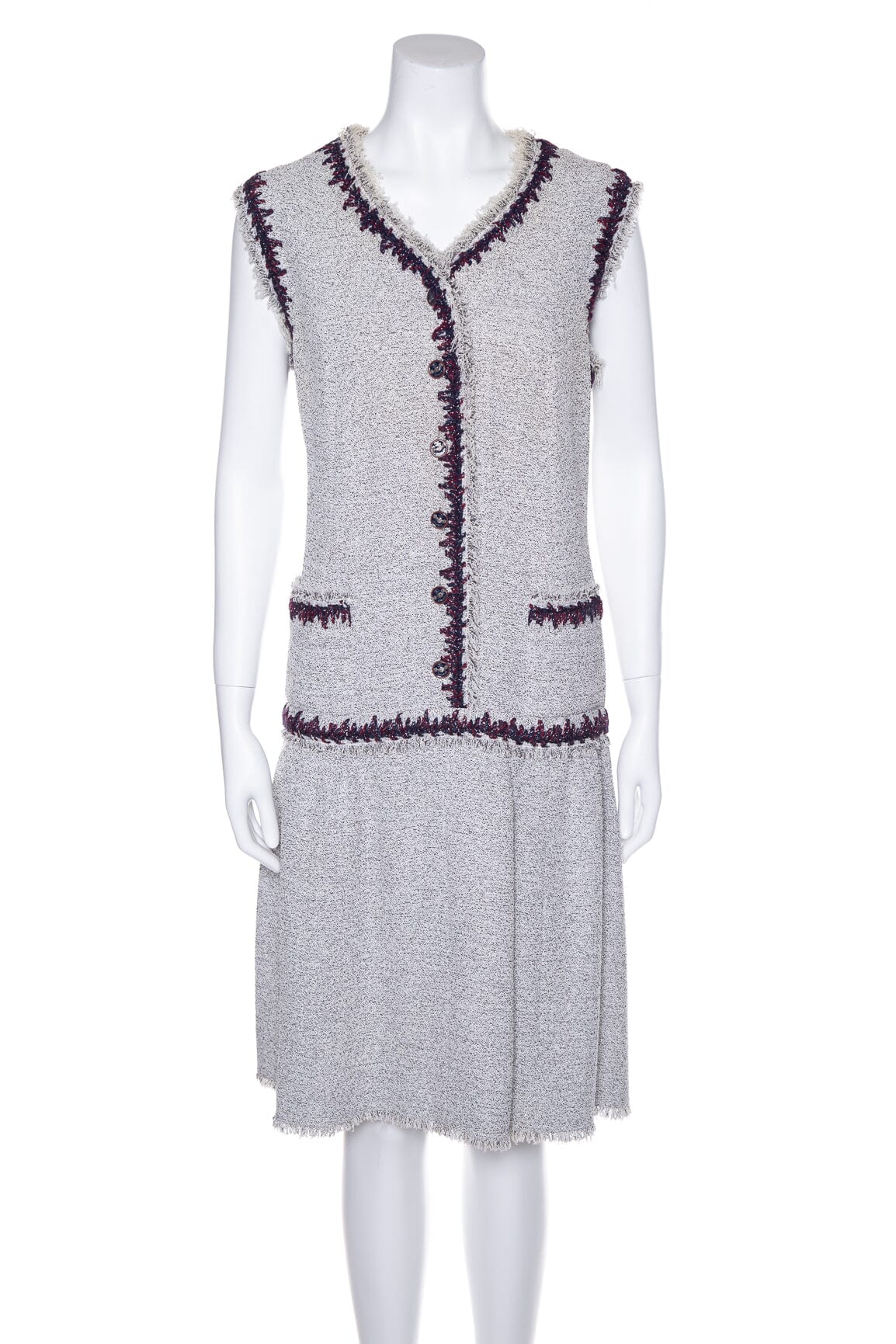 Chanel 2008 Gray Tweed Sleeveless Dress SZ 46