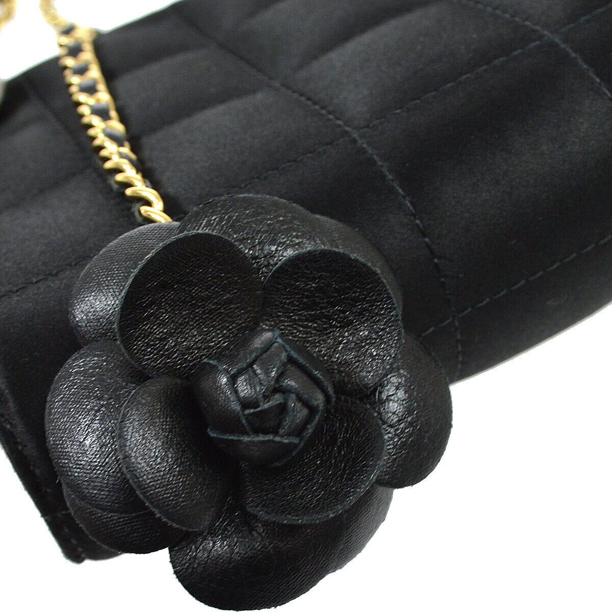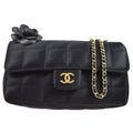 CHANEL Camellia Choco Bar Single Chain Shoulder Bag Black Satin