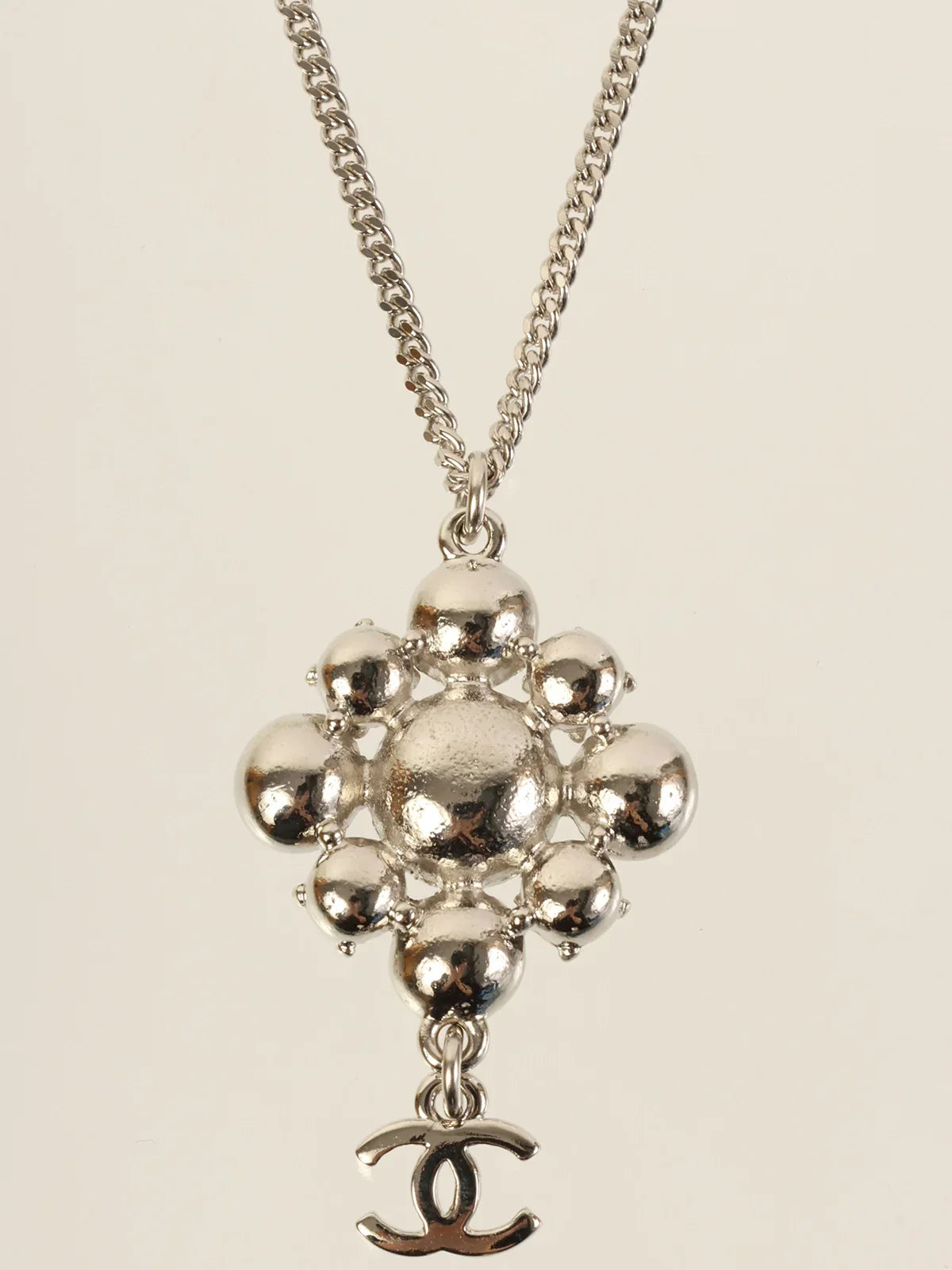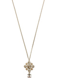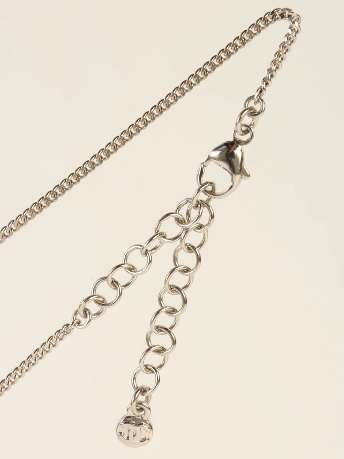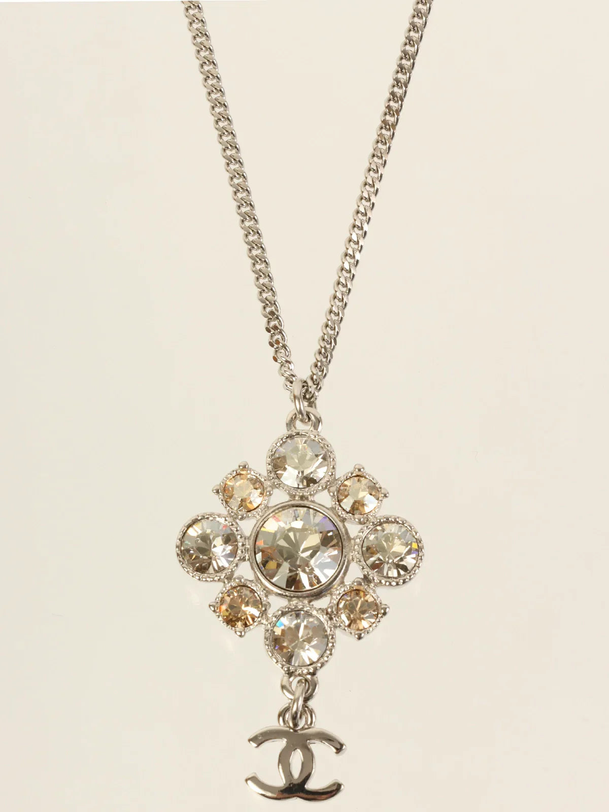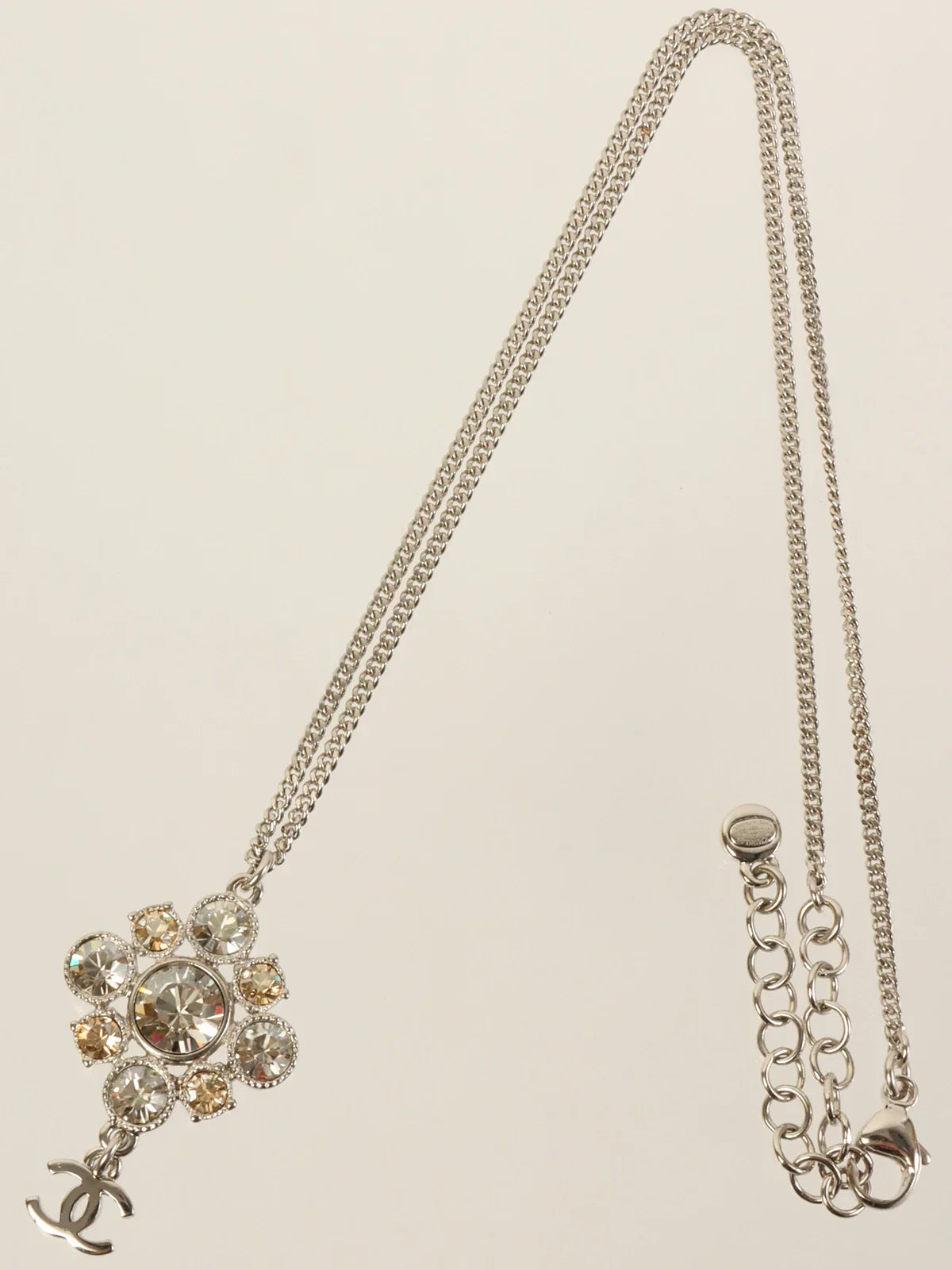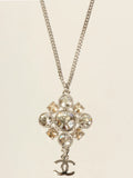 CHANEL 2012 Made Rhinestone Diamond Motif Cc Mark Swing Necklace Silver/Champagne