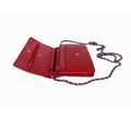 From the 2012 Collection by Karl Lagerfeld. This stylish wallet on chain is crafted of luxuriously textured red caviar leather with a boldly embossed Chanel CC. The bag features a below the waist, silver chain link shoulder strap threaded with leather, and a front flap that unsnaps to a red fabric interior with a zipper pocket and card slots. Est. Retail $2,950.