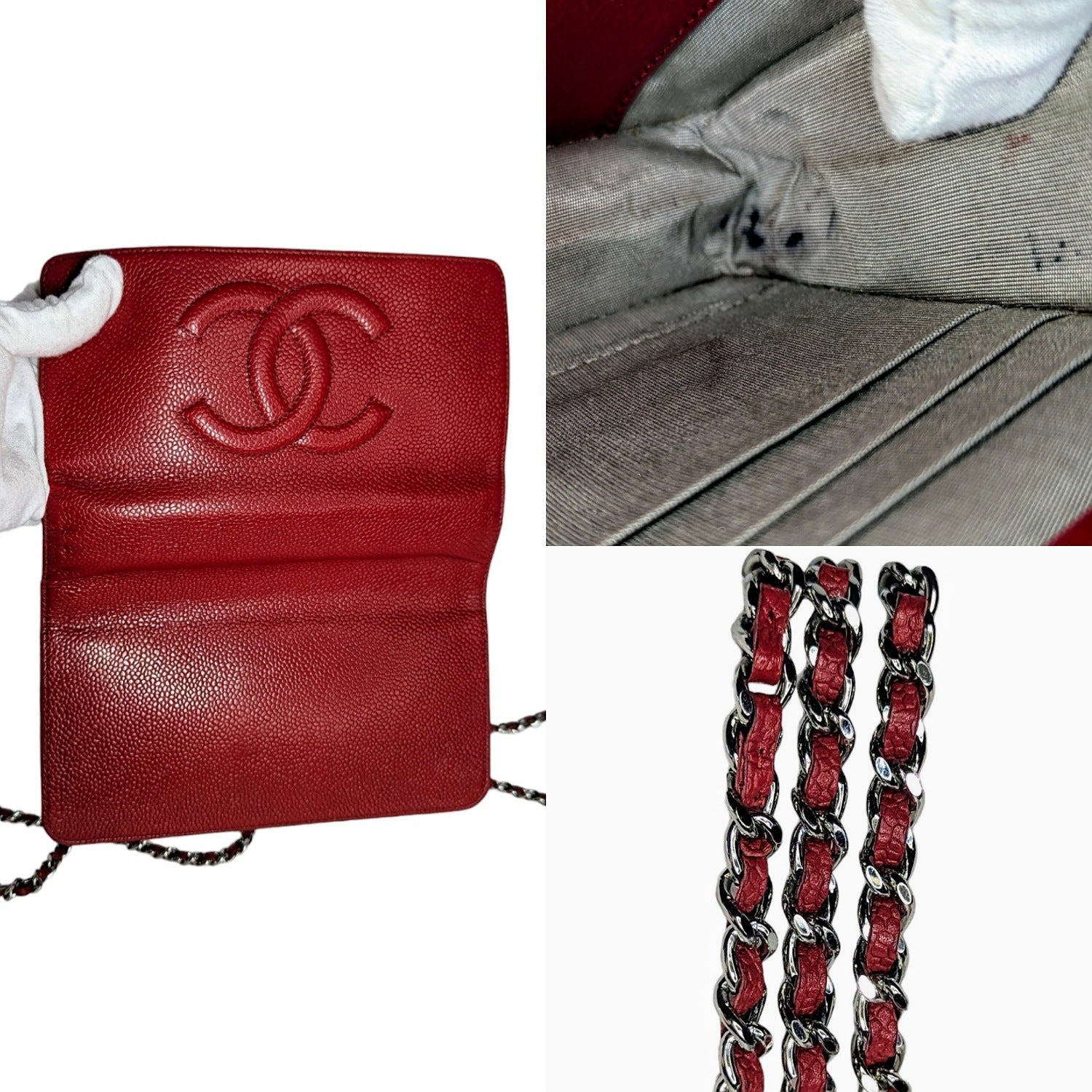 Chanel 2012 Red Caviar Timeless Wallet On Chain WOC