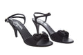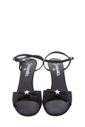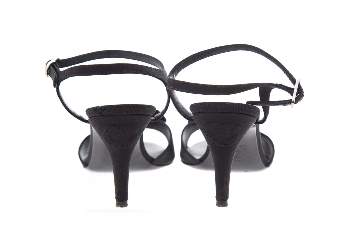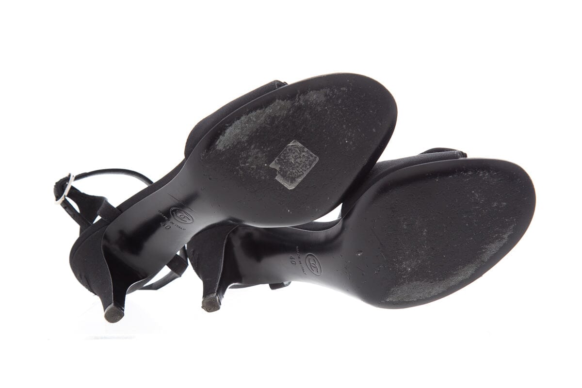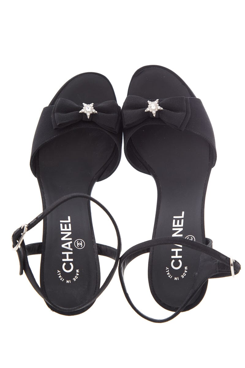 Chanel 2015 Black Bow Star Heels with Stitched CC Back. This item is in good condition; some wear on bottoms as well as fabric on heel shafts.