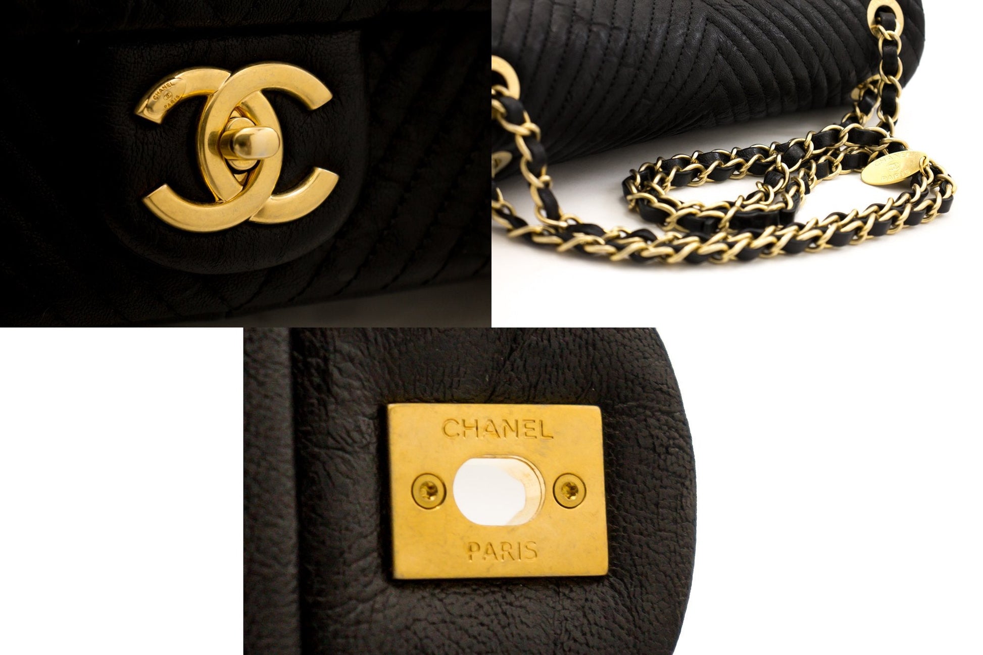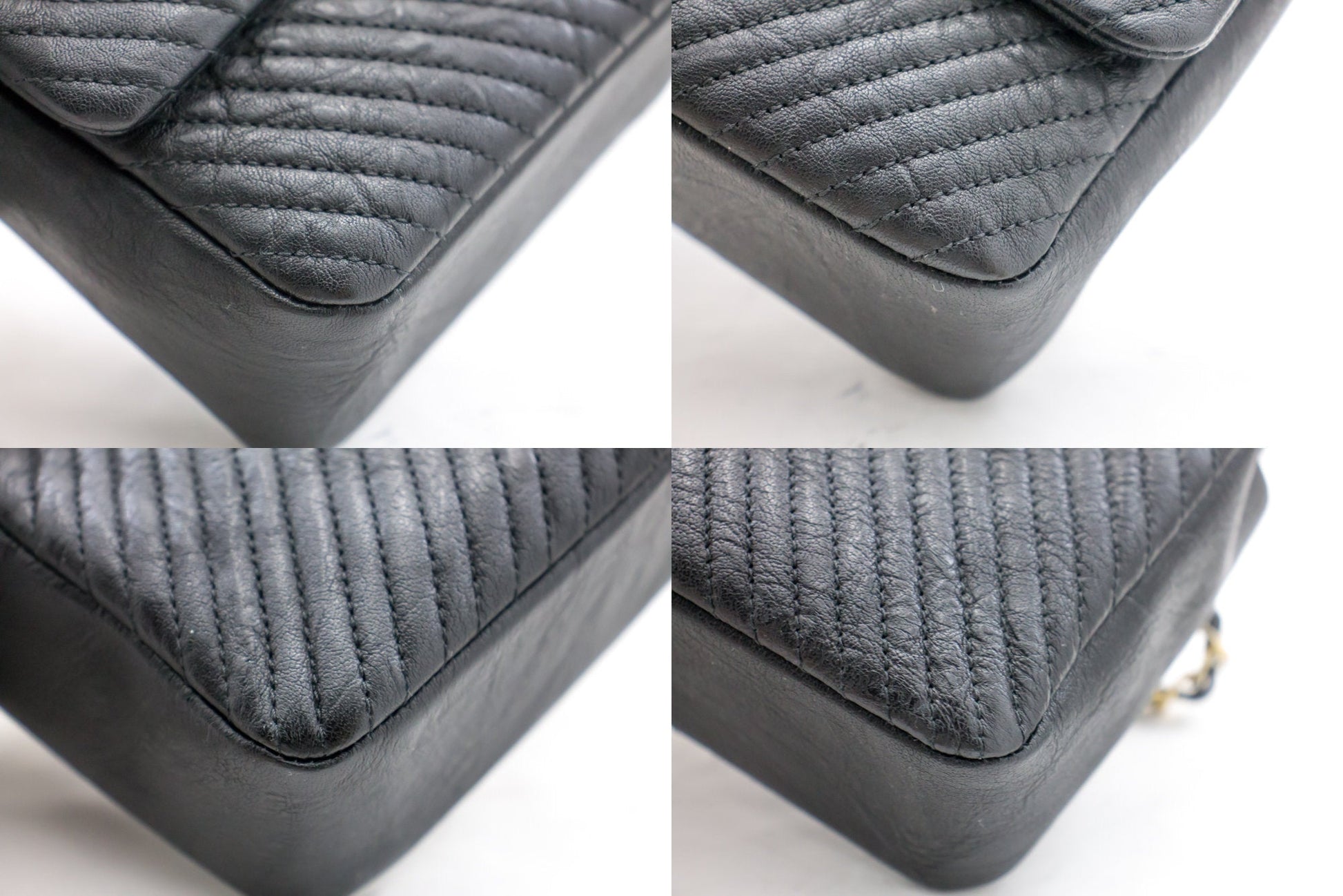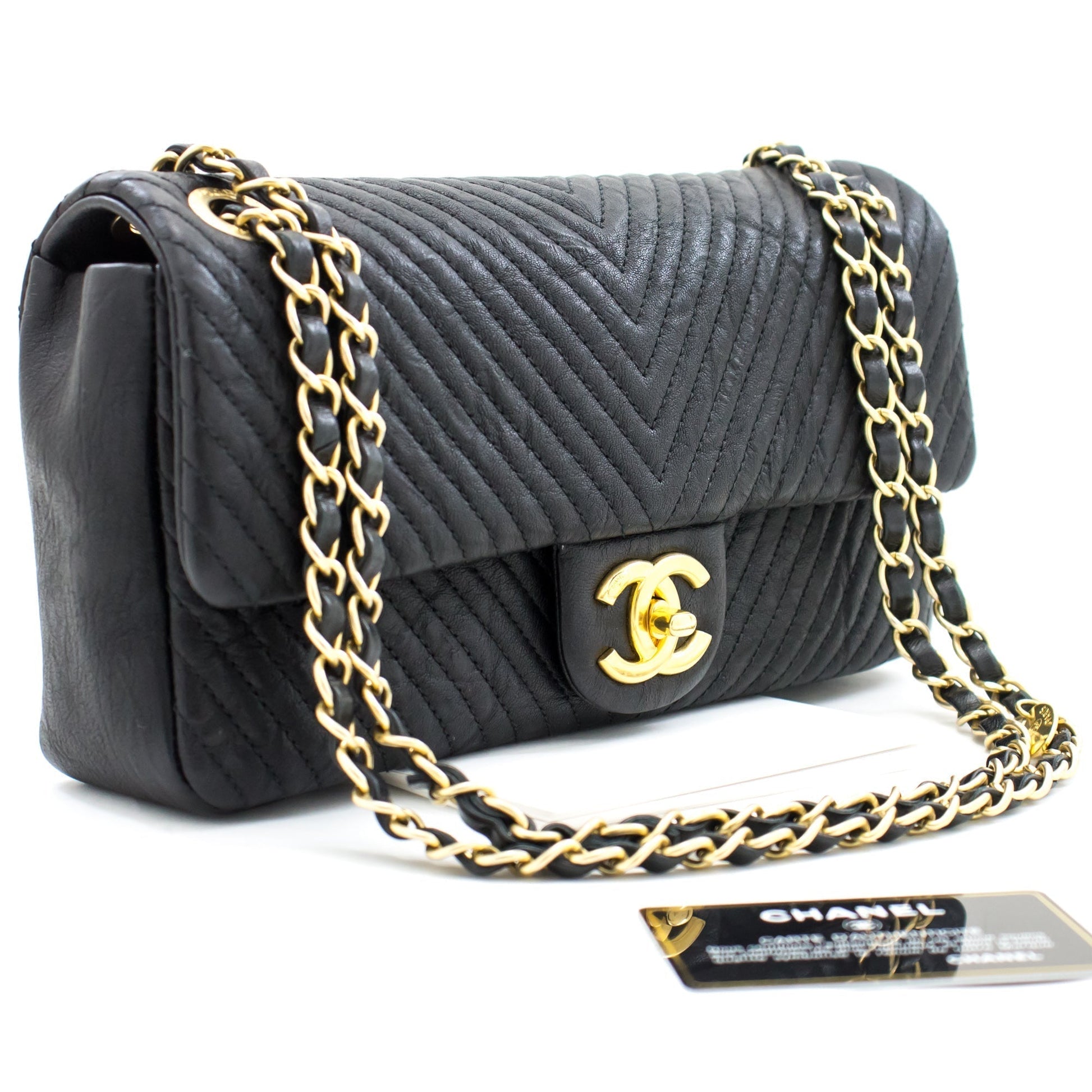 An entic Chanel 2015 Chevron V-Stitch Leather Chain Flap Shoulder Bag.