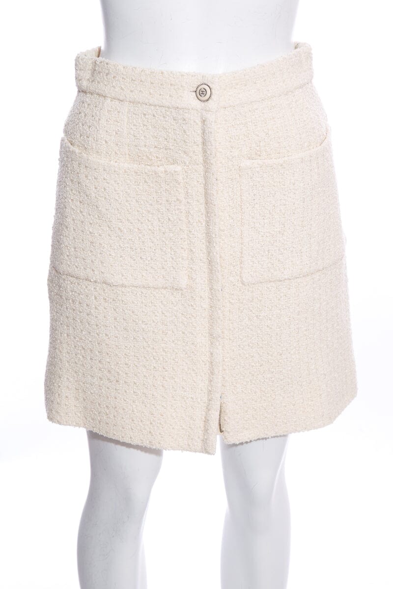 NWT Chanel 2020 Cruise Ivory Fantasy Tweed Skirt Zip Detail Skirt. This item is new with tags.
