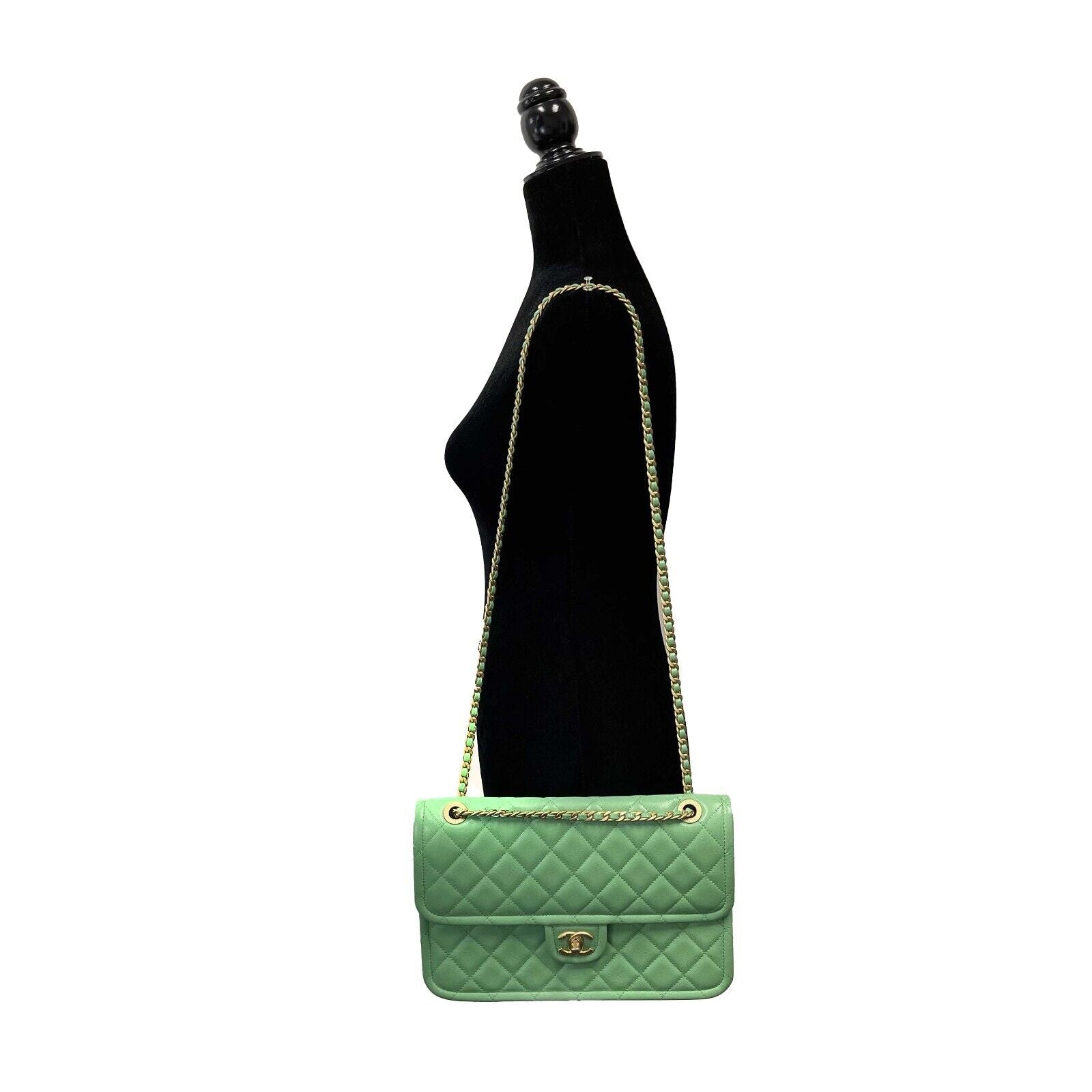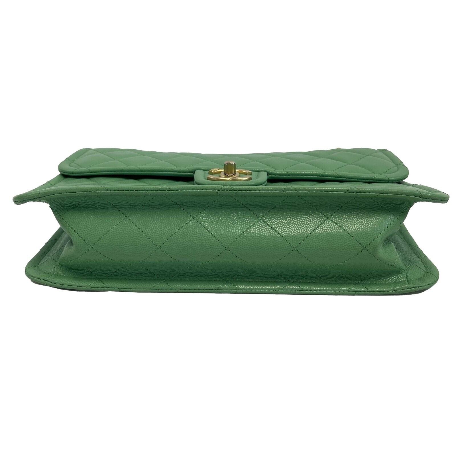 CHANEL - 2021 CC Medium Diamond Caviar Leather Mint Green Sweet Single Flap
