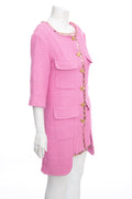 Chanel Spring / Summer 2022 Collection by Virgine Viard Tweed Pink Dress with sequins detail, quarter length sleeve , pocket detail, button front pocket detail. This item is in very good condition.