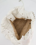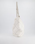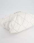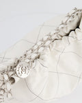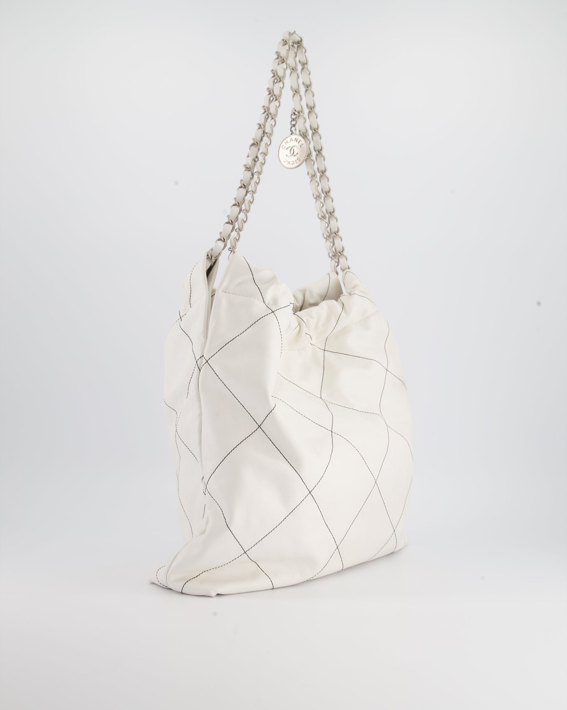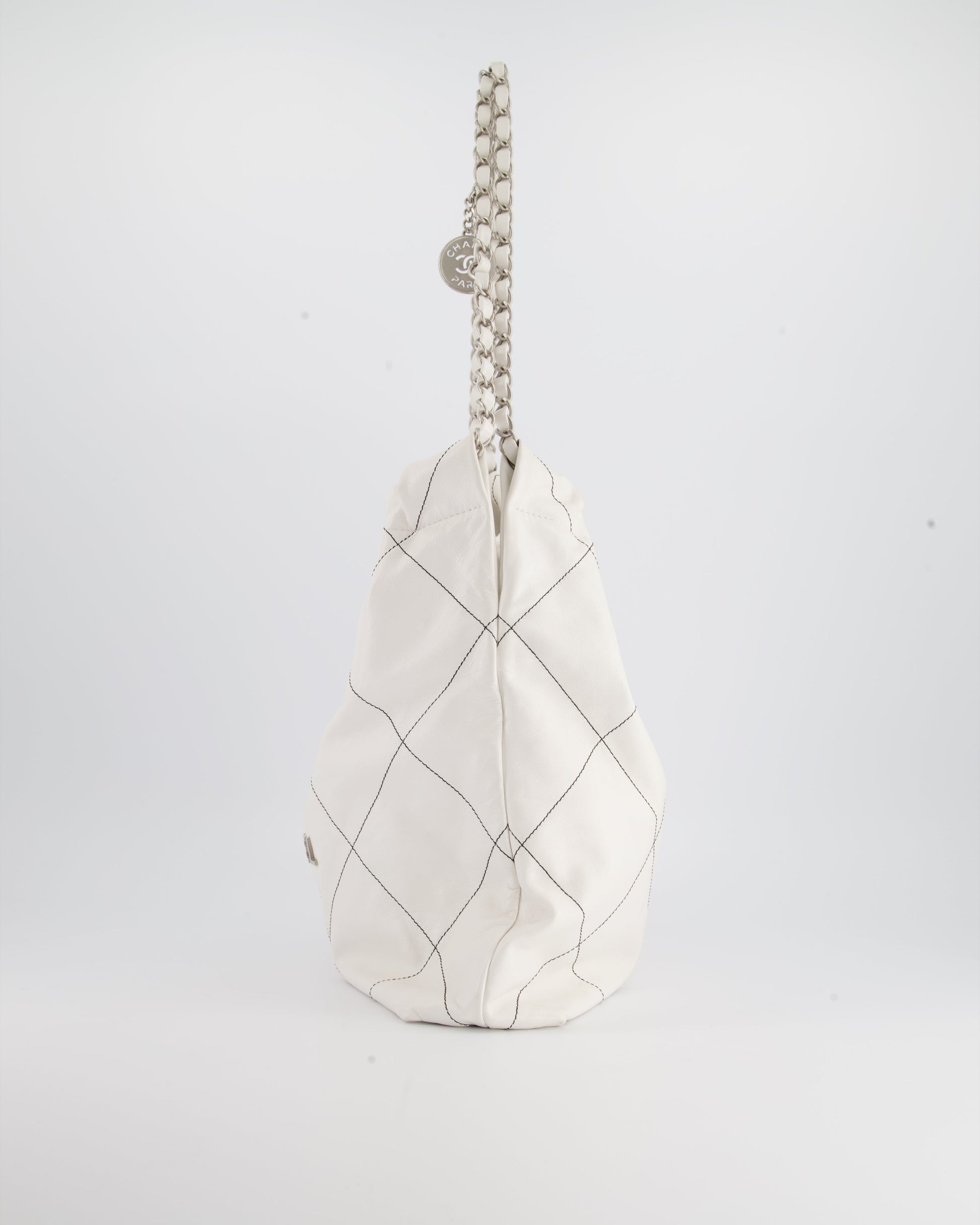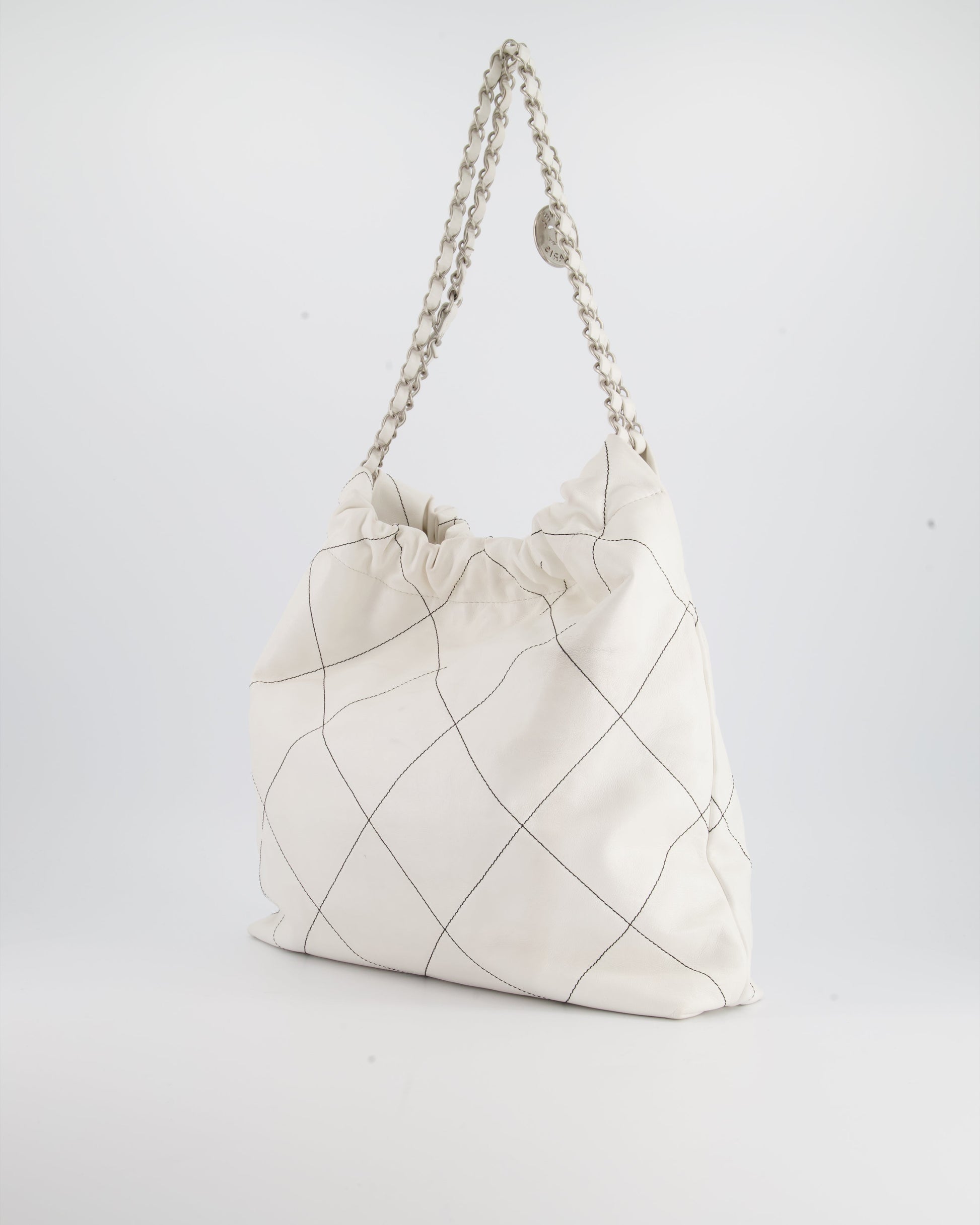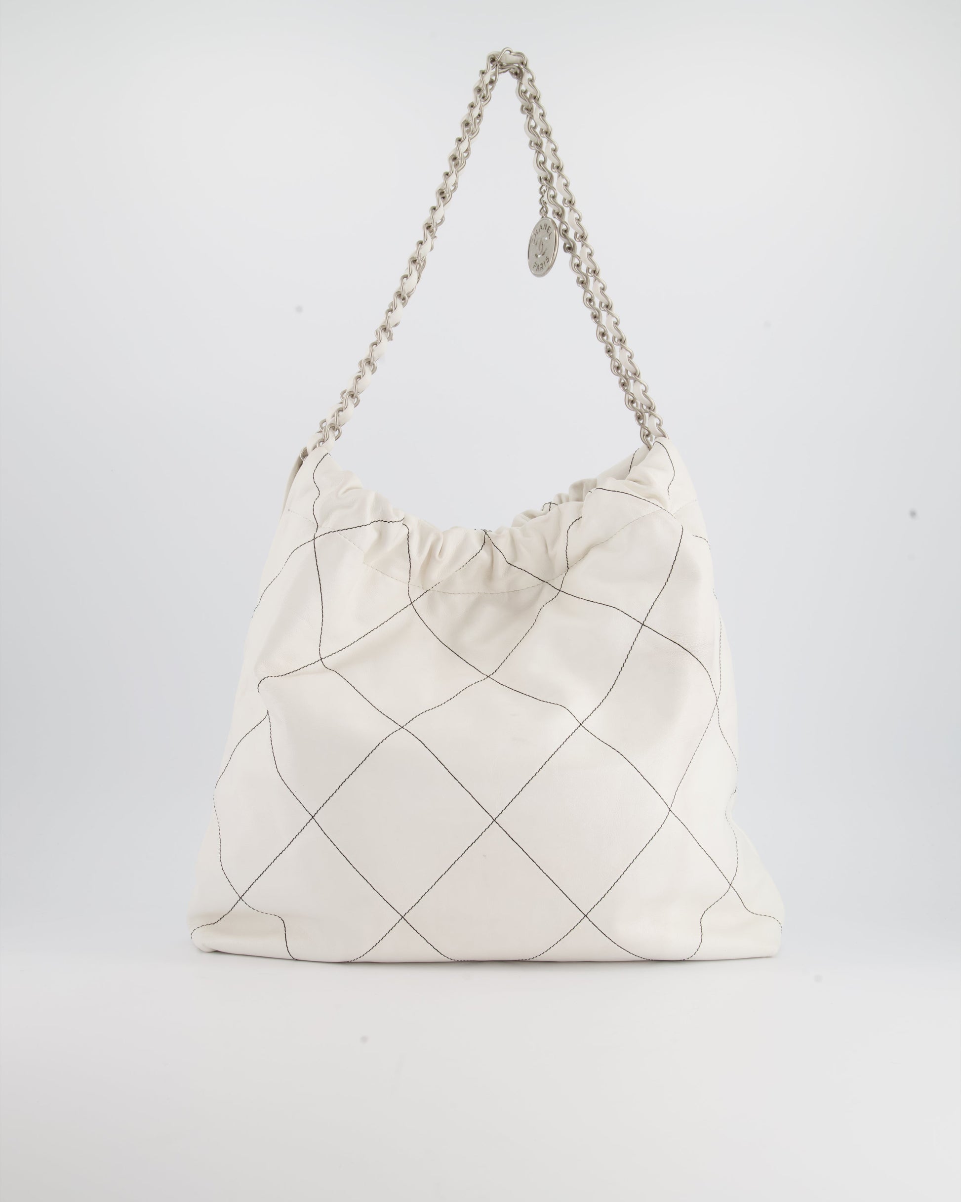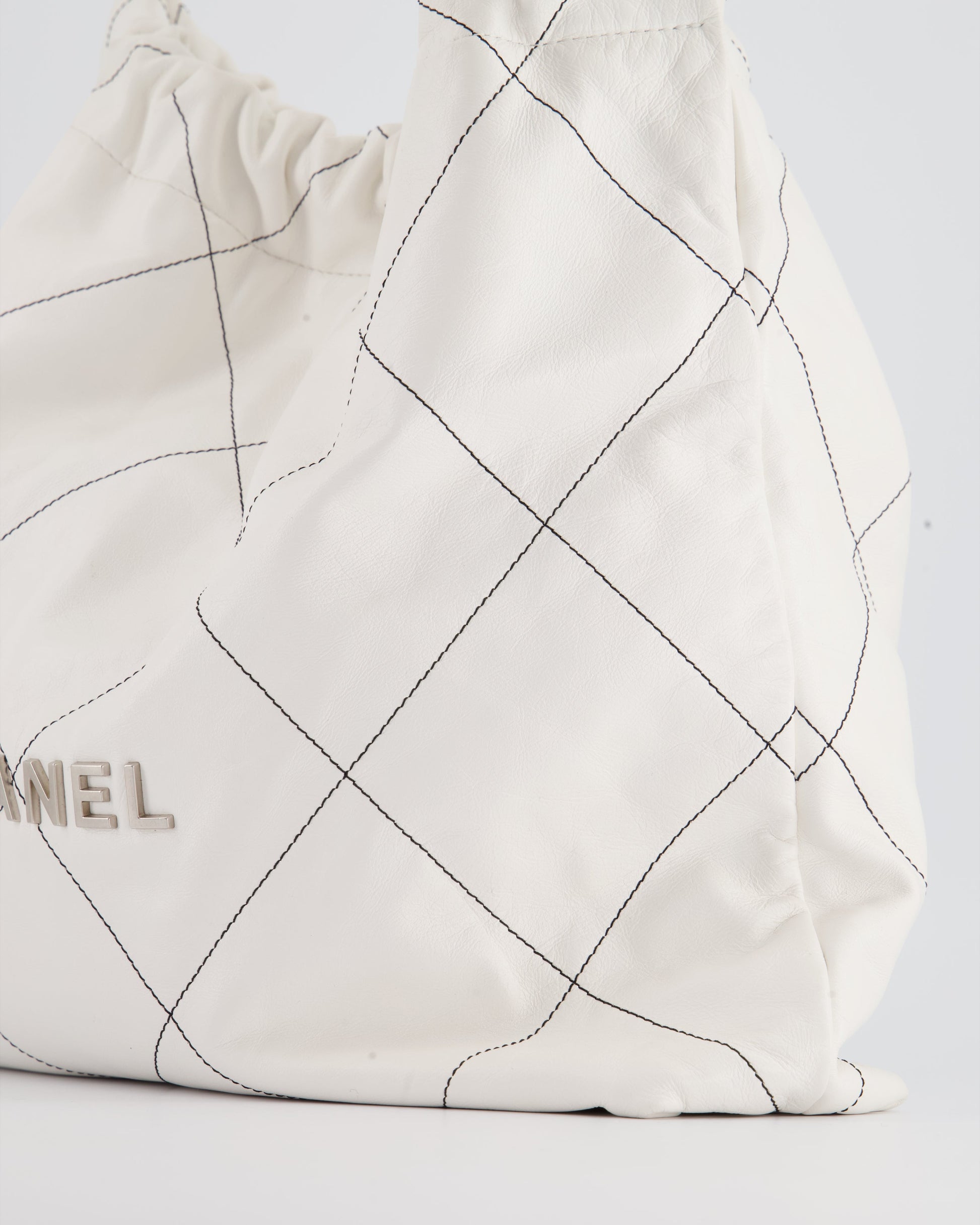 Chanel 22 Bag in White Aged Calfskin with Silver Hardware and Contrast Stitch Detail