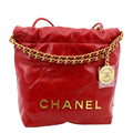 CHANEL 22 Mini Chain Shiny Calfskin Leather Shoulder Bag Red