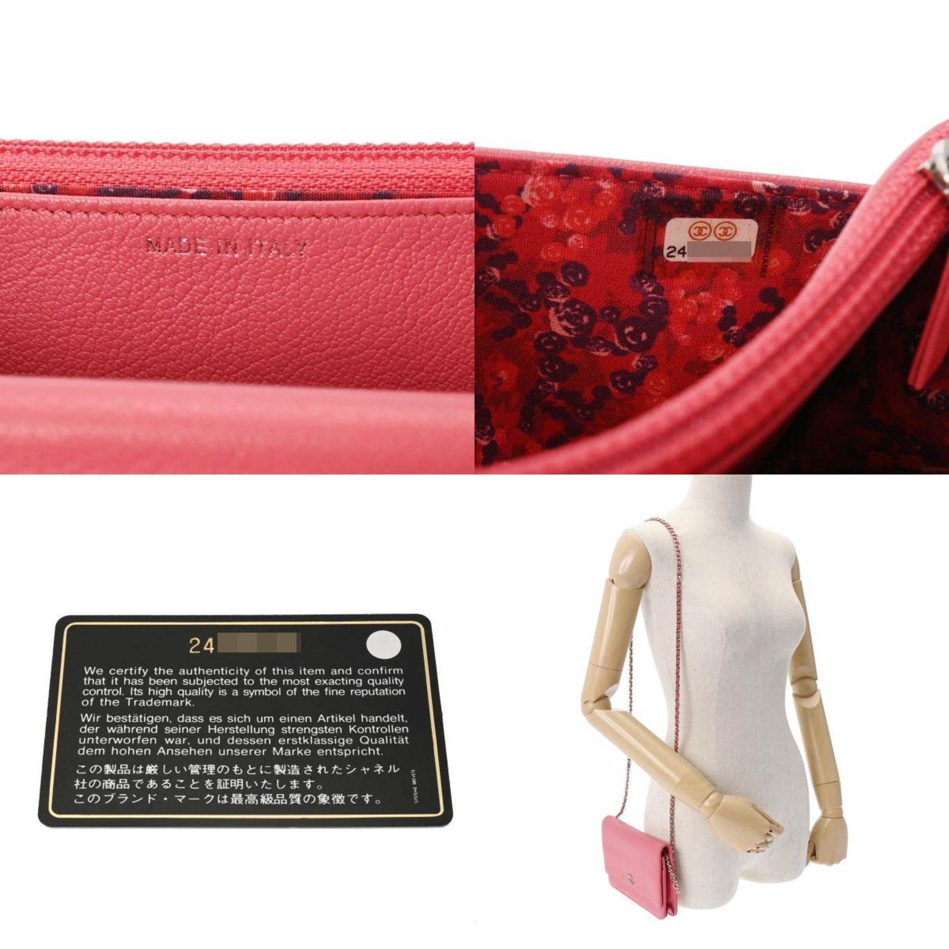 Introducing the Chanel Wallet on Chain, a stylish and practical accessory designed for women. This chain/shoulder wallet is crafted from luxurious leather in a delightful pink hue, showcasing the iconic Chanel elegance.