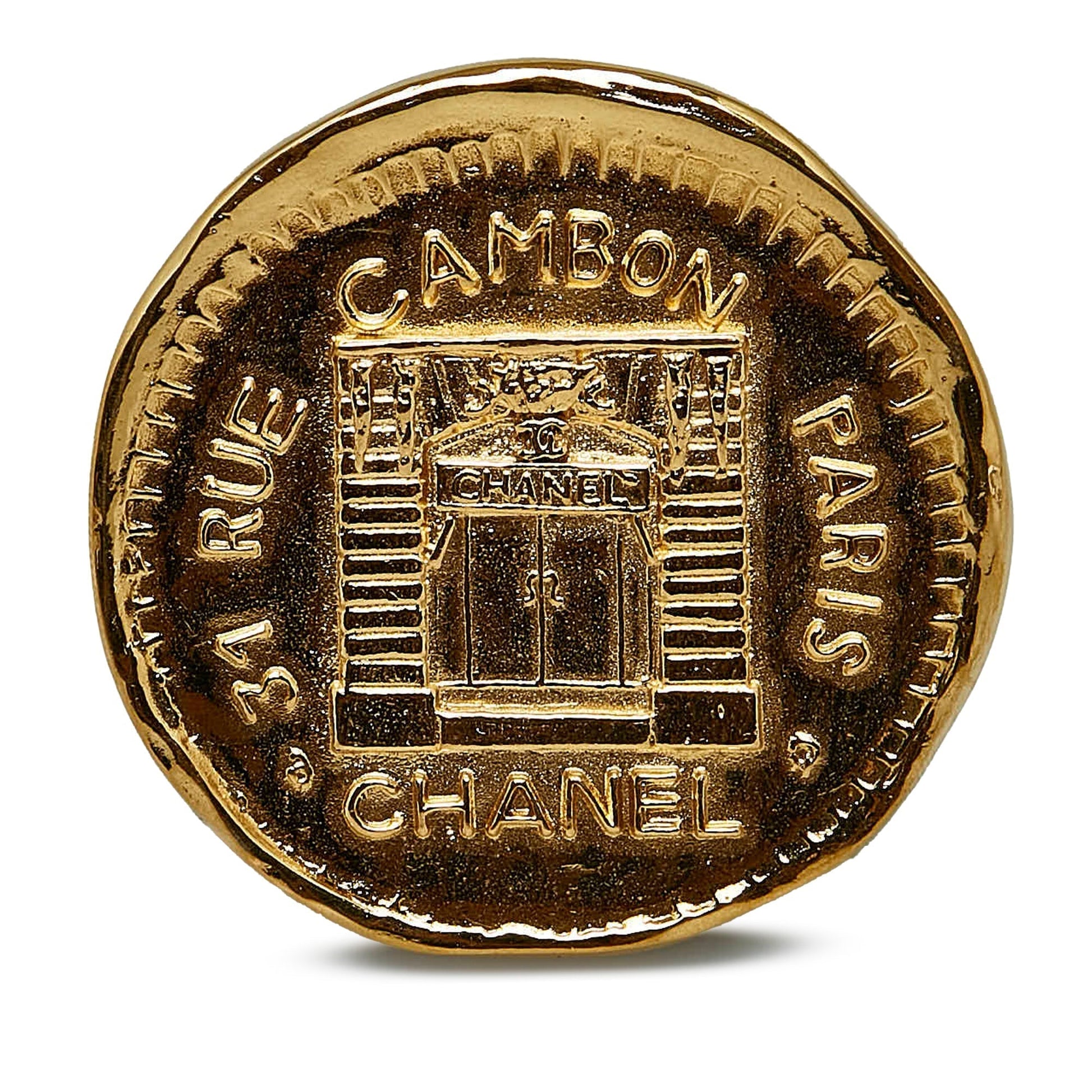 CHANEL 31 Rue Cambon Hammered Medallion Brooch Costume Brooch