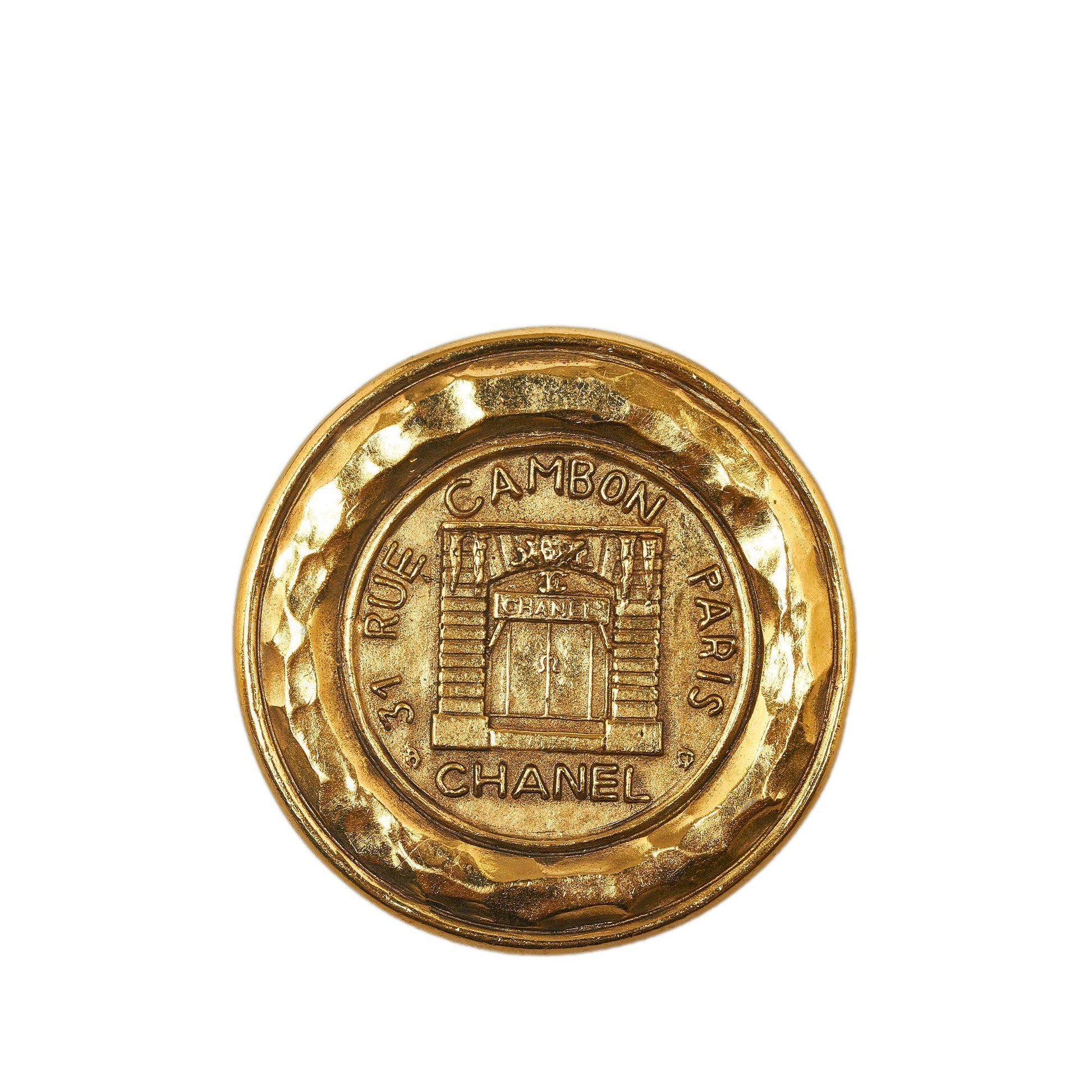 CHANEL 31 Rue Cambon Hammered Medallion Brooch Costume Brooch