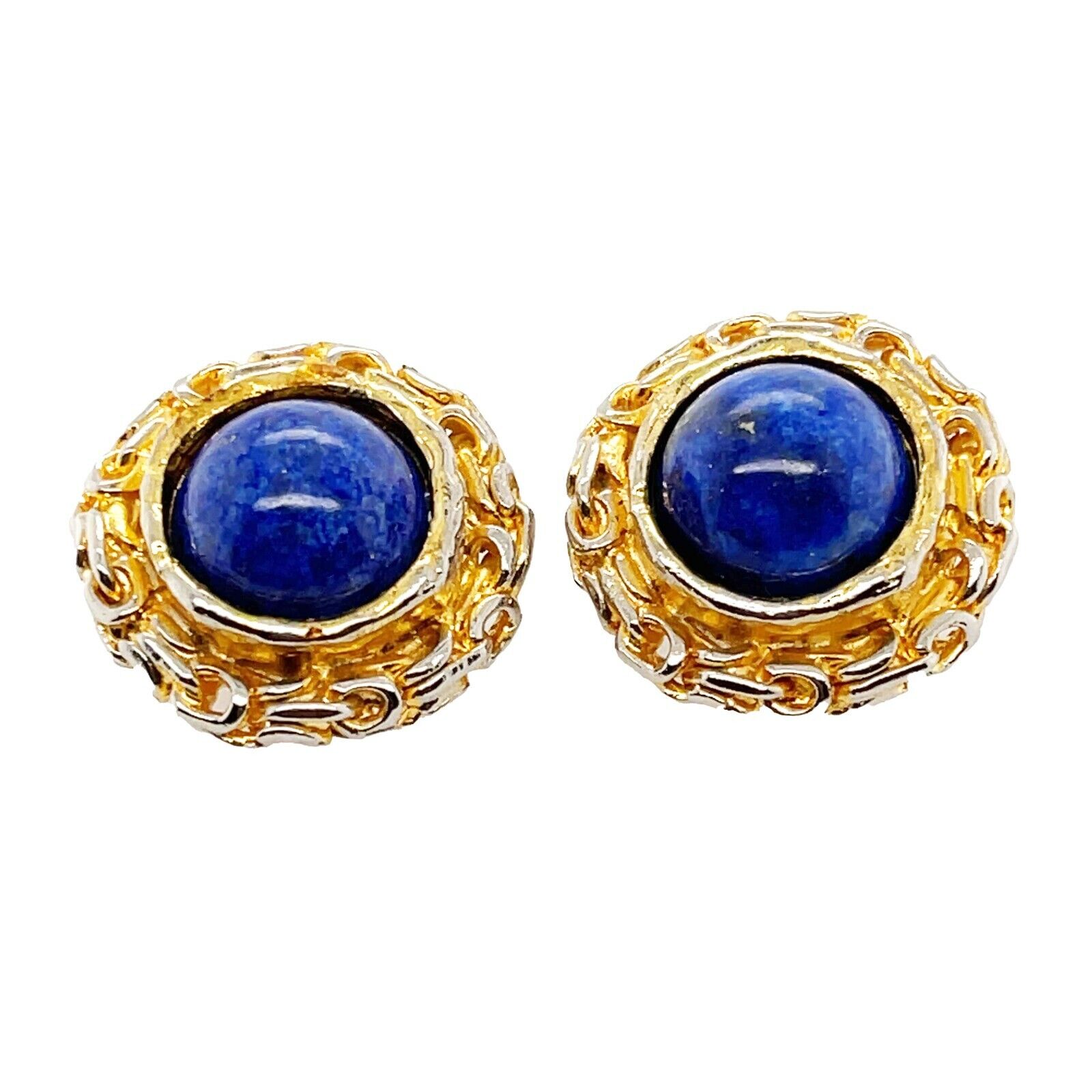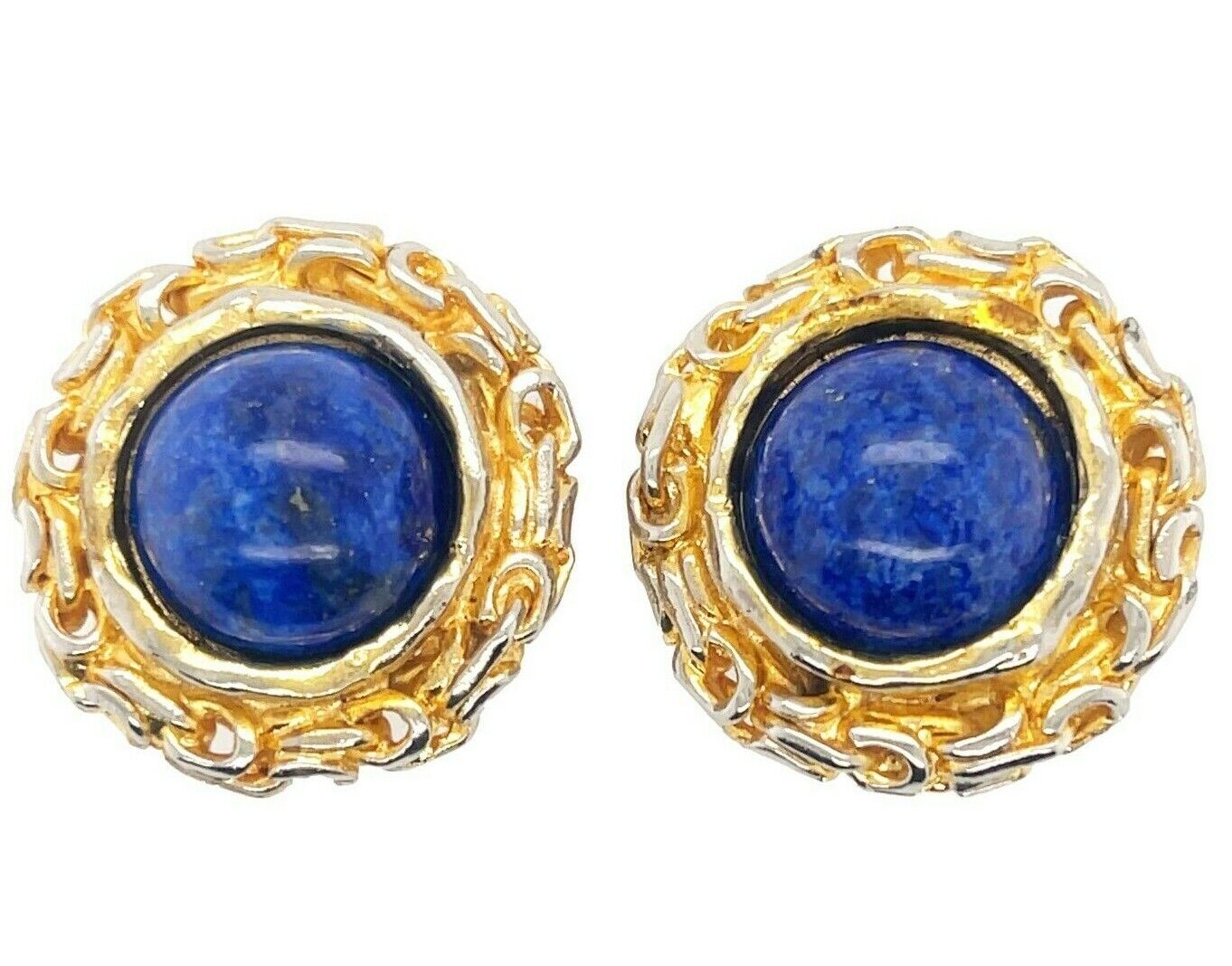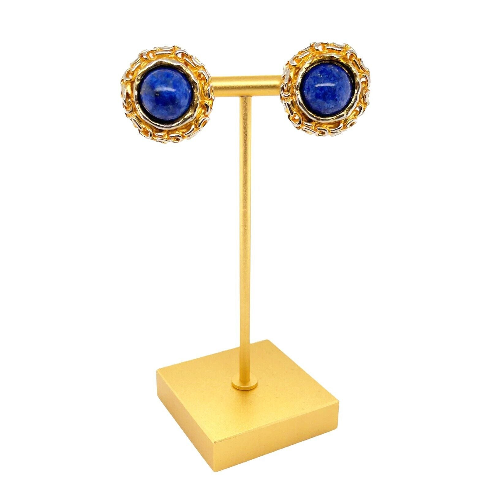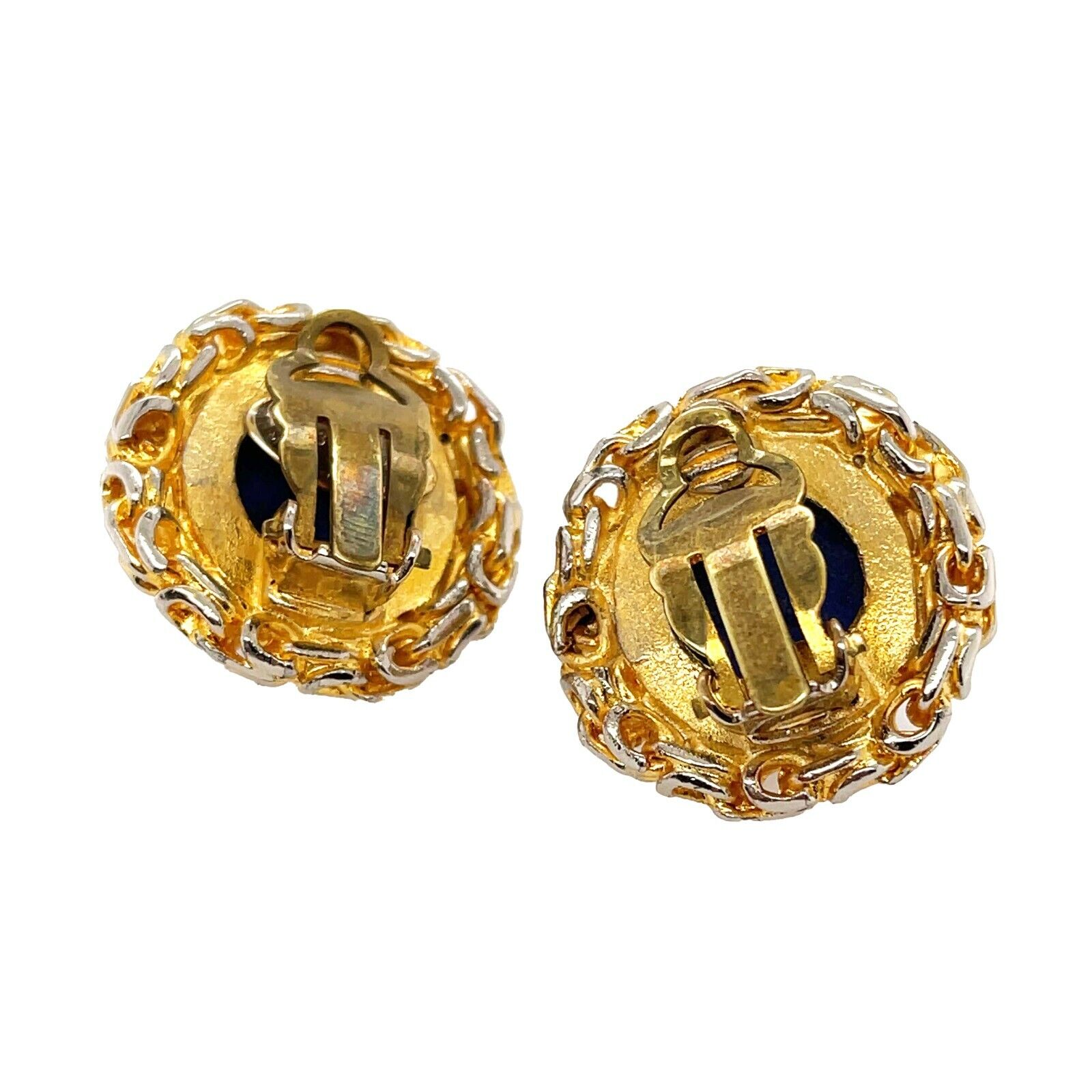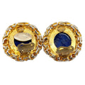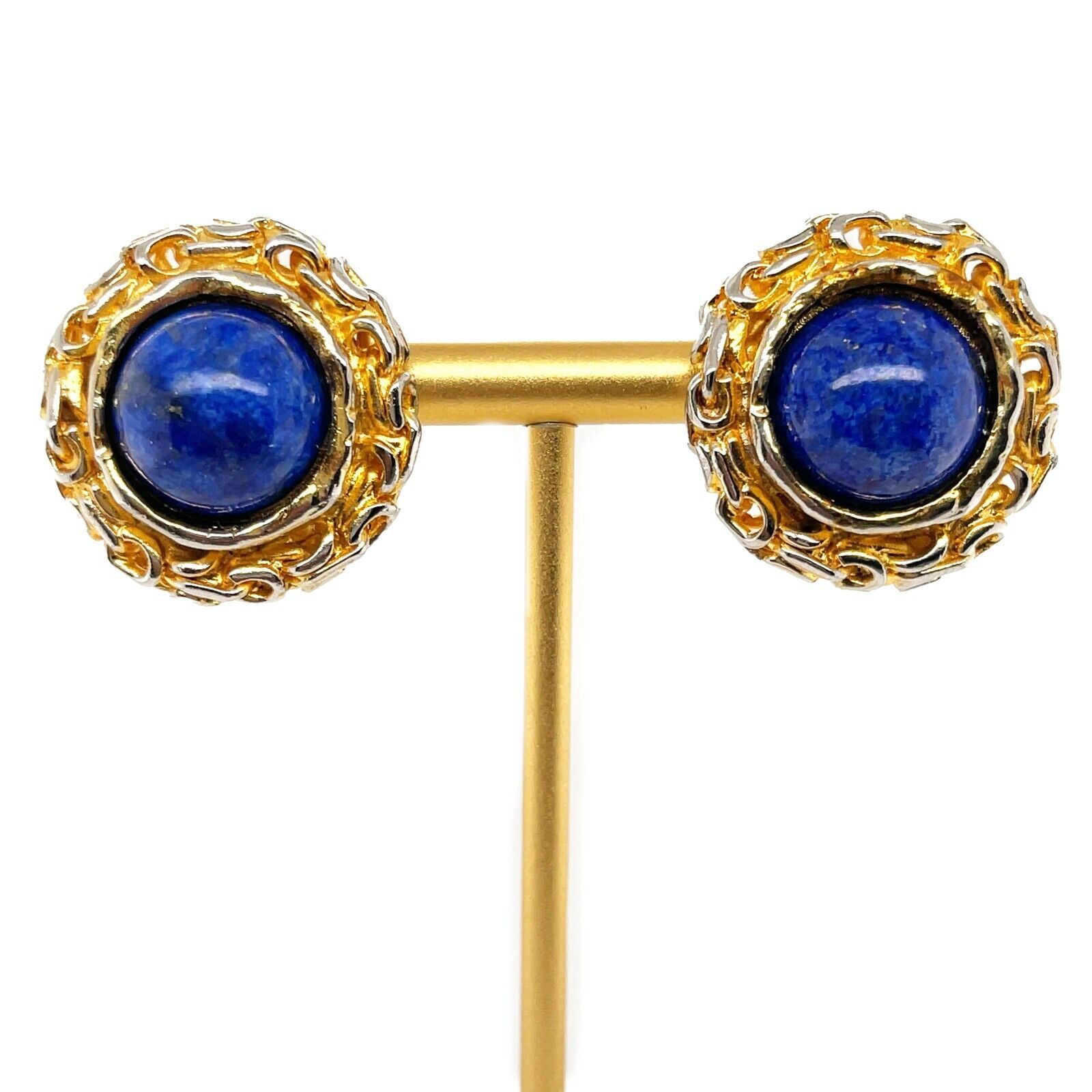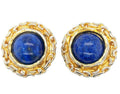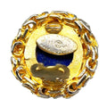 CHANEL - 93A Woven Chain Lapis Lazuli Cabochon Button Earrings Gold / Blue