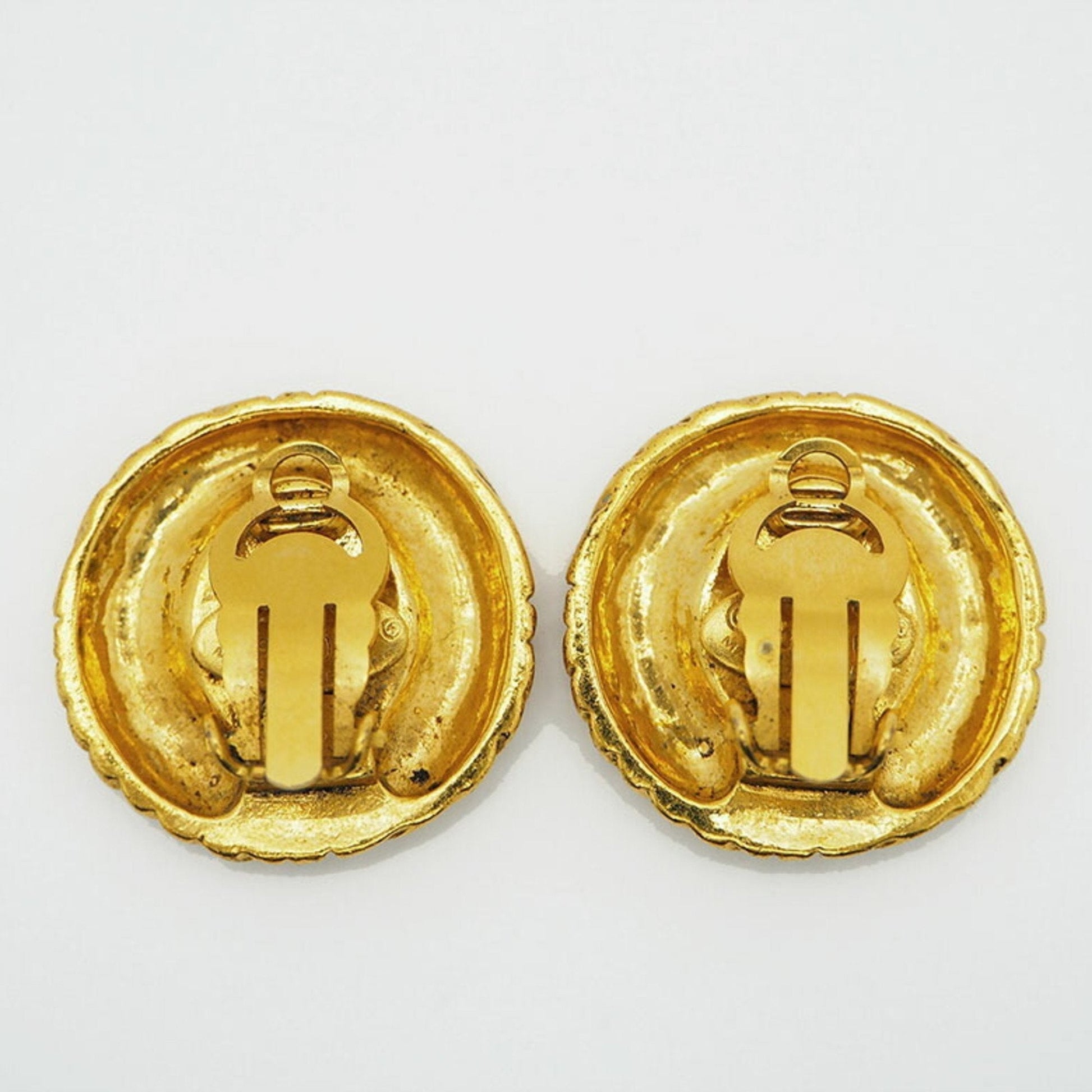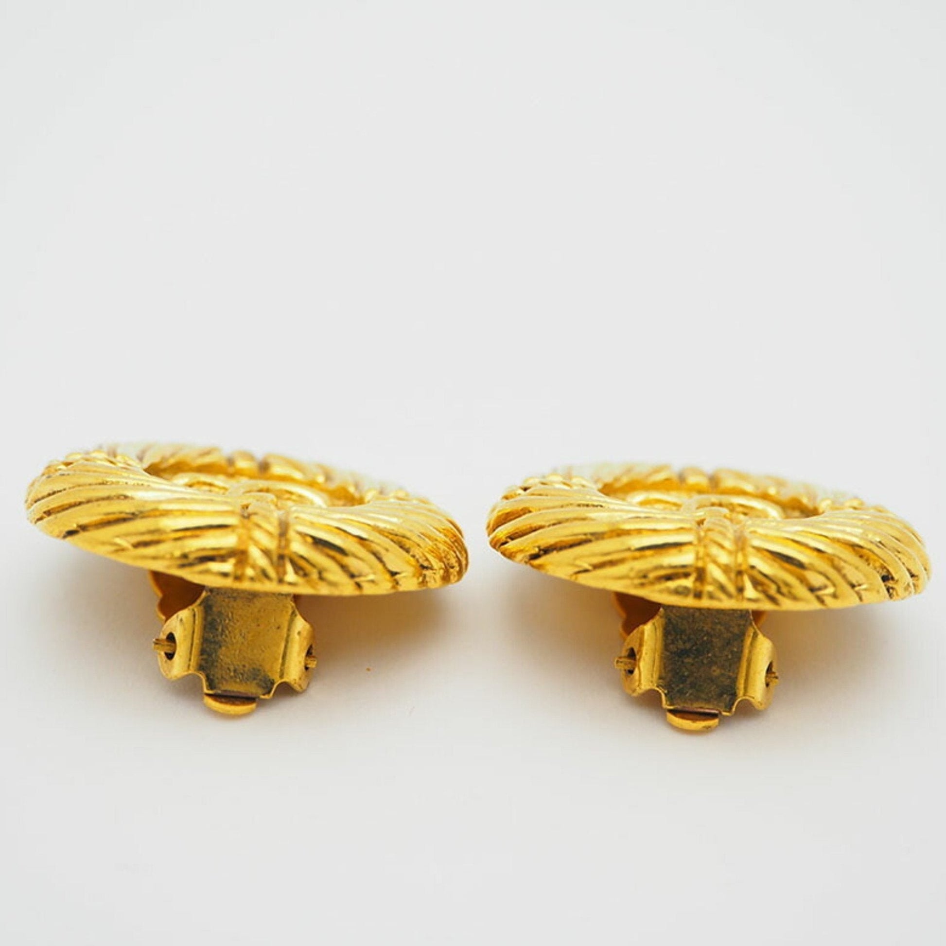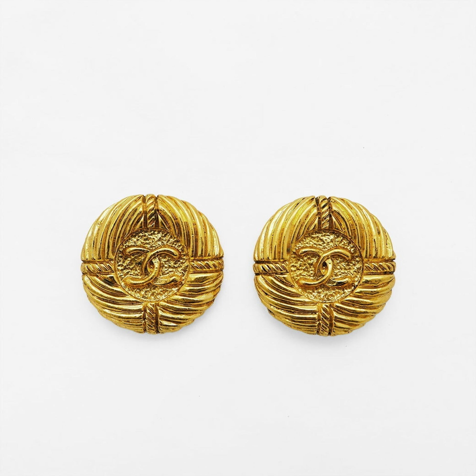 CHANEL 93P Round Coco Earrings Gold Rope Pattern