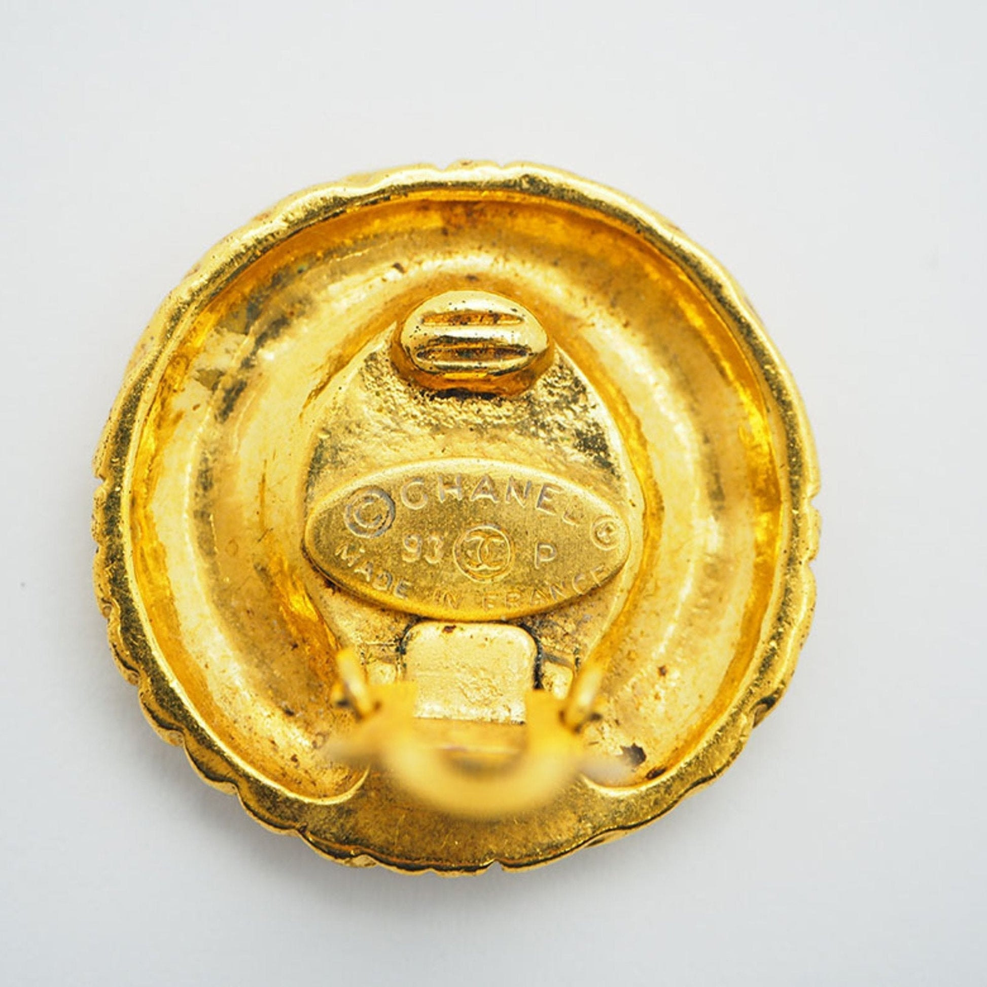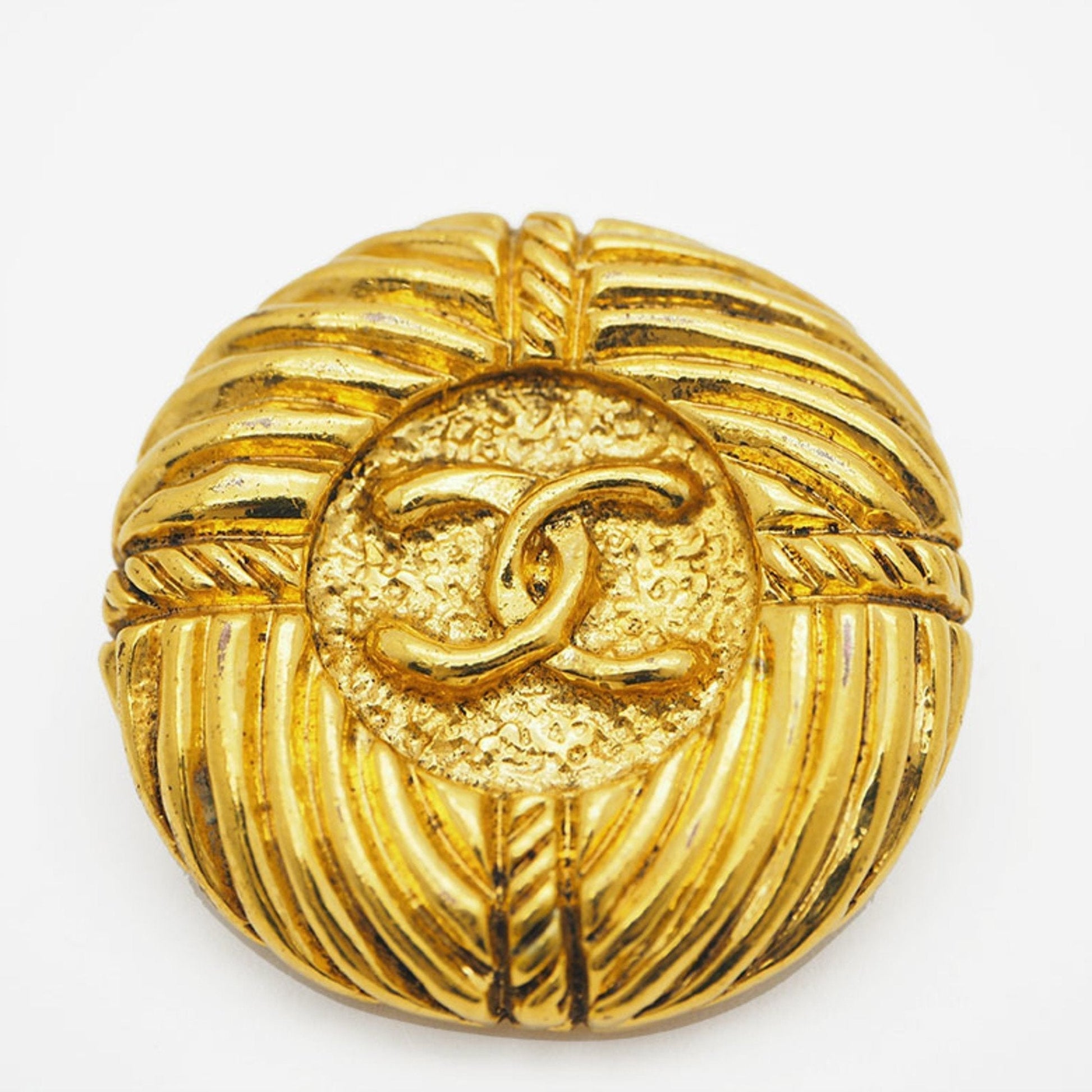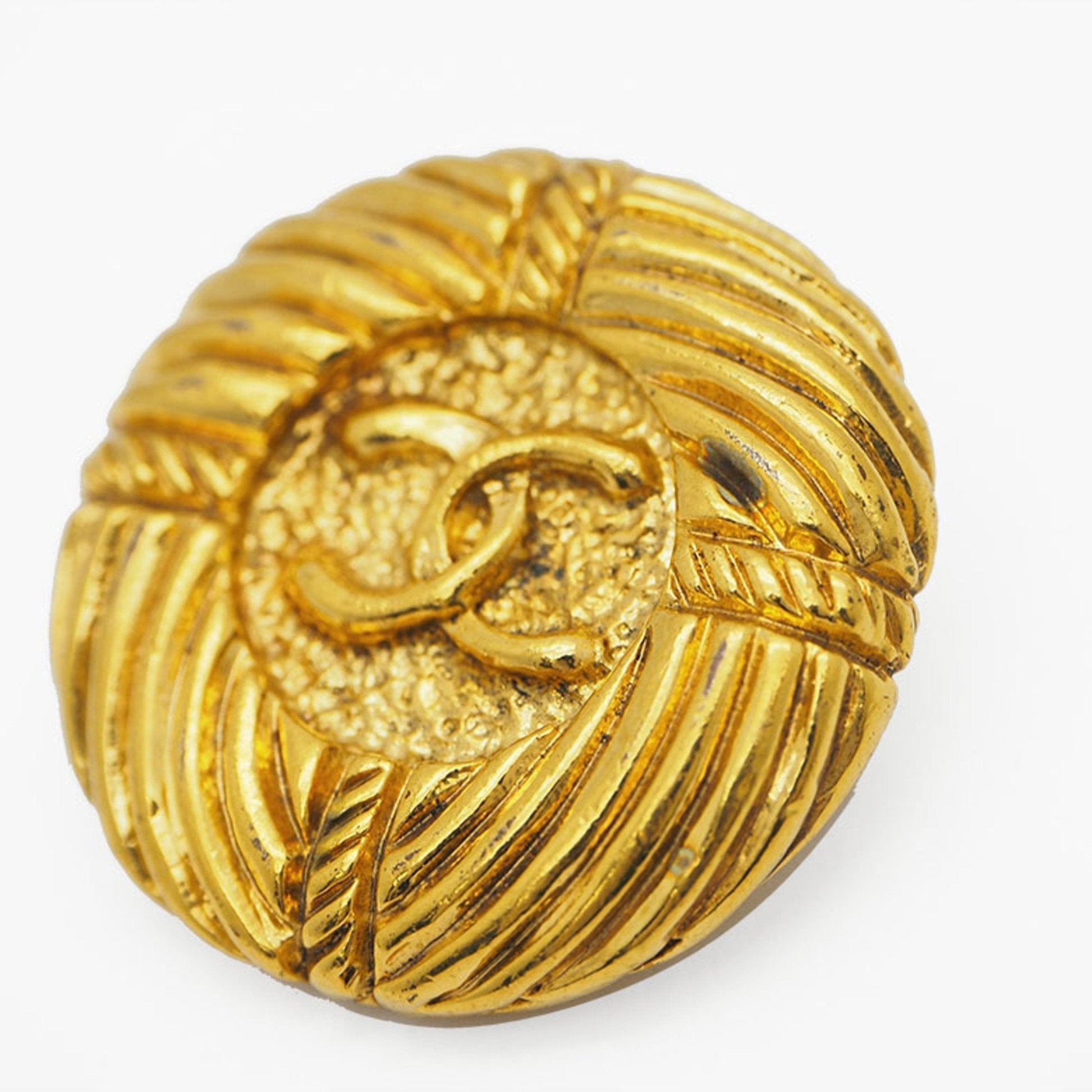 CHANEL 93P Round Coco Earrings Gold Rope Pattern
