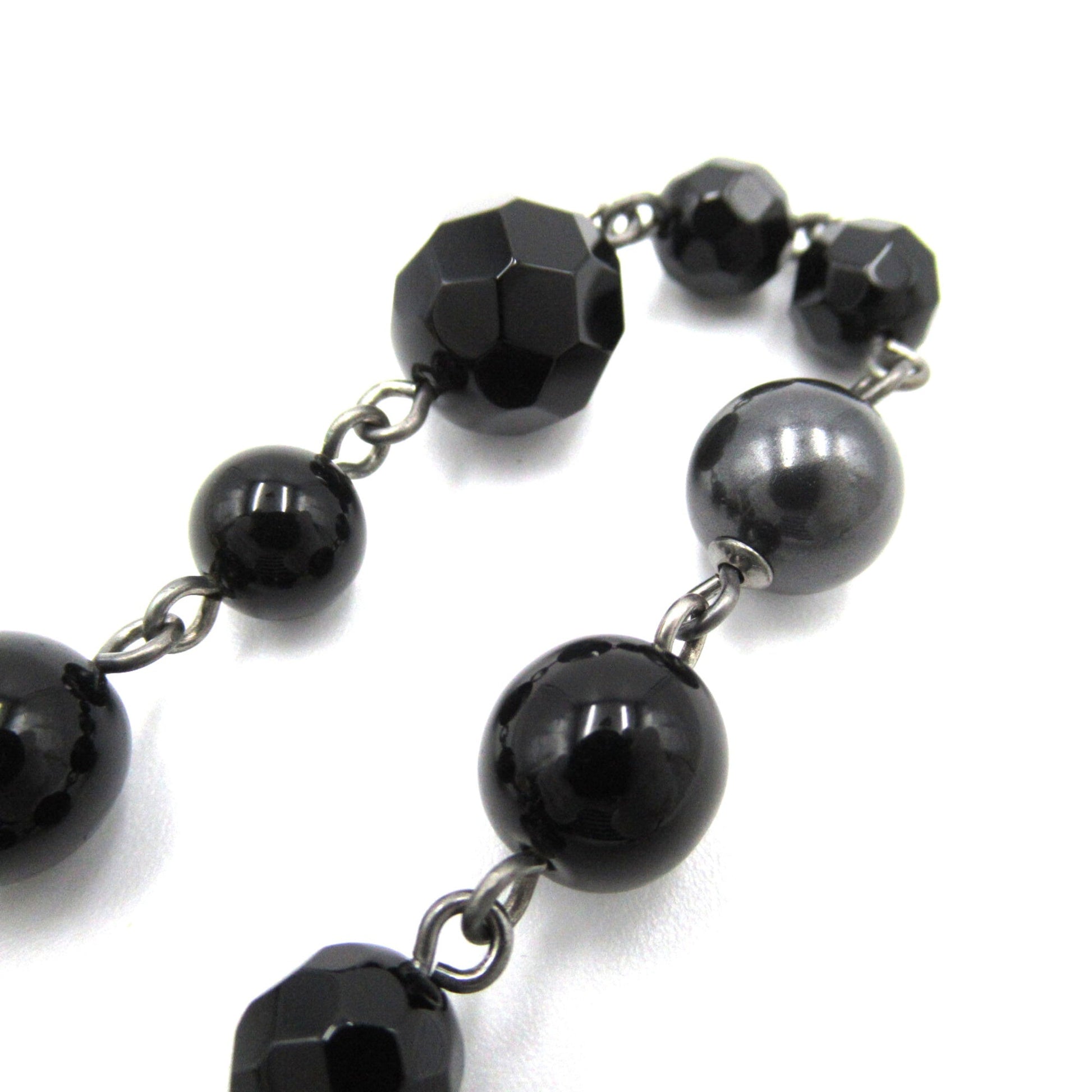 CHANEL A11V Bracelet Black Silver Plastic plating