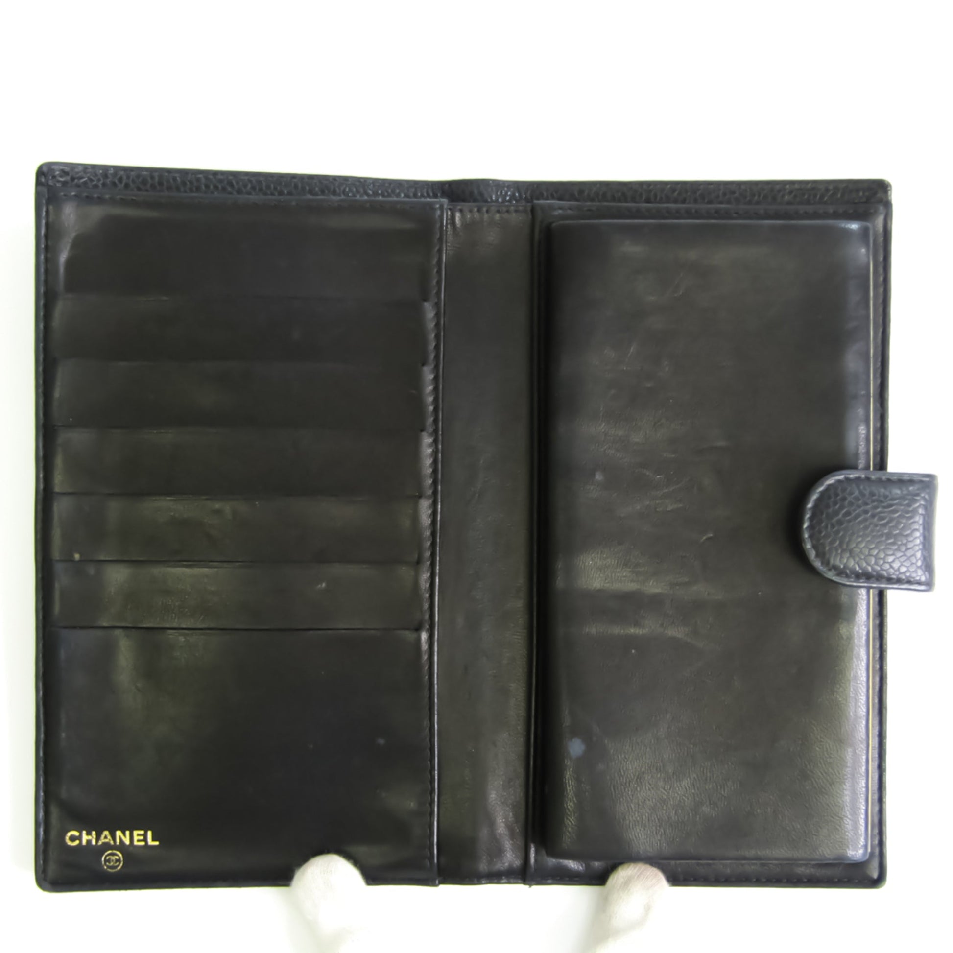 Chanel A13498 Women's Caviar Leather Long Wallet (bi-fold) Black