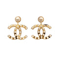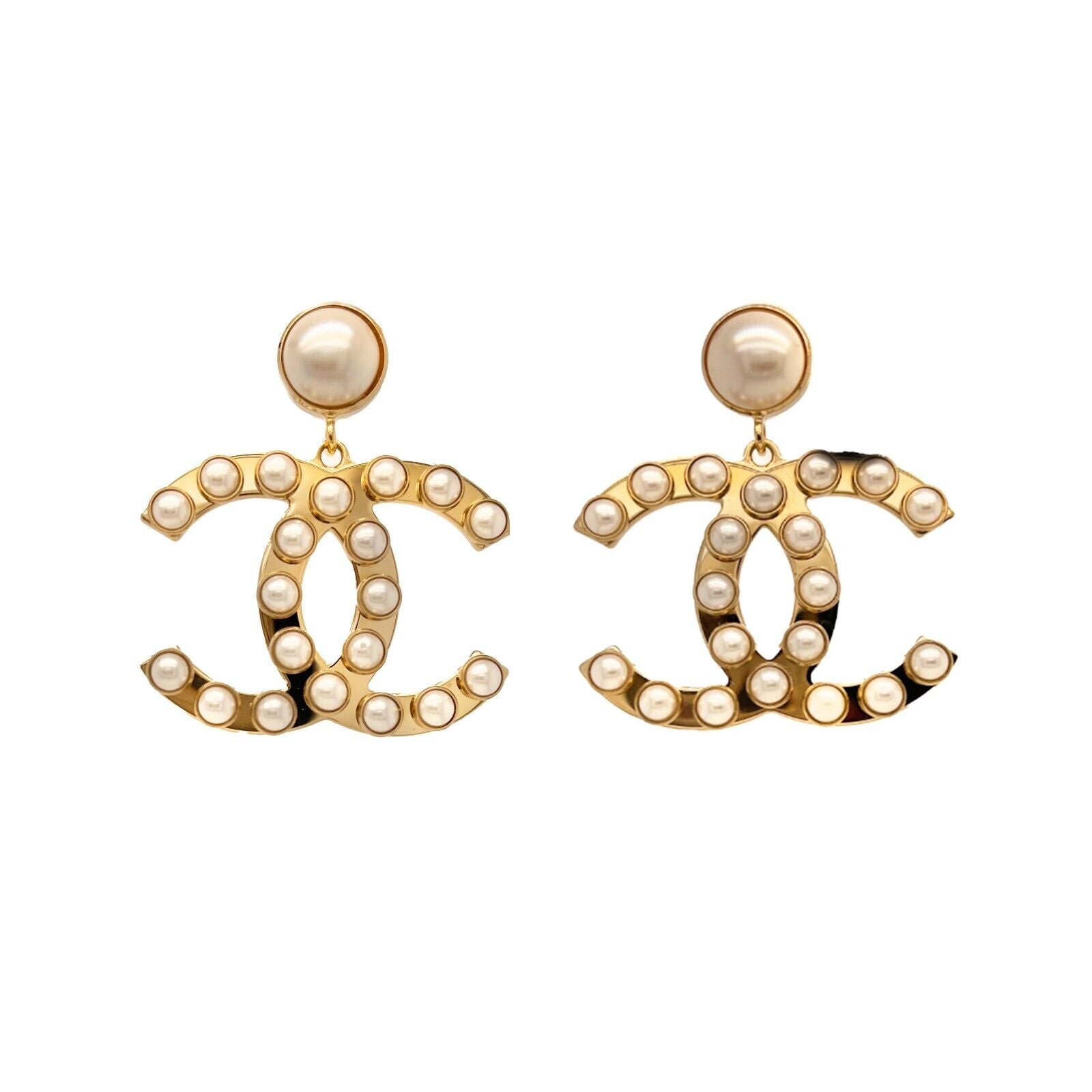* These CC logo dangle drop faux pearl studded earrings in gold tone are a statement that offers so much style versatility!