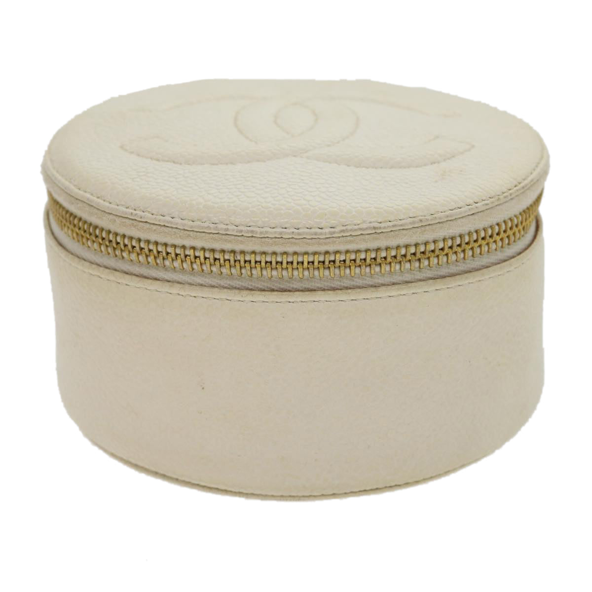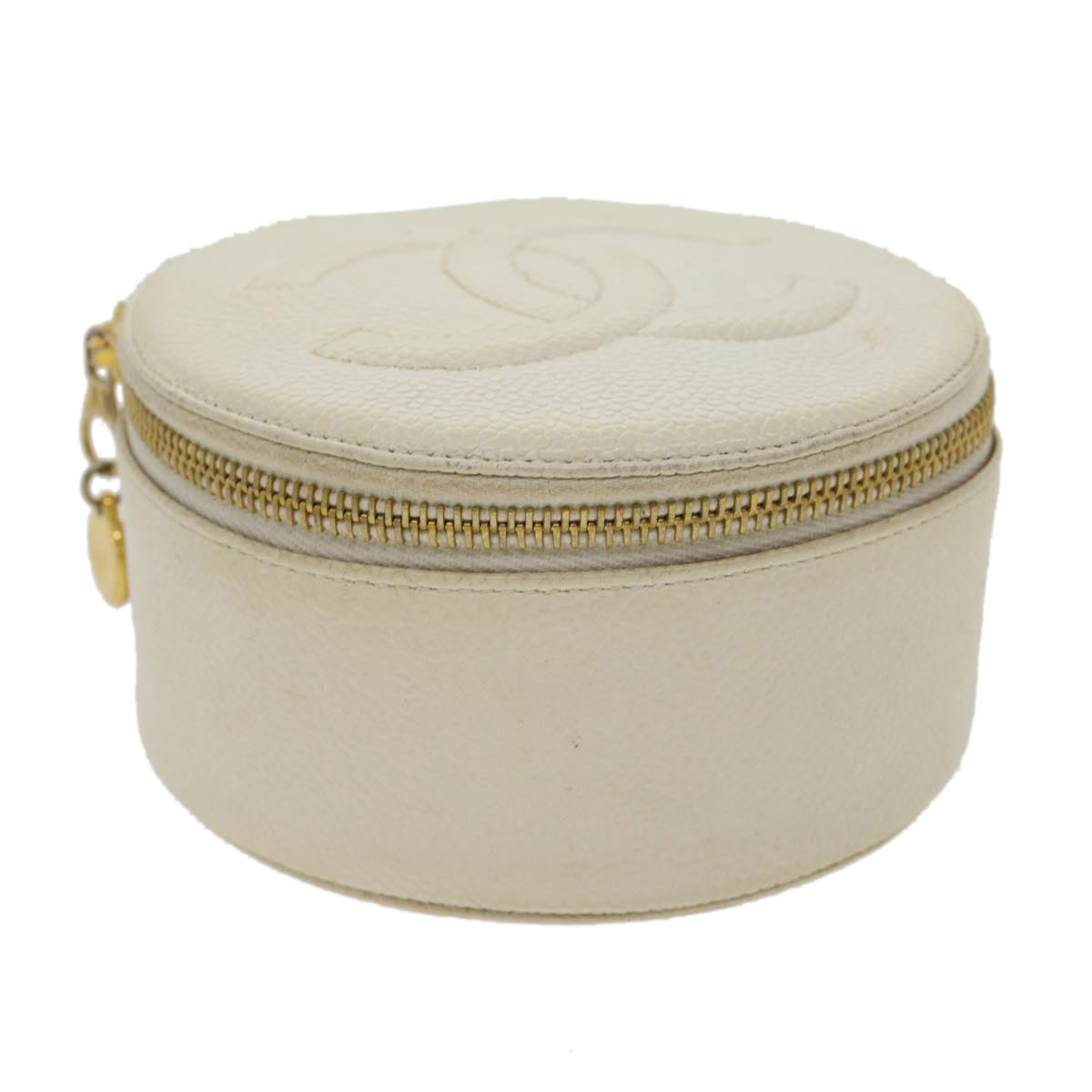CHANEL Accessory Case Caviar Skin White CC am2700gA