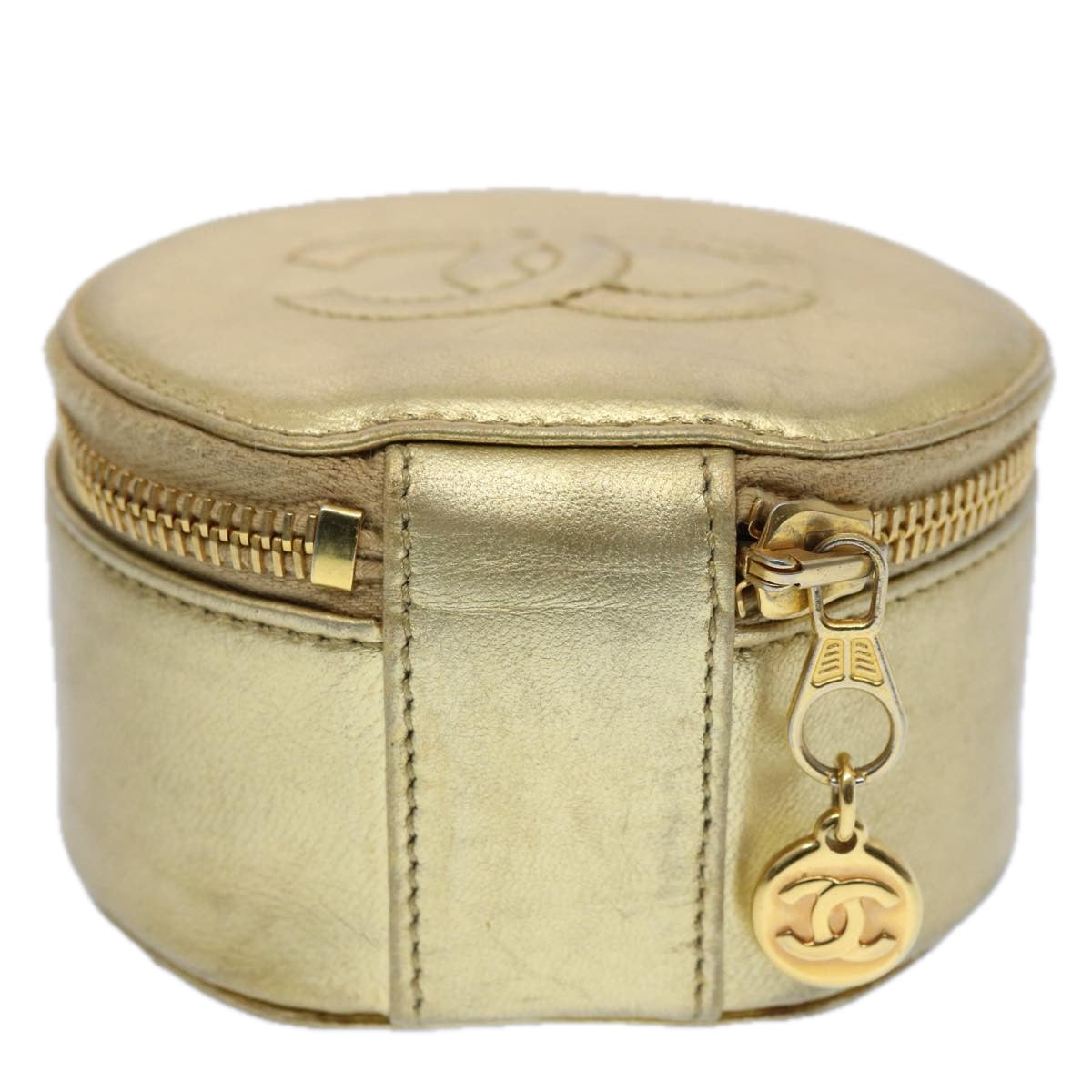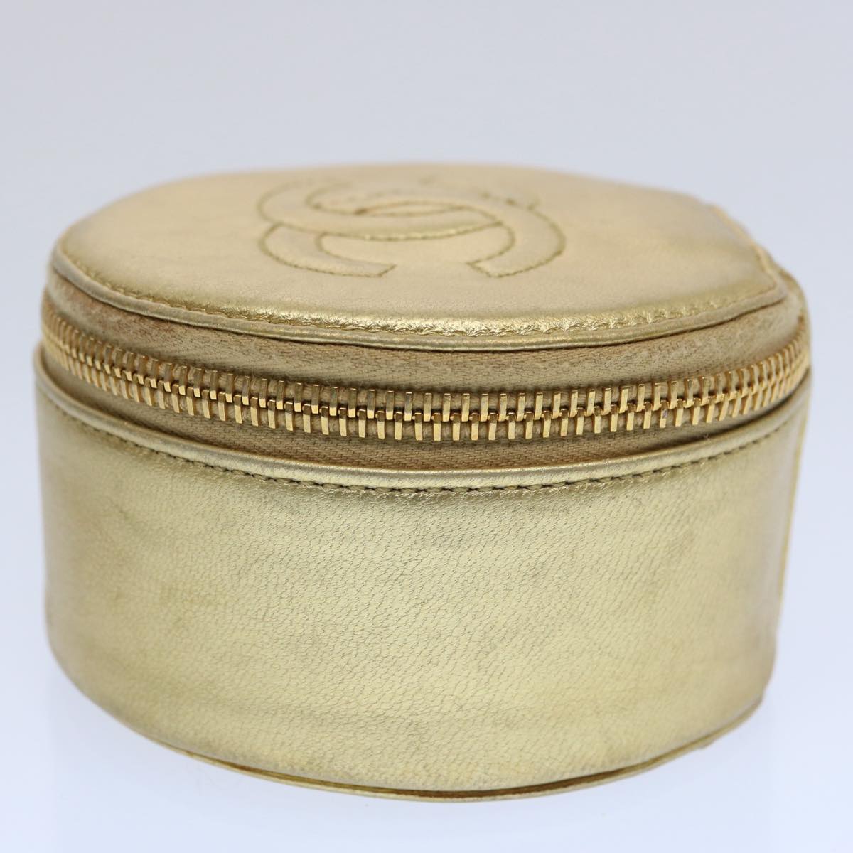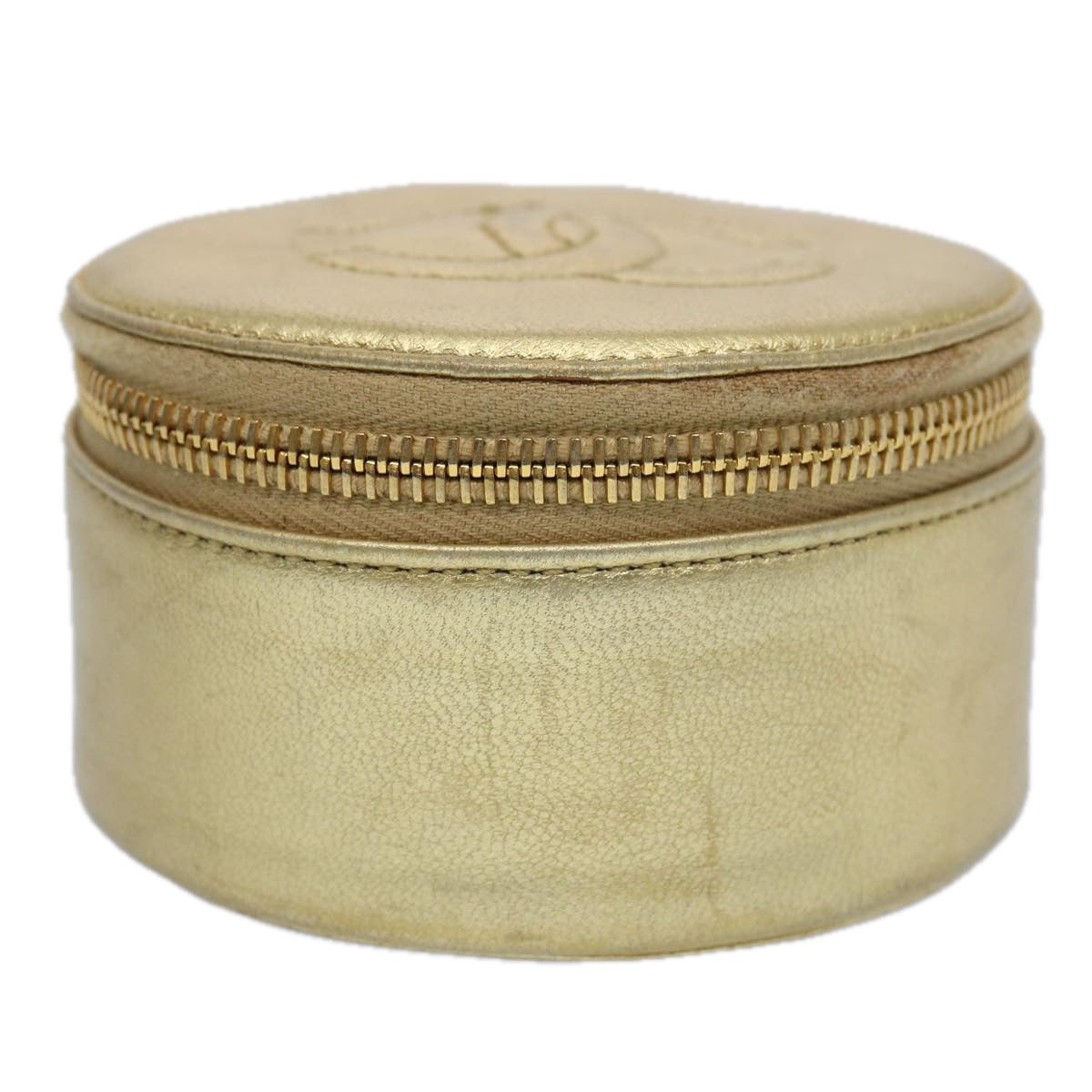 CHANEL Accessory Case Lamb Skin Gold CC Auth bs10787