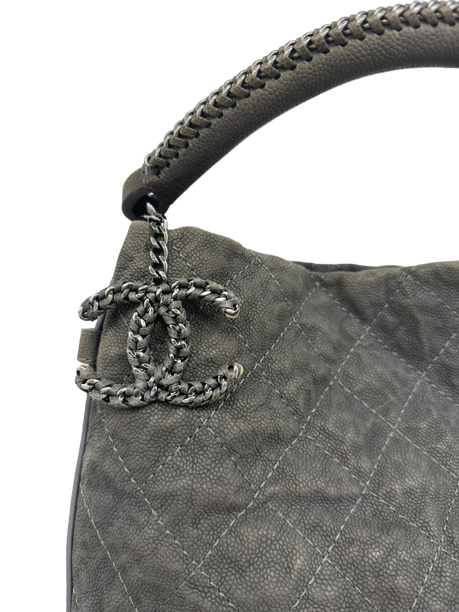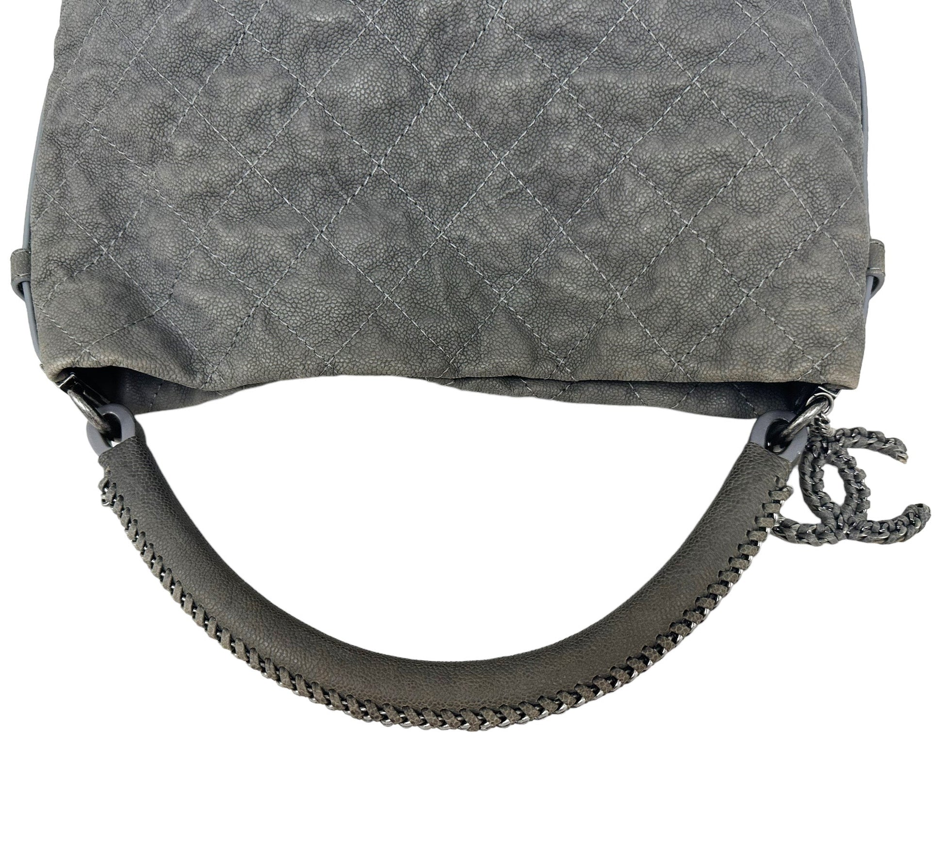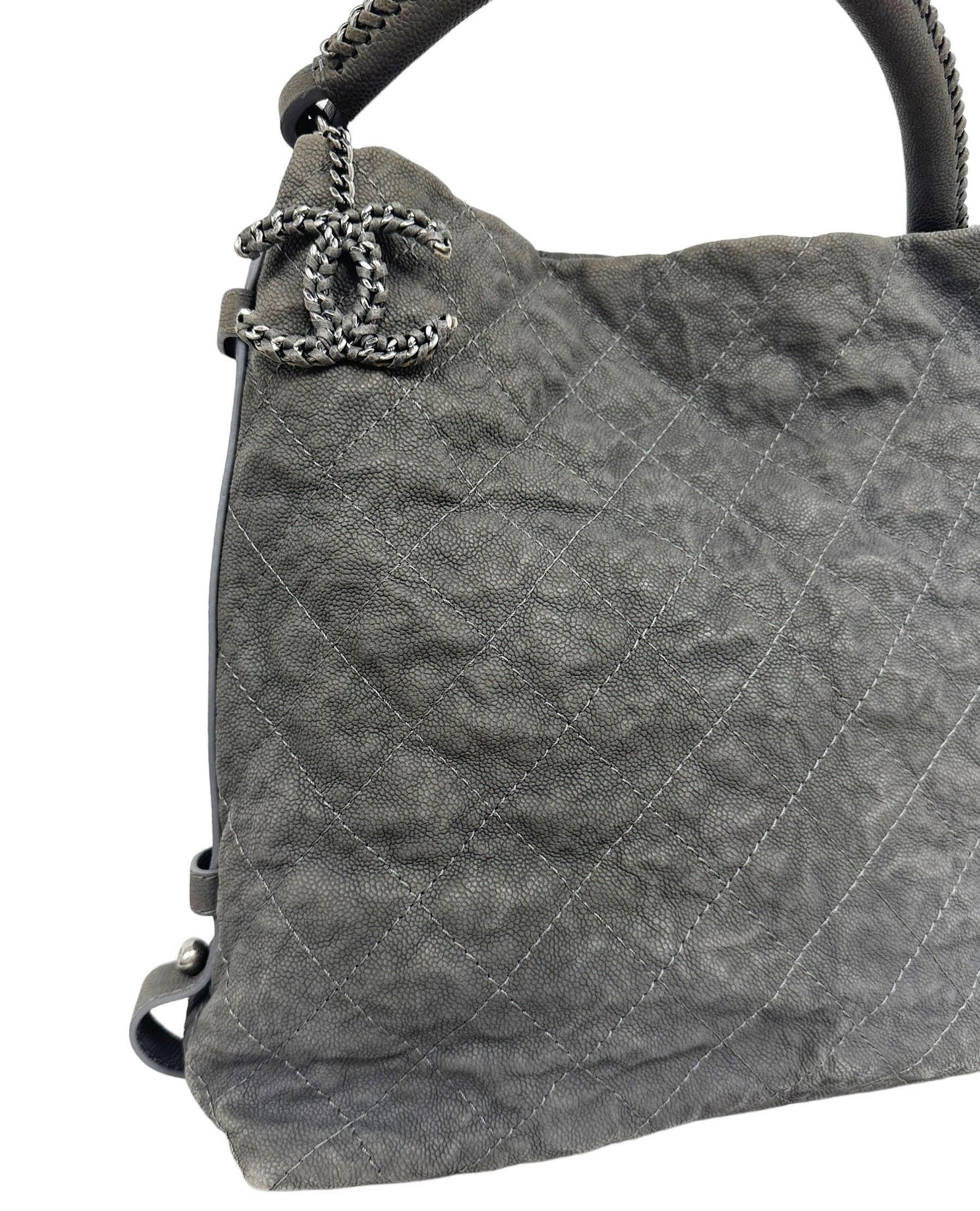 Chanel Aged Caviar Leather Boy Hobo Quilted Shoulder Tote CC Charm