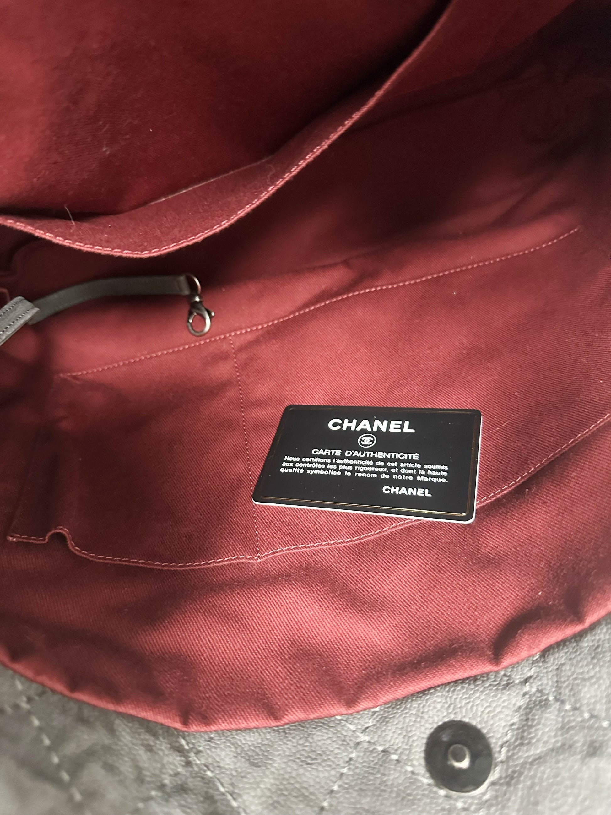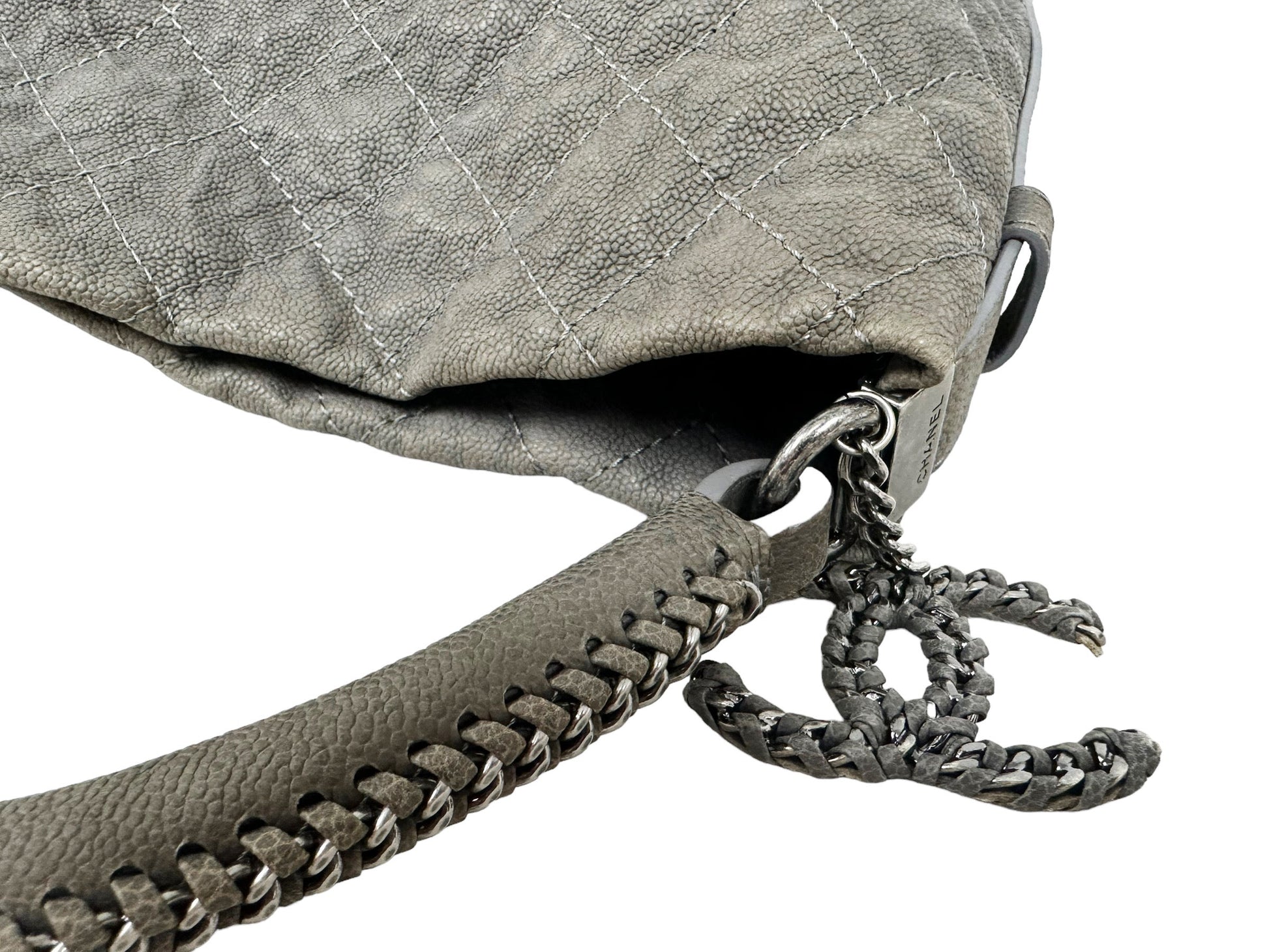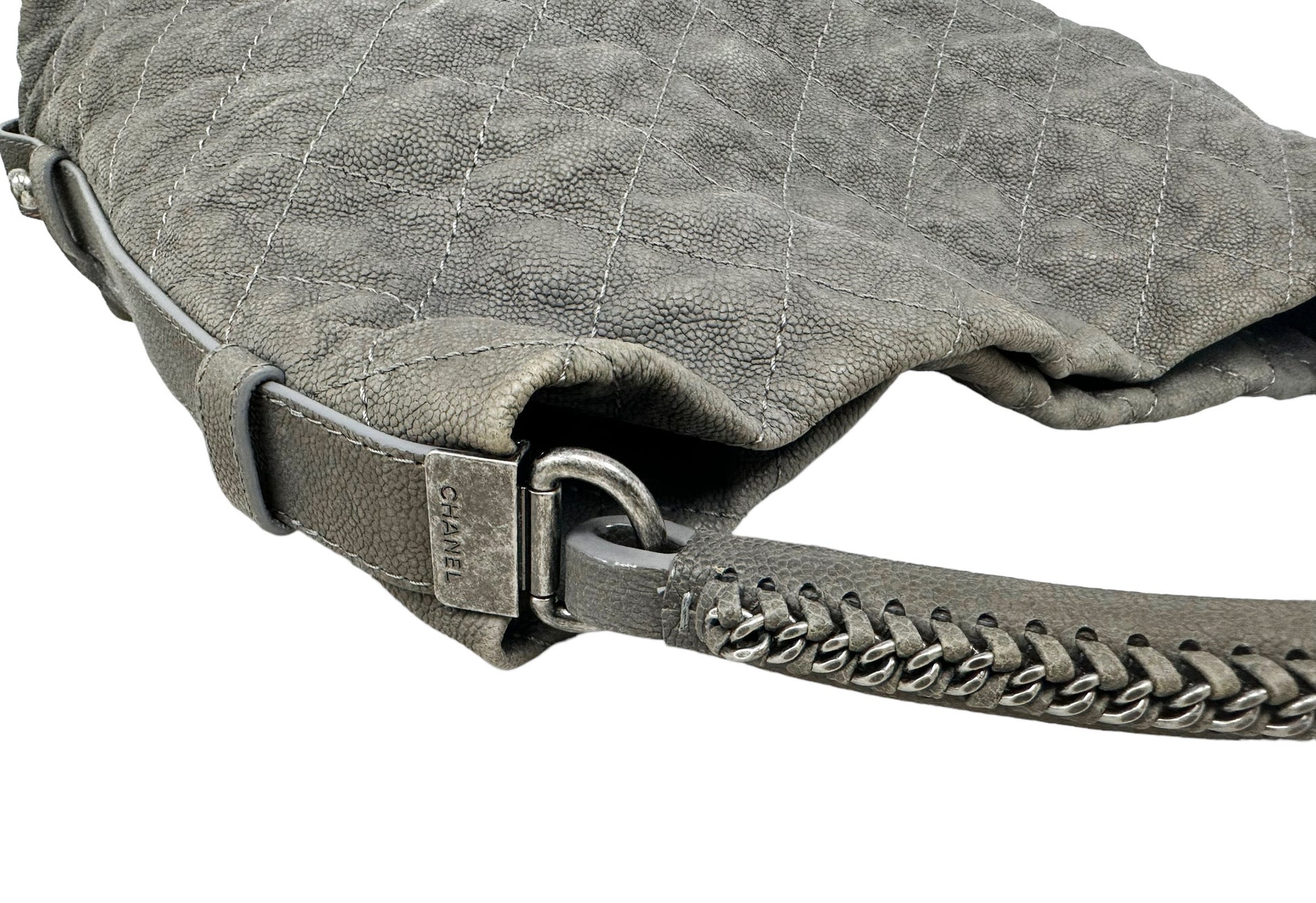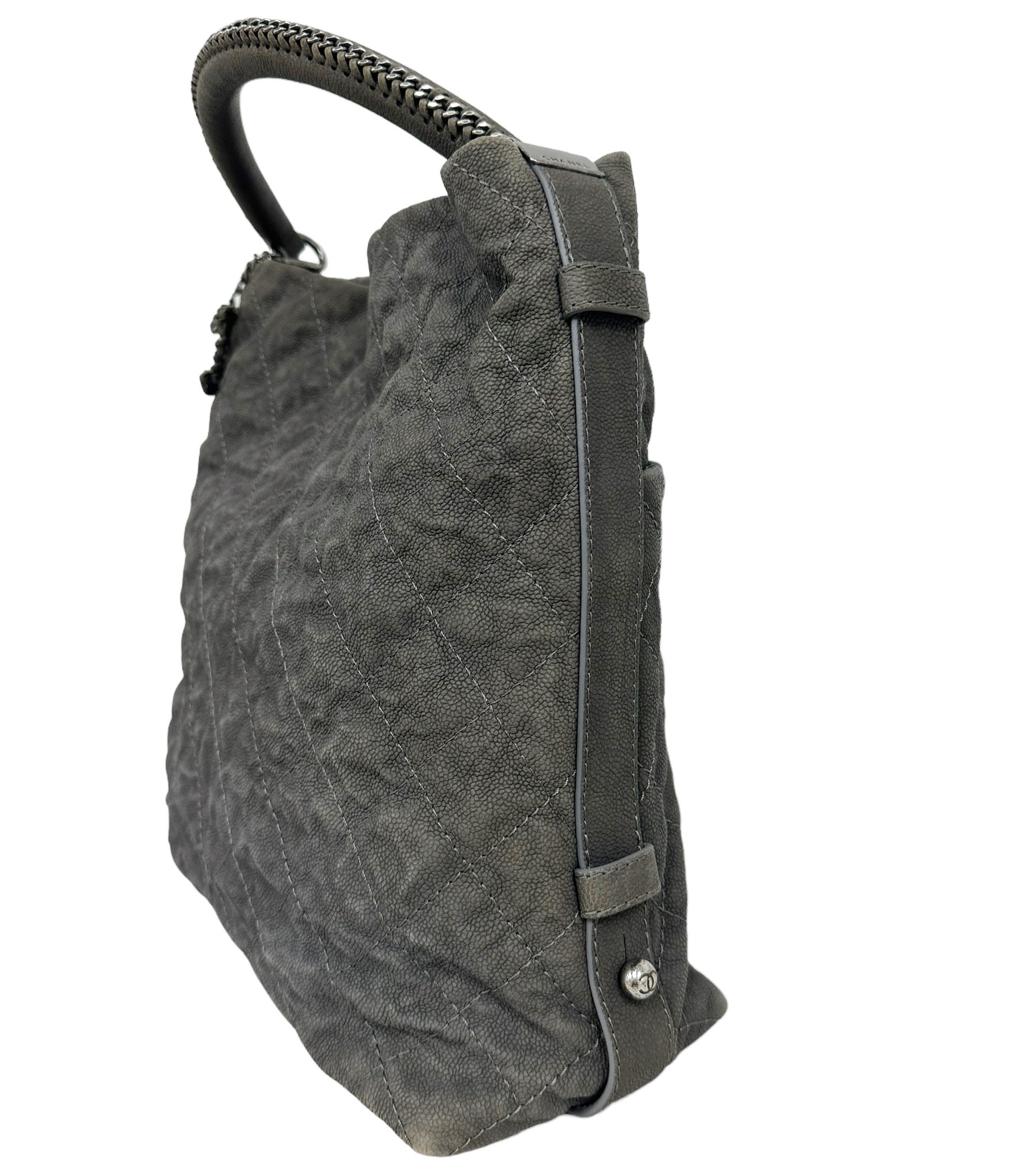 Chanel Aged Caviar Leather Boy Hobo Quilted Shoulder Tote CC Charm