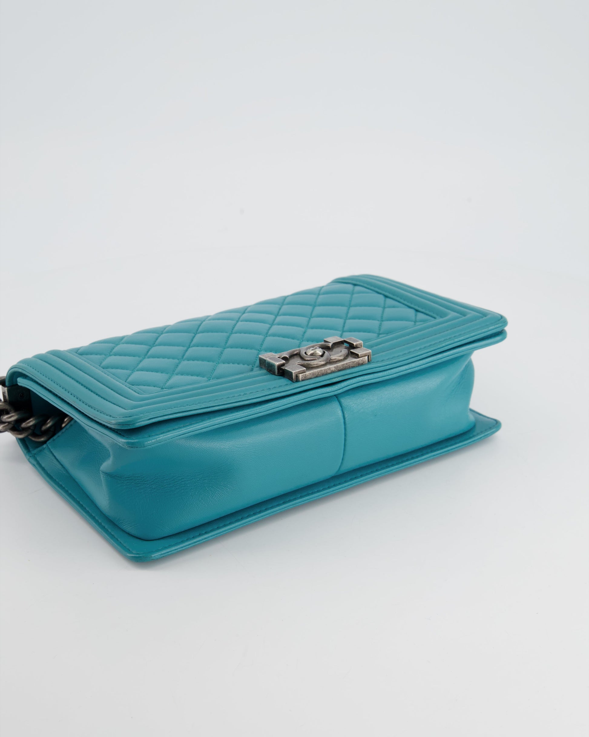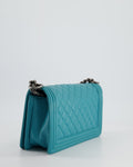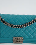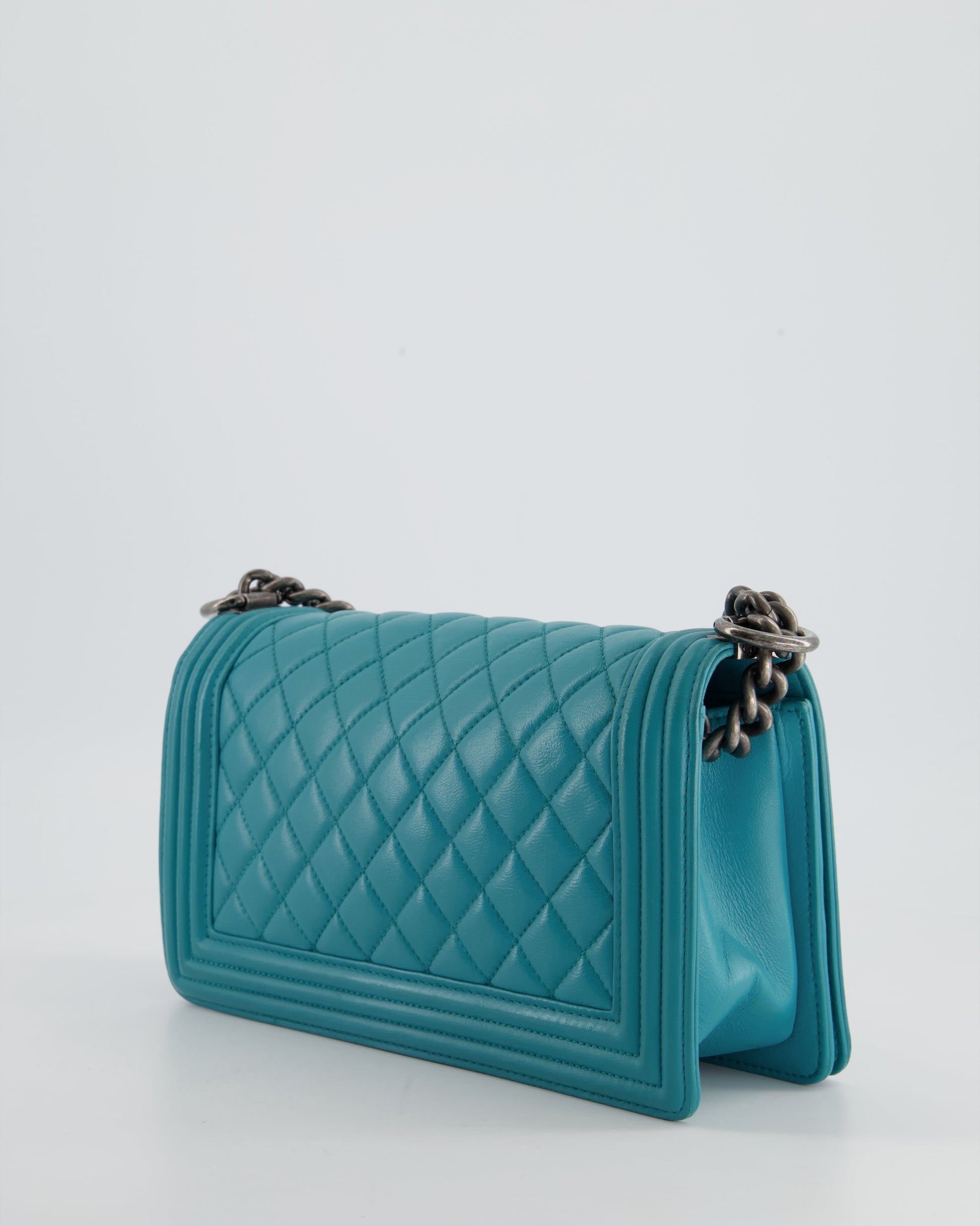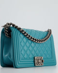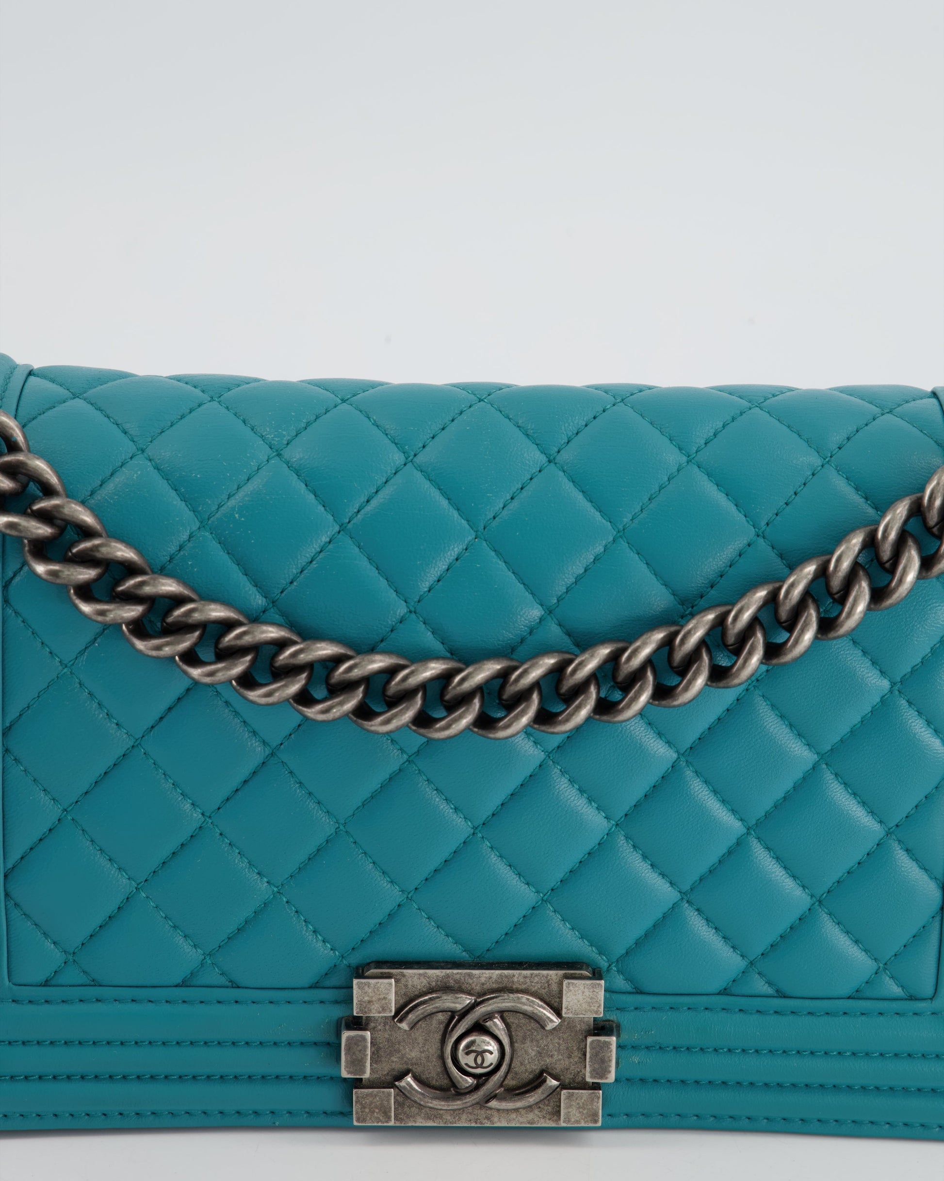 *FIR PRICE* Chanel Teal Blue Medium Boy Bag in Lambskin Leather with Ruthenium Hardware