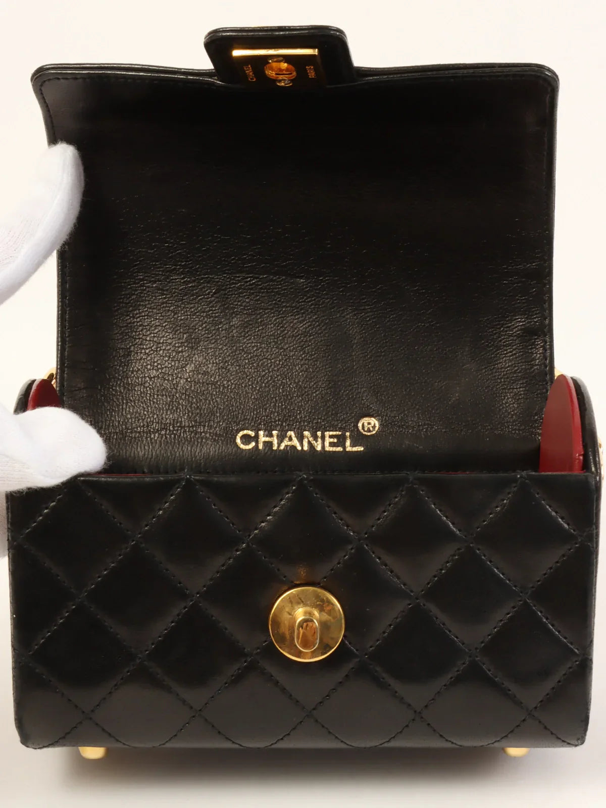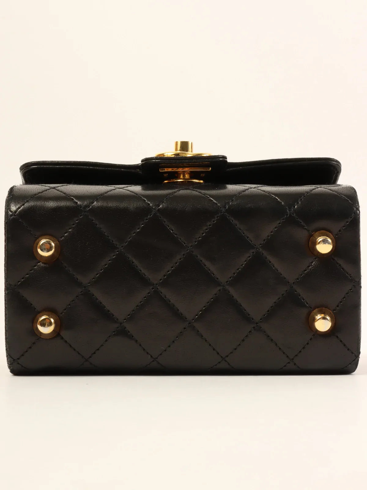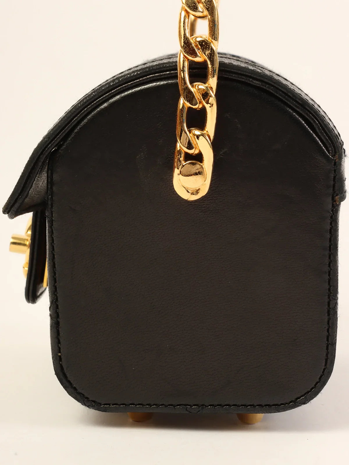 CHANEL Around 1985~1990 Made Turn-Lock Chain Handle Mini Bag Black