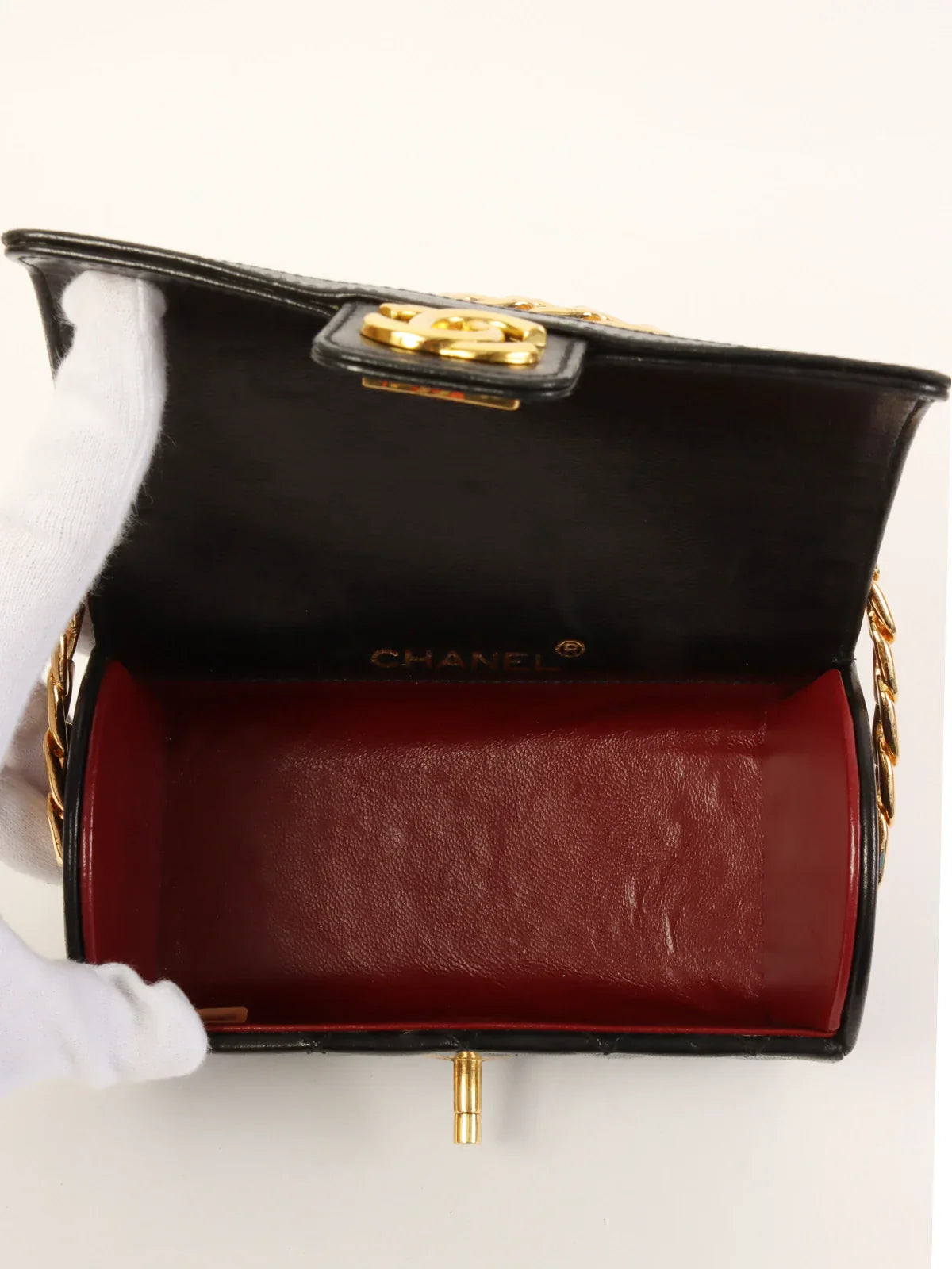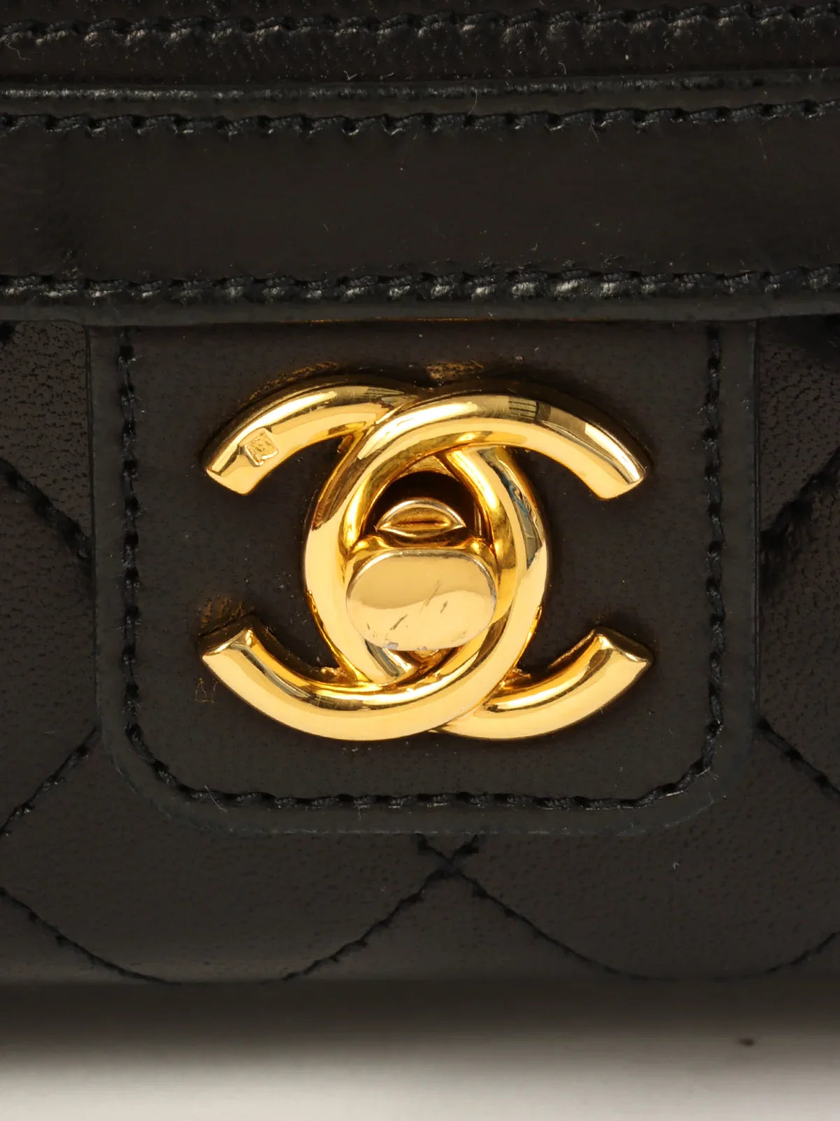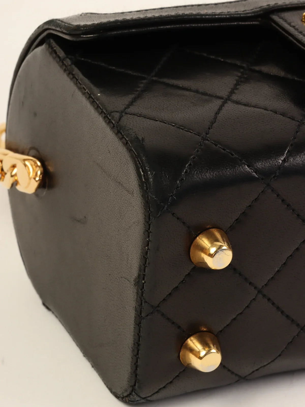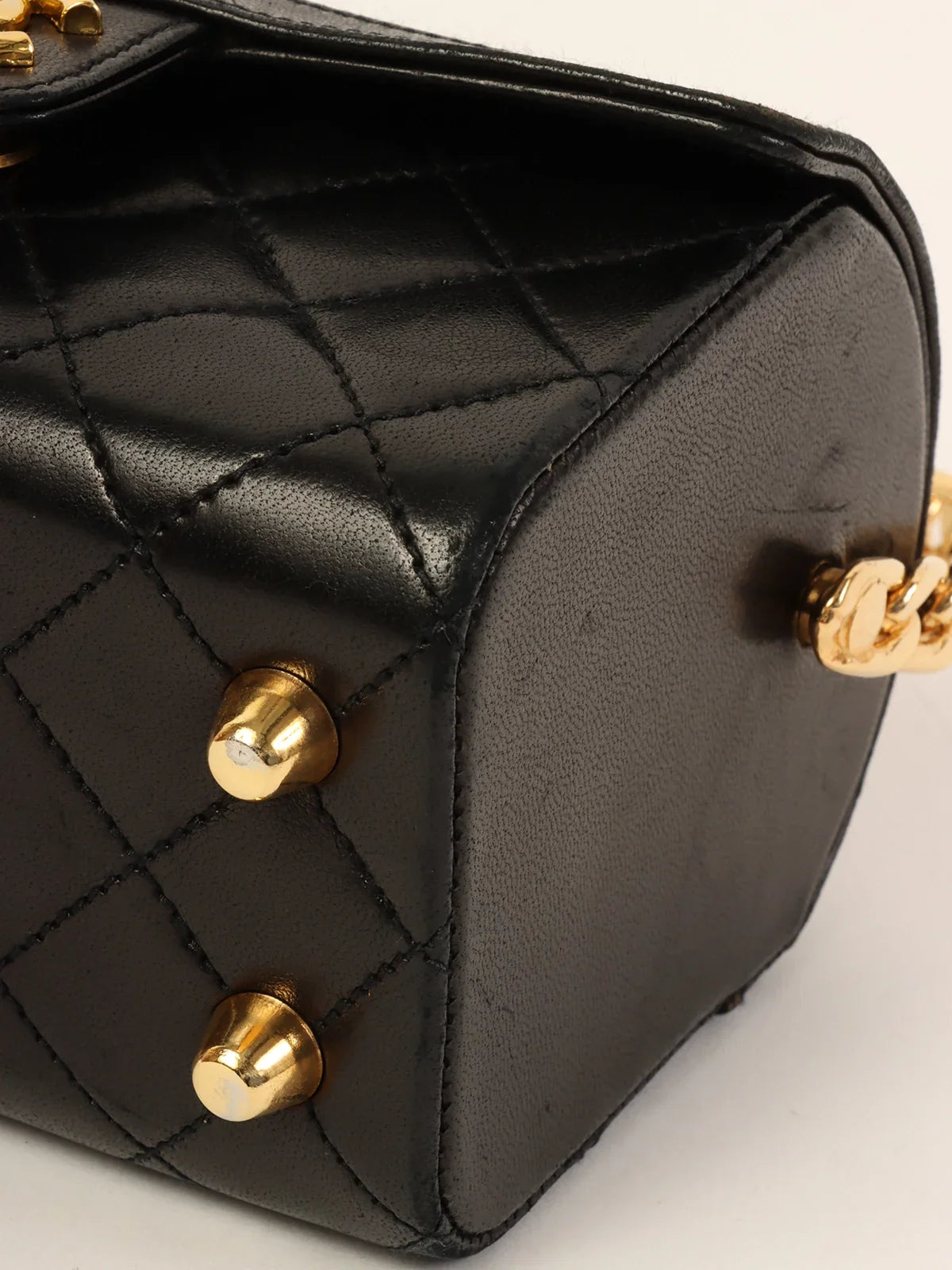 CHANEL Around 1985~1990 Made Turn-Lock Chain Handle Mini Bag Black