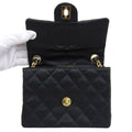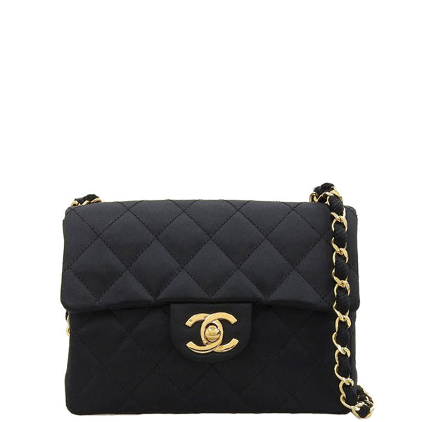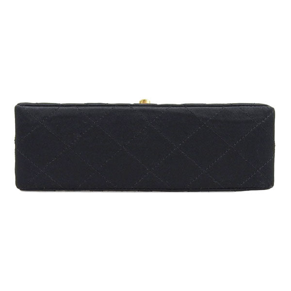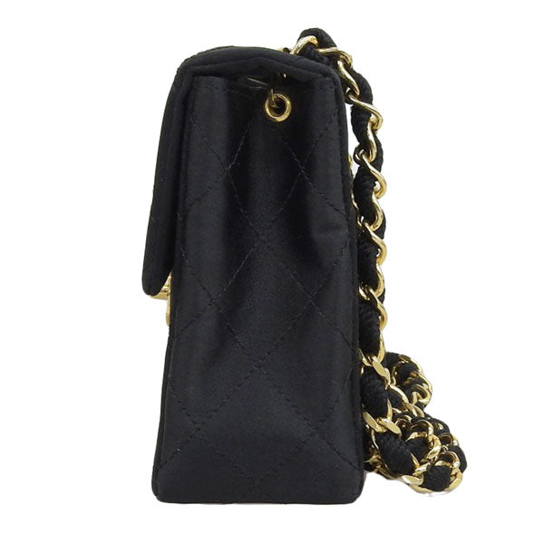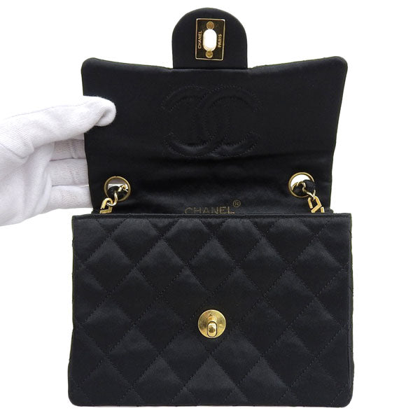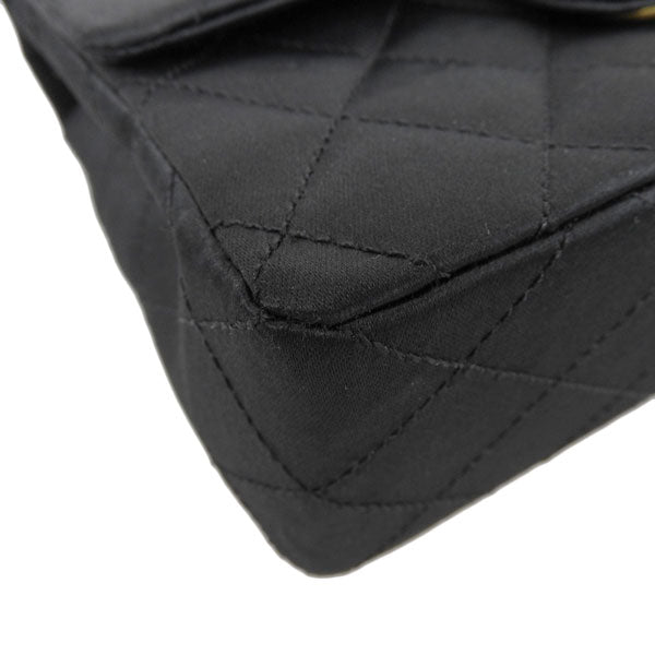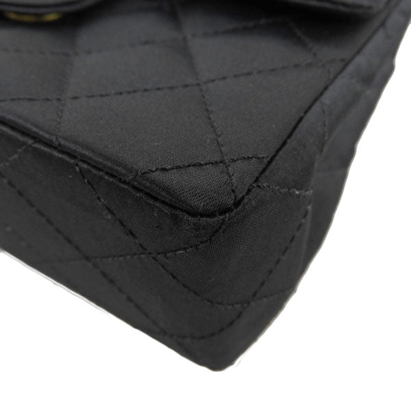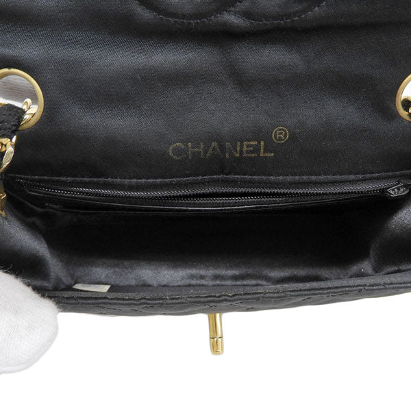 CHANEL Around 1985 Made Silk Satin Classic Flap Chain Bag Mini Black