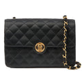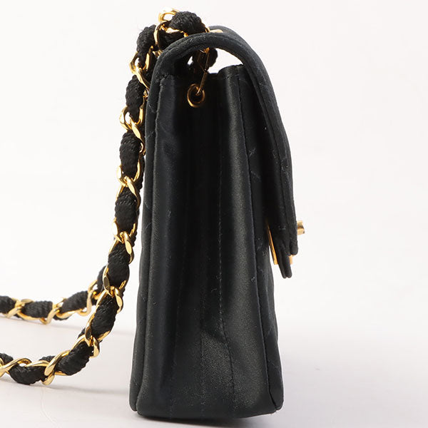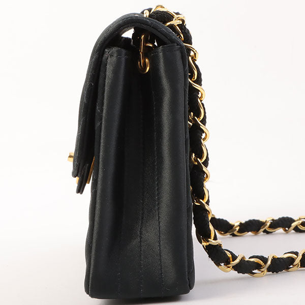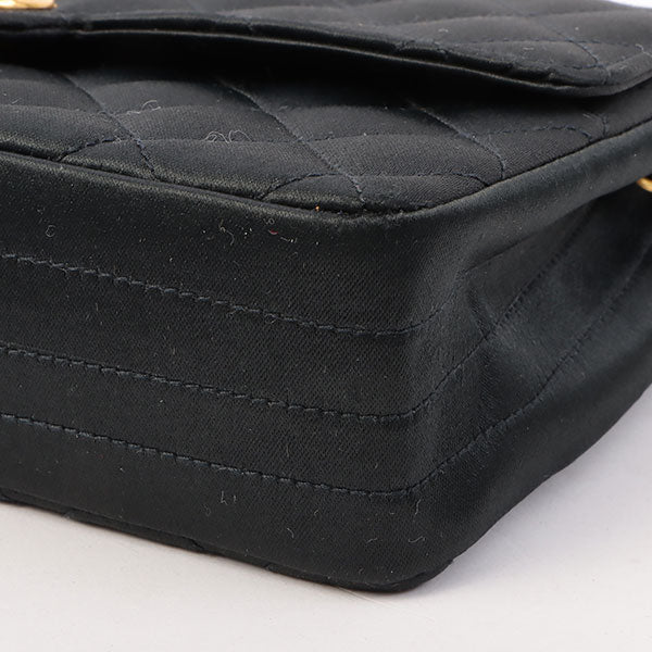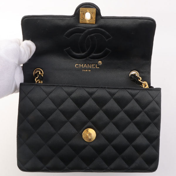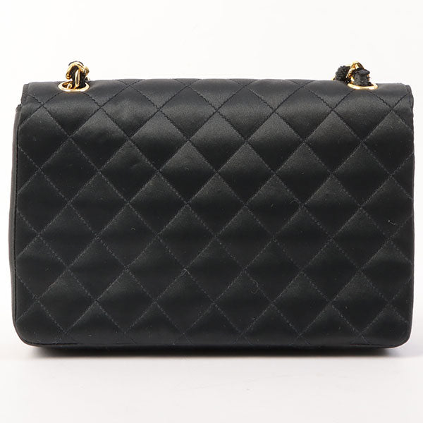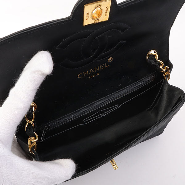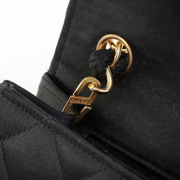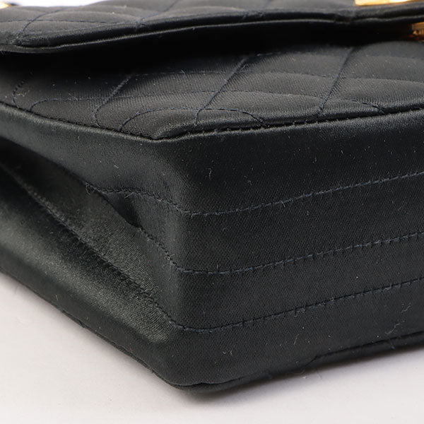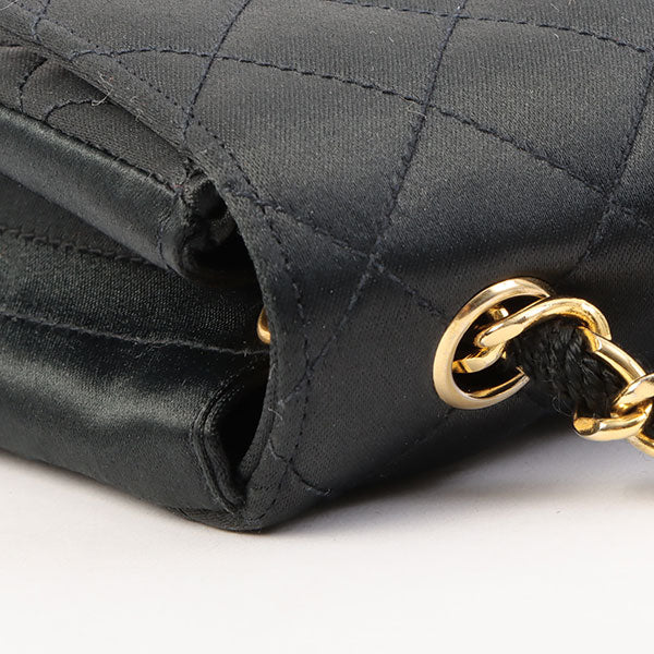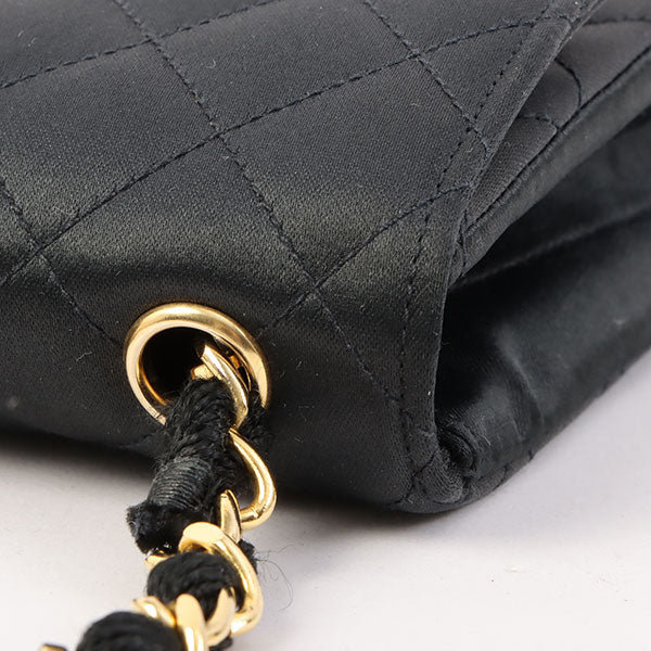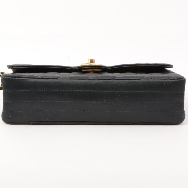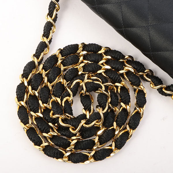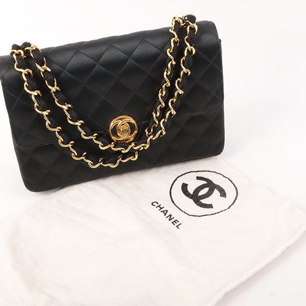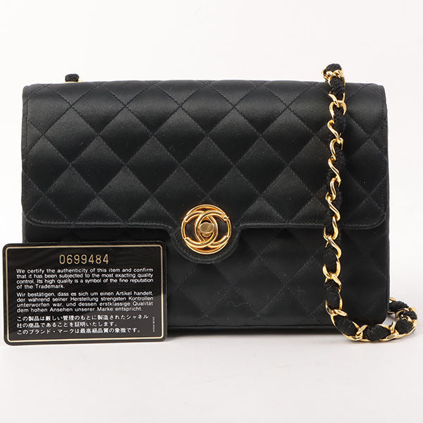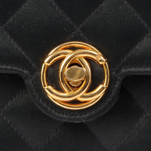 Chanel Around 1985???1990 Made Silk Satin Circle Turn-Lock Chain Bag Black