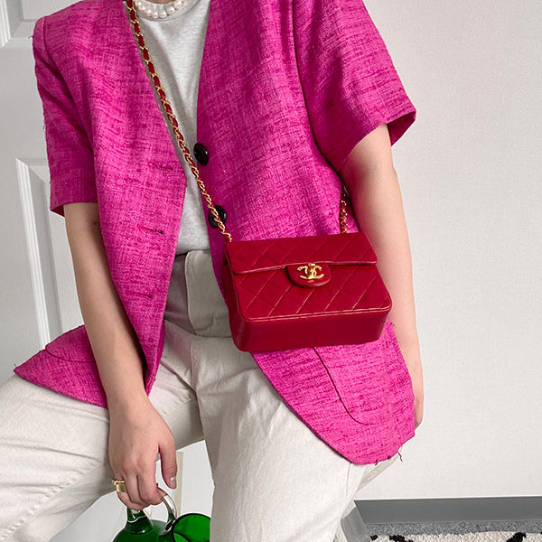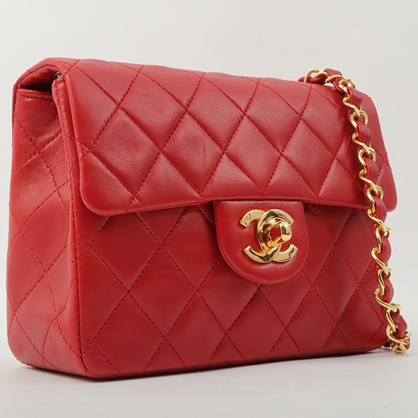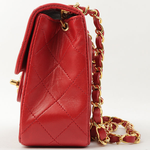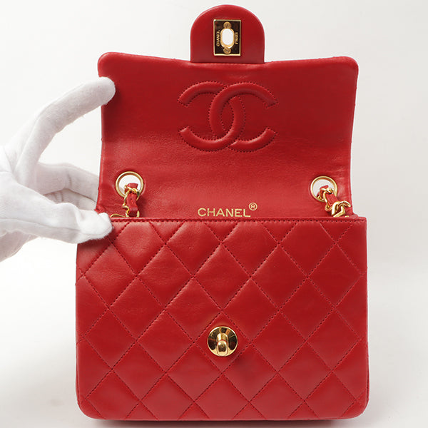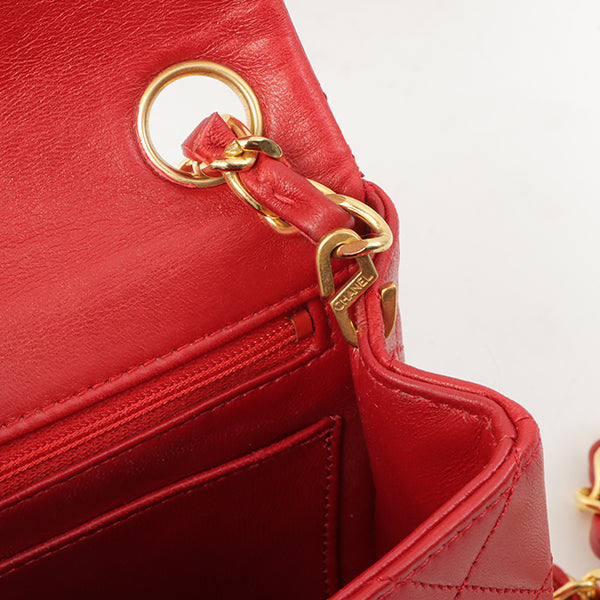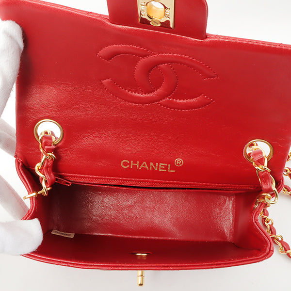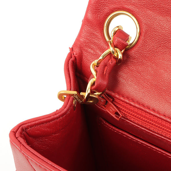 Chanel Around 1990 Made Classic Flap Chain Bag Mini Red