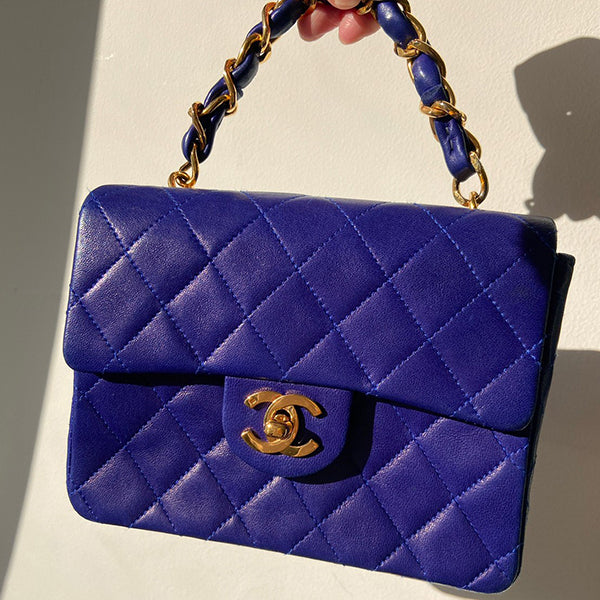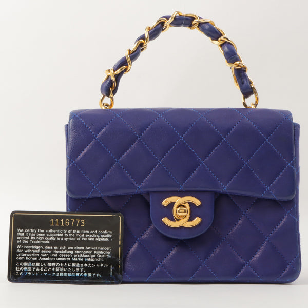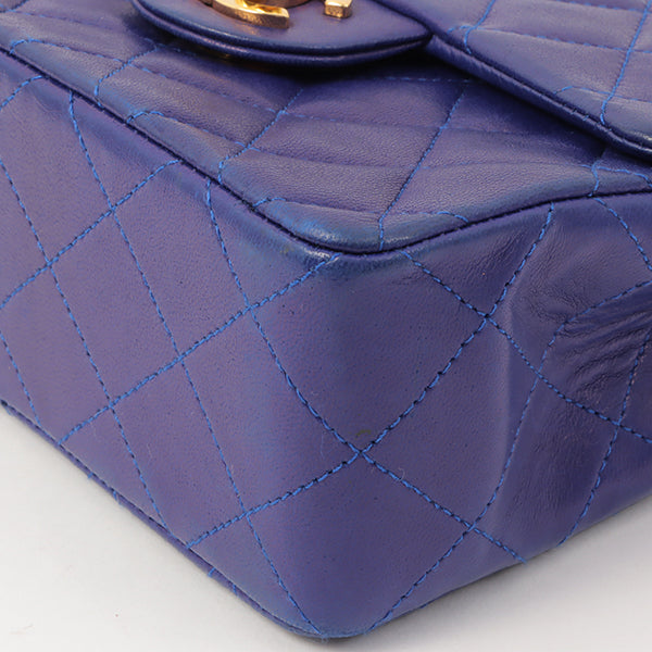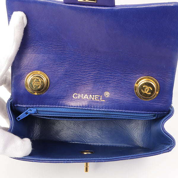 Chanel Around 1990 Made Classic Flap Chain Handbag Mini Blue