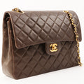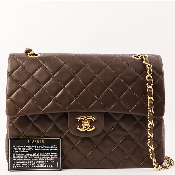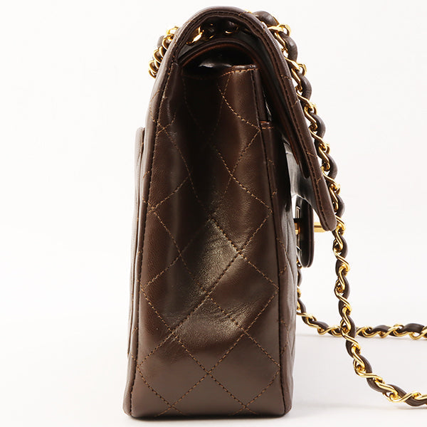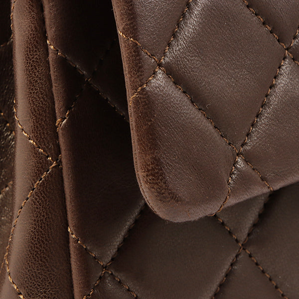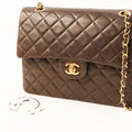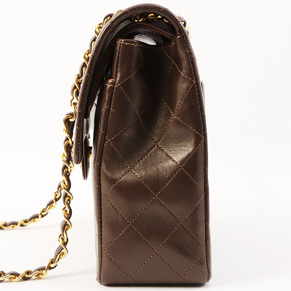 Chanel Around 1990 Made Classic Flap Turn-Lock Chain Bag Brown