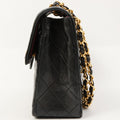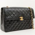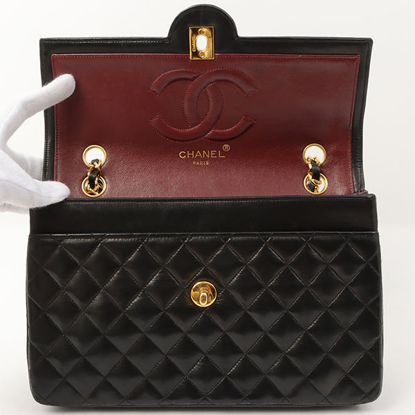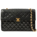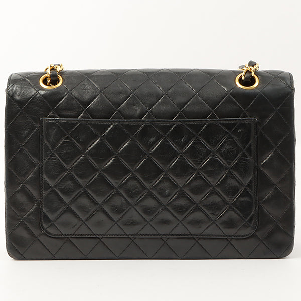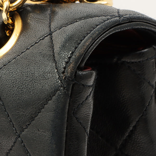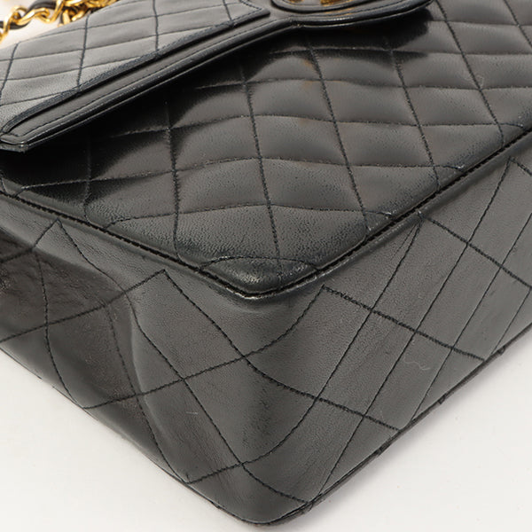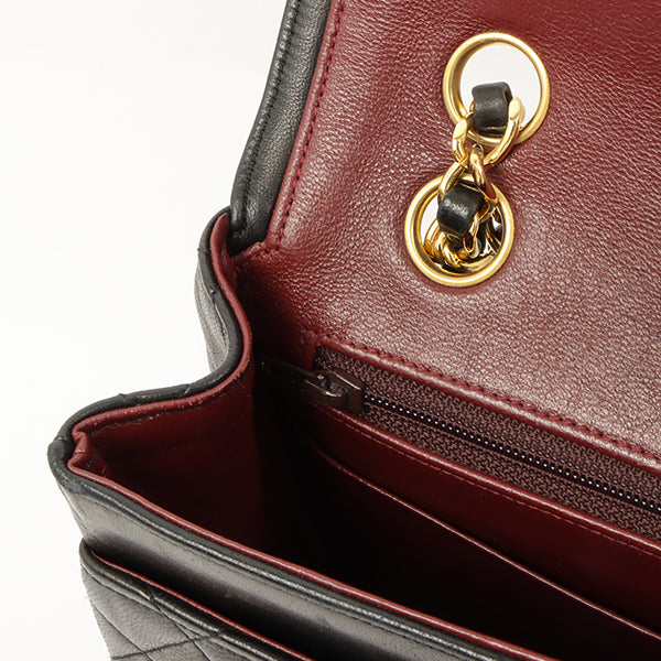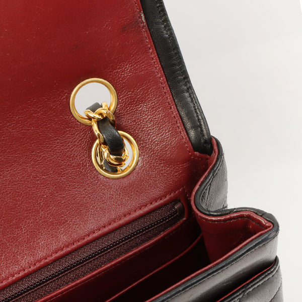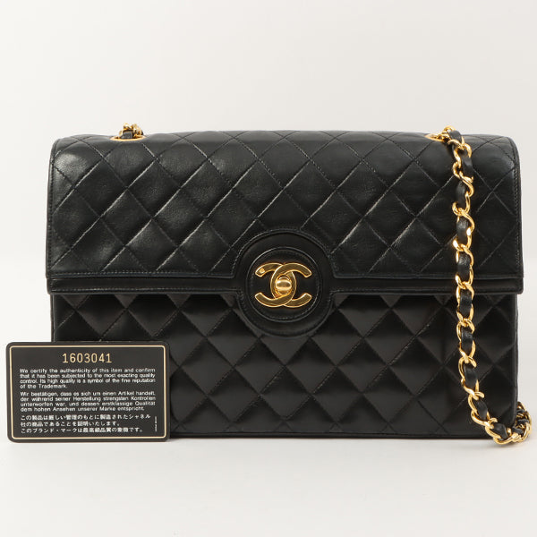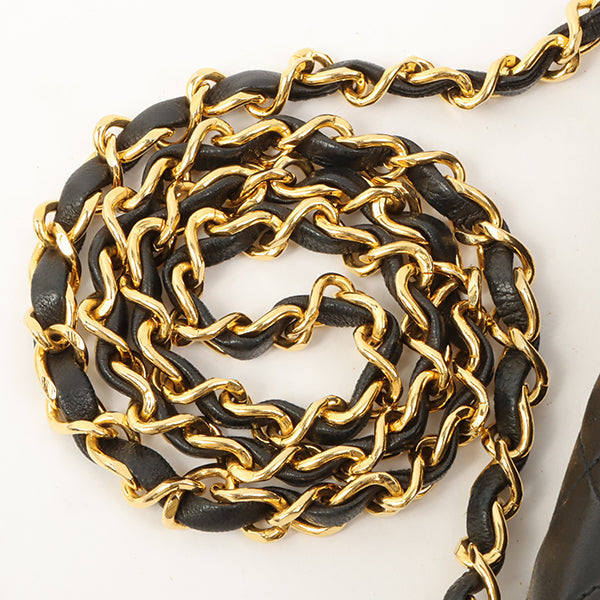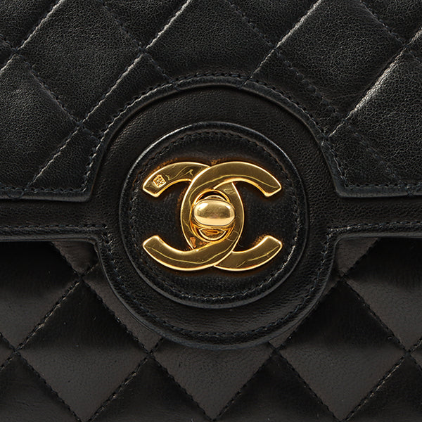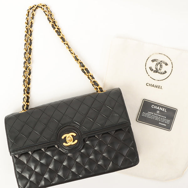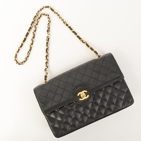 Chanel Around 1990 Made Design Flap Turn-Lock Chain Bag Black