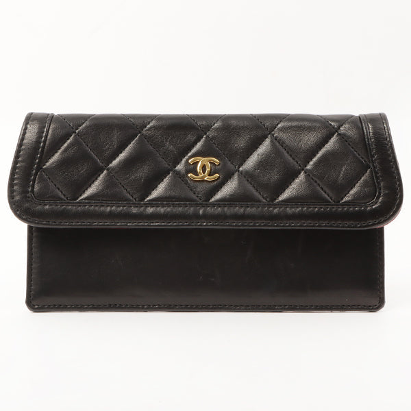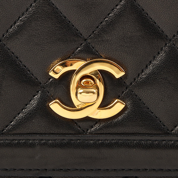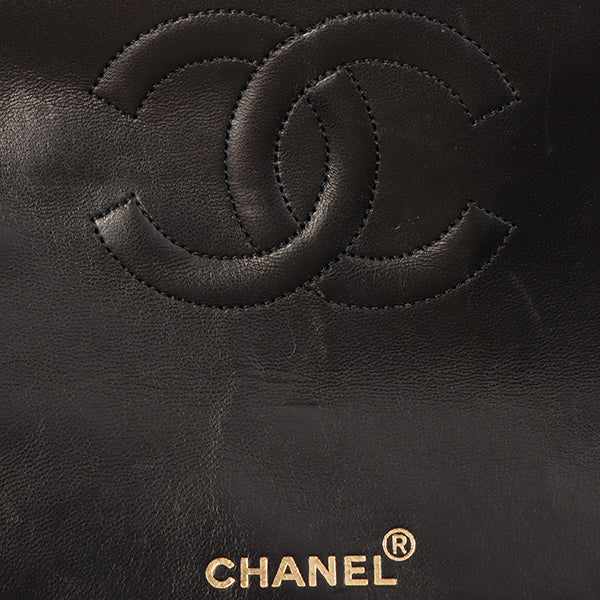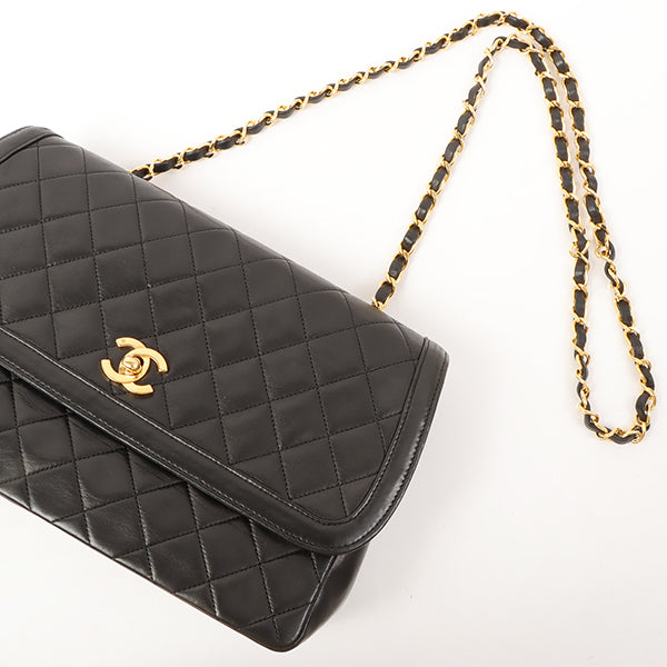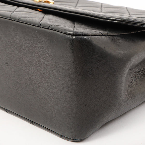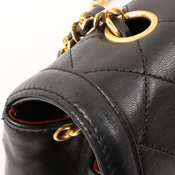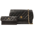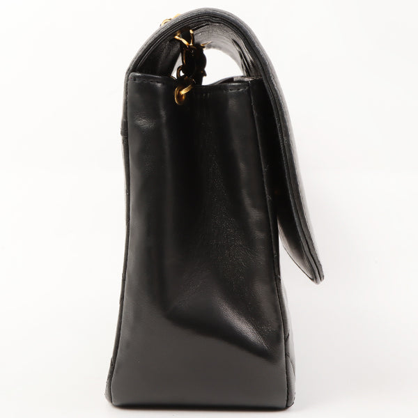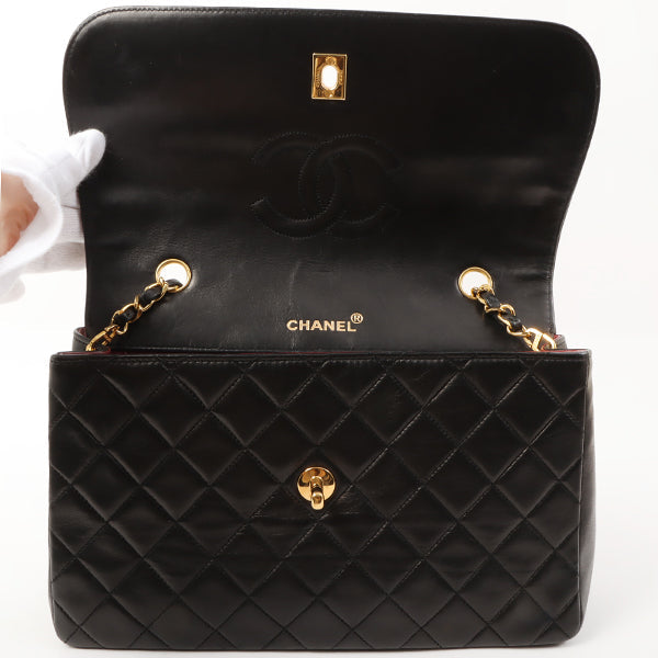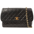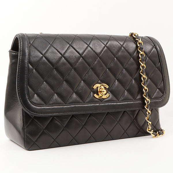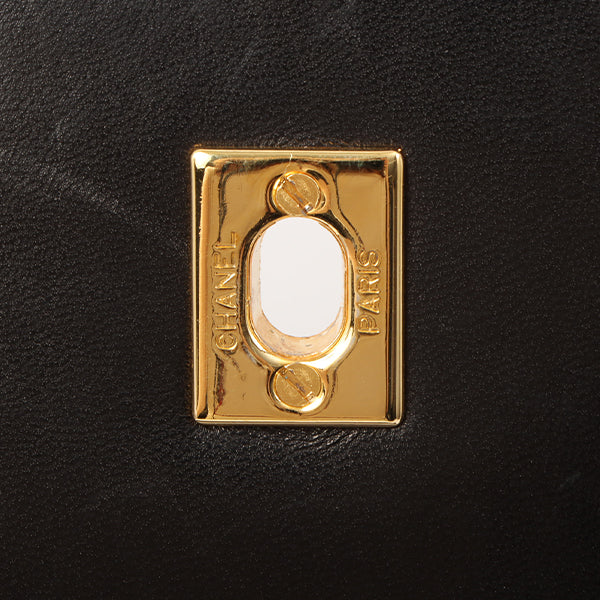 Chanel Around 1990 Made Design Flap Turn-Lock Chain Bag Black With Pouch Black