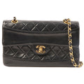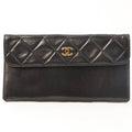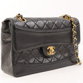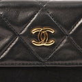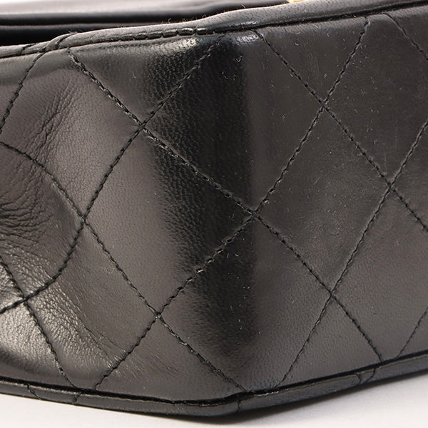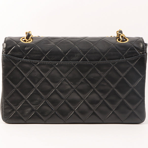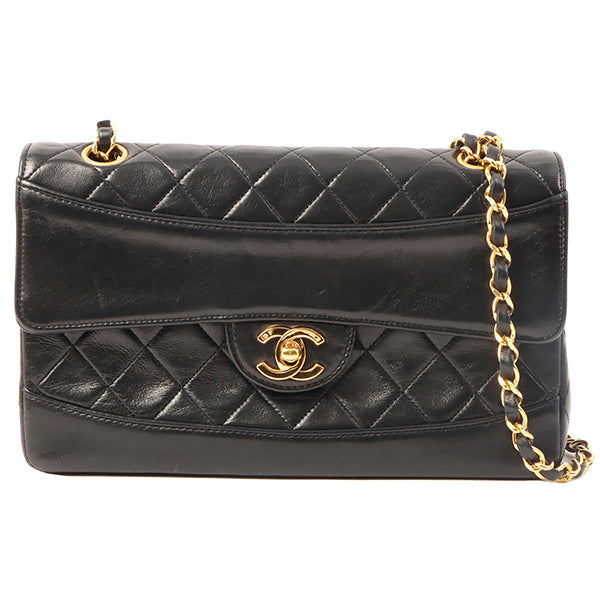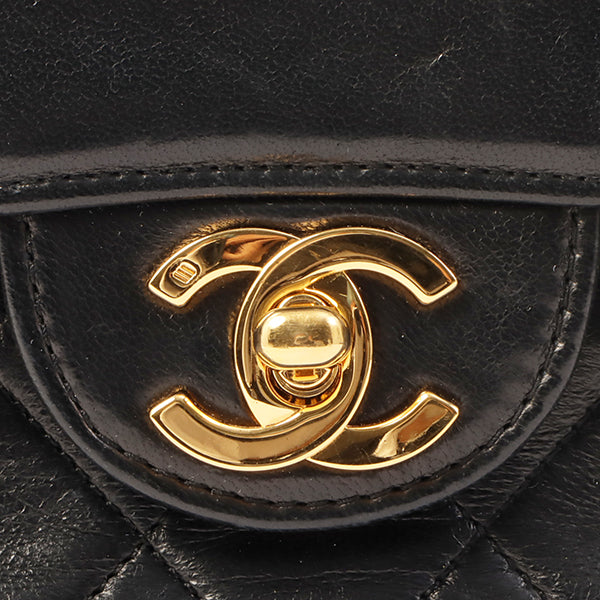 Chanel Around 1990 Made Design Flap Turn-Lock Chain Bag With Pouch Black